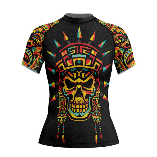 Rashninja Aztec Rainbow Skull Mask Women's Short Sleeve Rash Guard Our women's short sleeve compression...