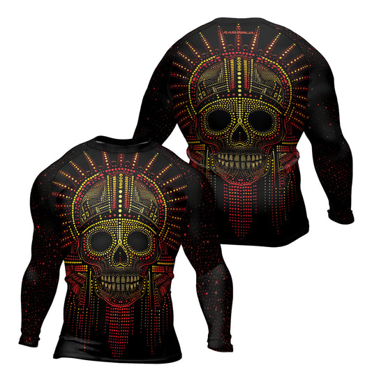 Rashninja Aztec Tribe Headman Skull Men's Long Sleeve Rash Guard Our men's compression shirt is...