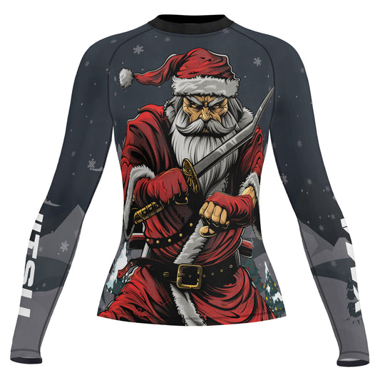Rashninja Christmas Katana Santa Women's Long Sleeve Rash Guard Our women's compression top is crafted...