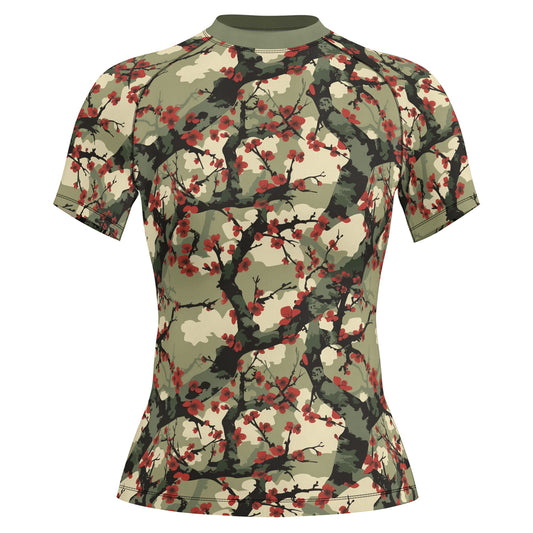 Rashninja Camouflage Cherry Blossom Drift Women's Short Sleeve Rash Guard Our women's short sleeve compression...