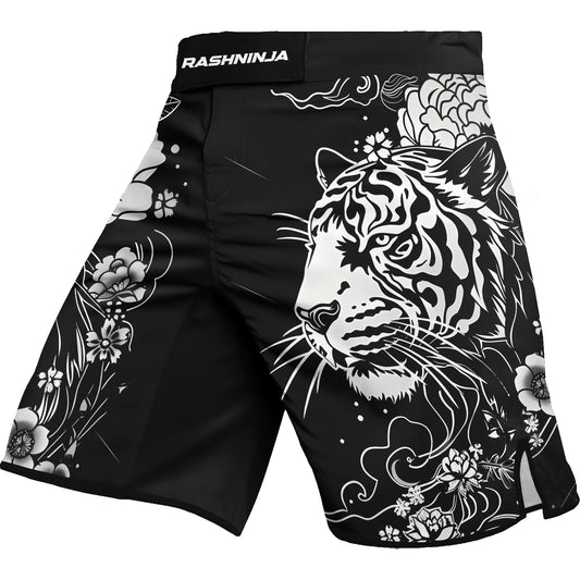 Rashninja Tiger Black White Men's Fight Shorts Engineered Versatility: Designed to excel in BJJ, MMA,...