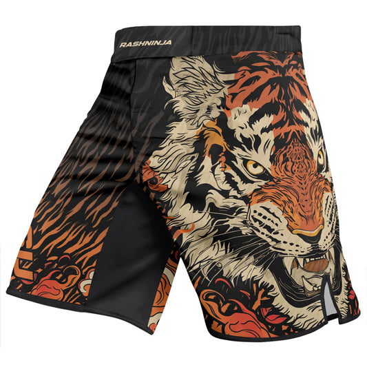 Rashninja Tiger Stripes Black Orange Men's Fight Shorts Engineered Versatility: Designed to excel in BJJ,...