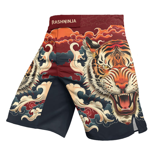 Rashninja Tiger Cloud Black Red Men's Fight Shorts Engineered Versatility: Designed to excel in BJJ,...