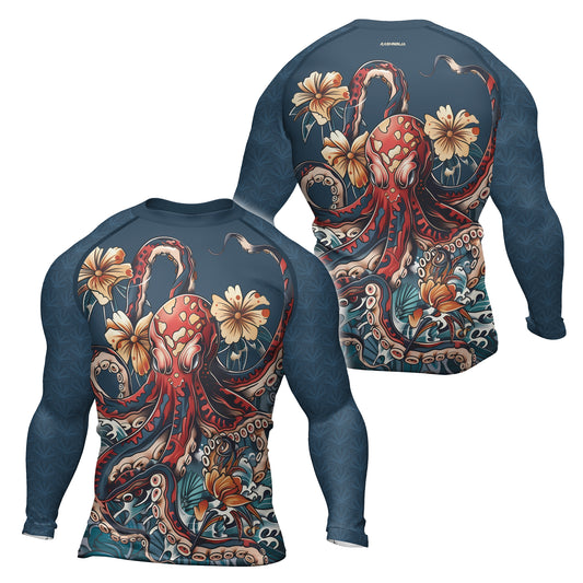 Rashninja Octopus Floral Blue Men's Long Sleeve Rash Guard Our men's compression shirt is made...