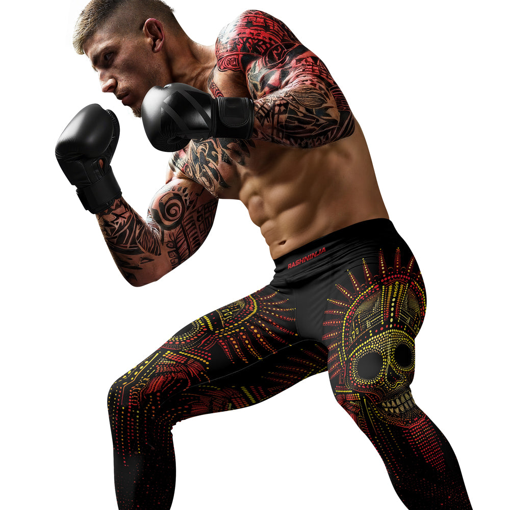 Rashninja Green And Red Aztec Calendar Men's Fight Shorts