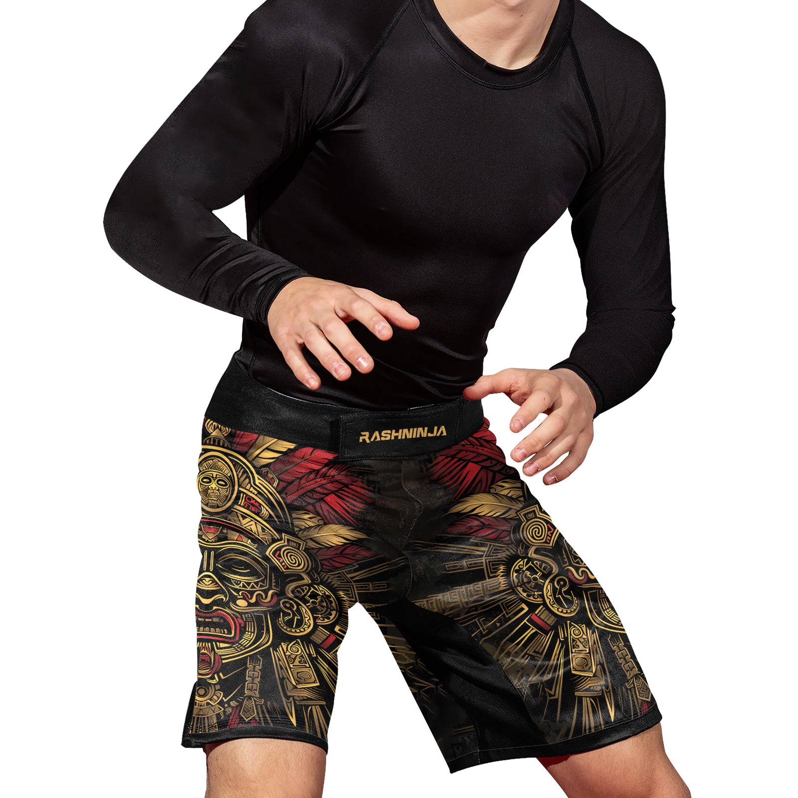Rashninja Aztec Pyramid Ritual Men's Fight Shorts
