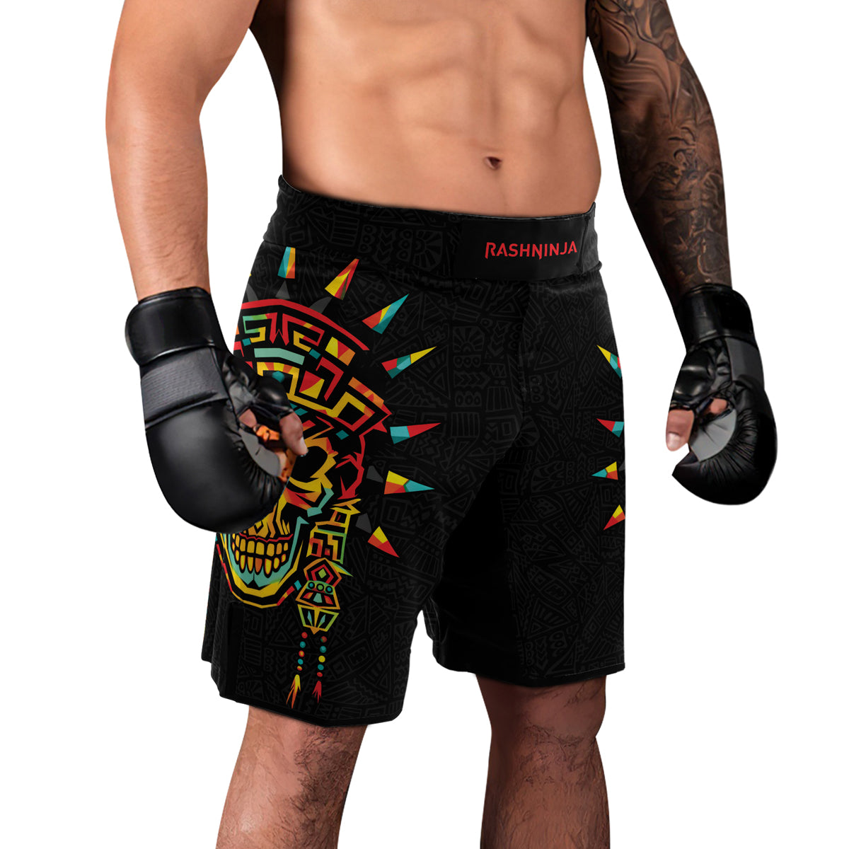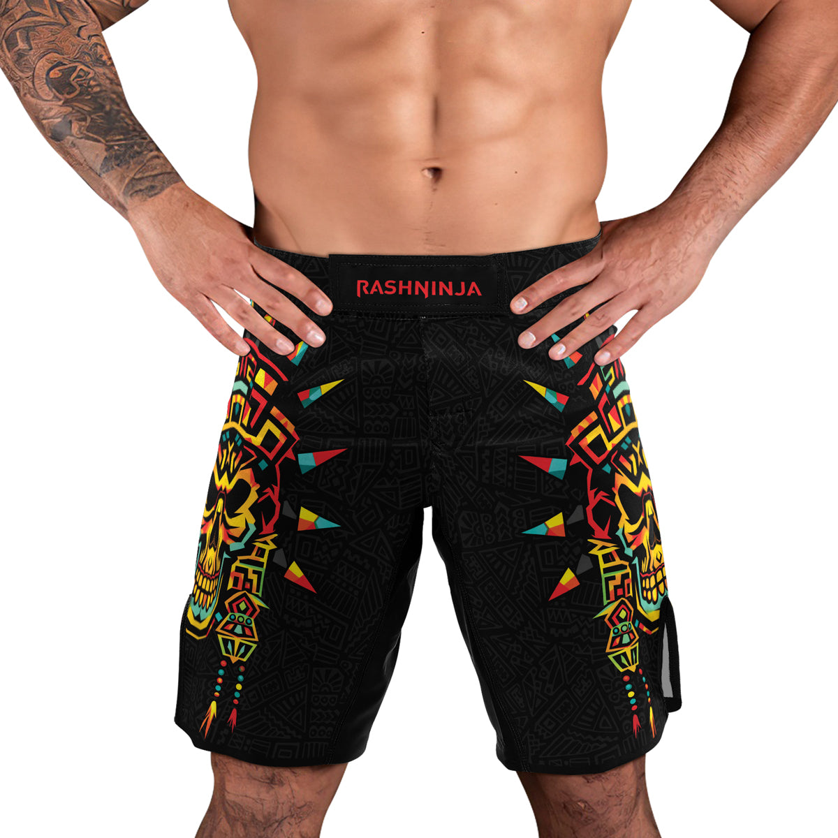 Rashninja Aztec Rainbow Skull Mask Men's Fight Shorts