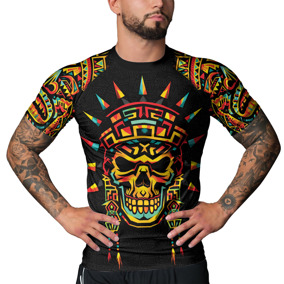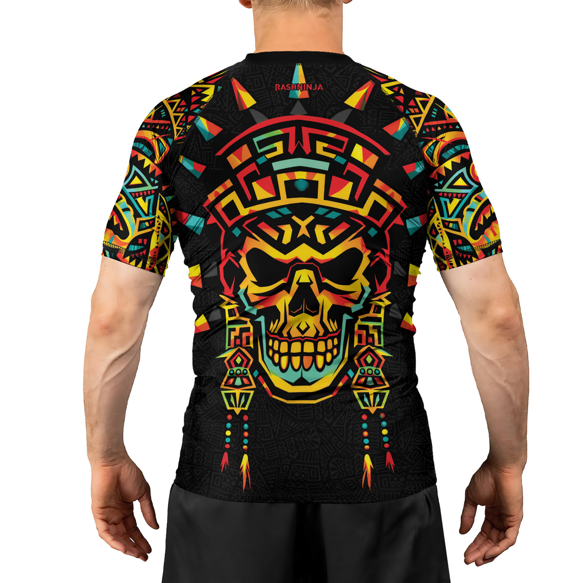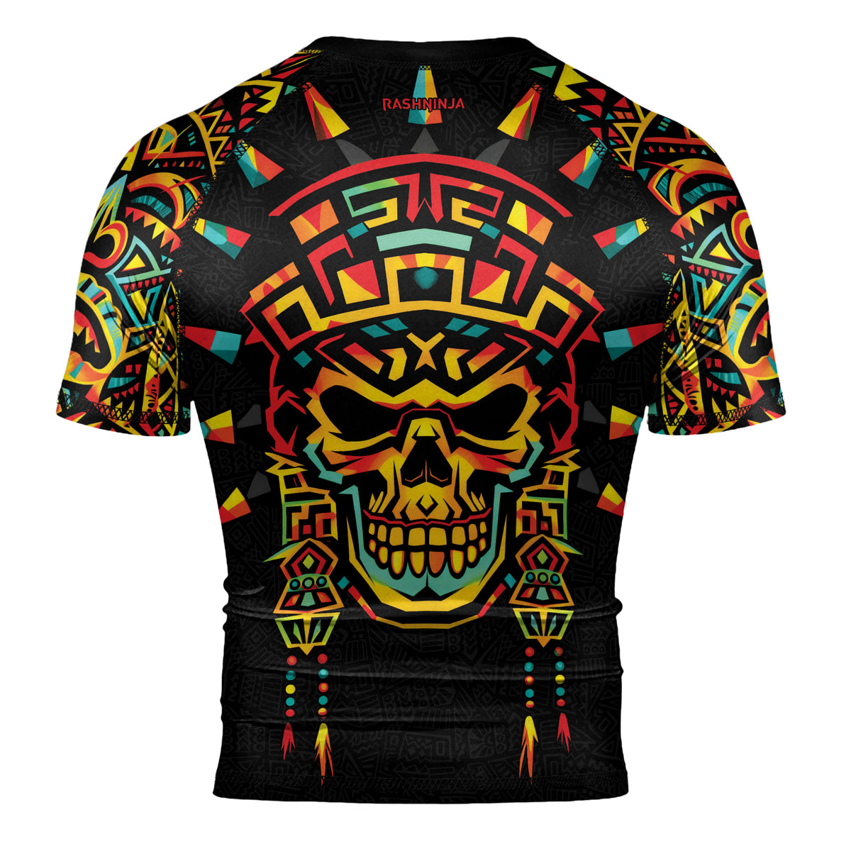 Rashninja Aztec Rainbow Skull Mask Men's Short Sleeve Rash Guard