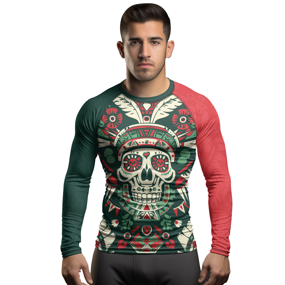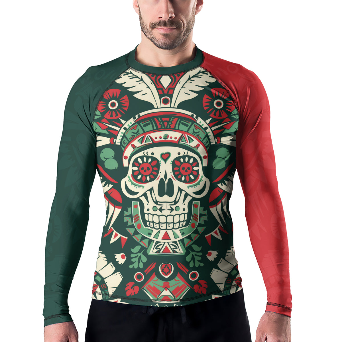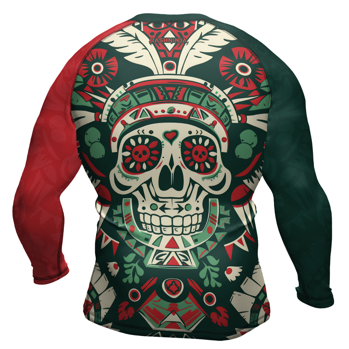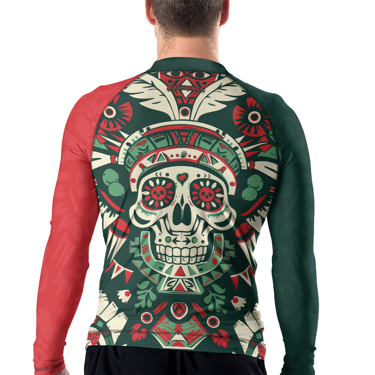 Rashninja Aztec Skull Feather Mandala Men's Long Sleeve Rash Guard