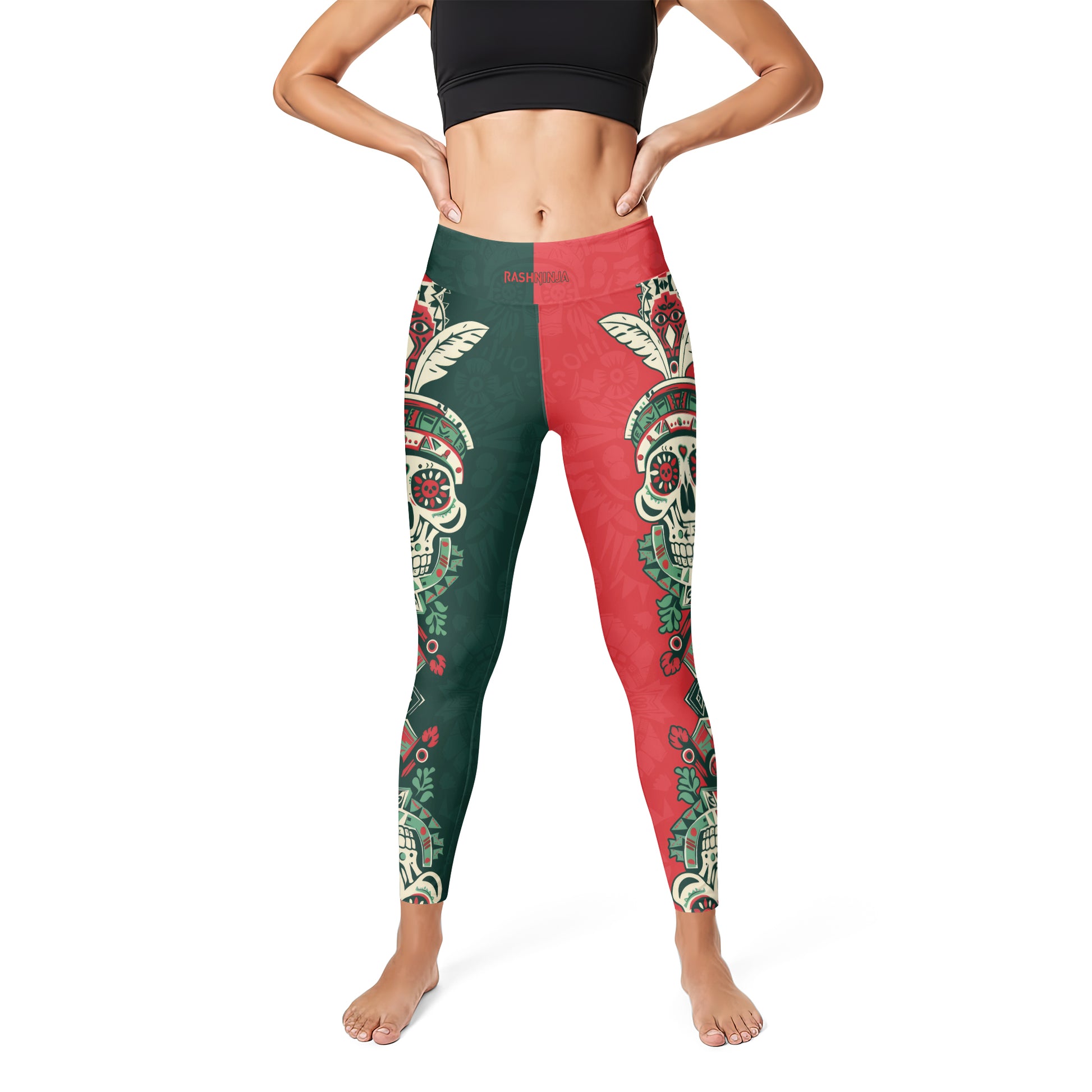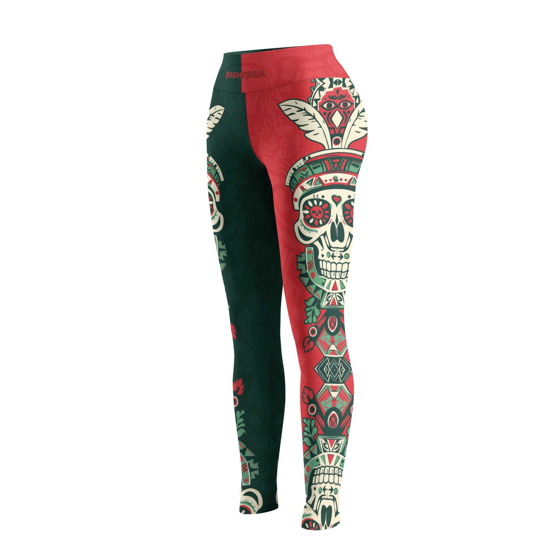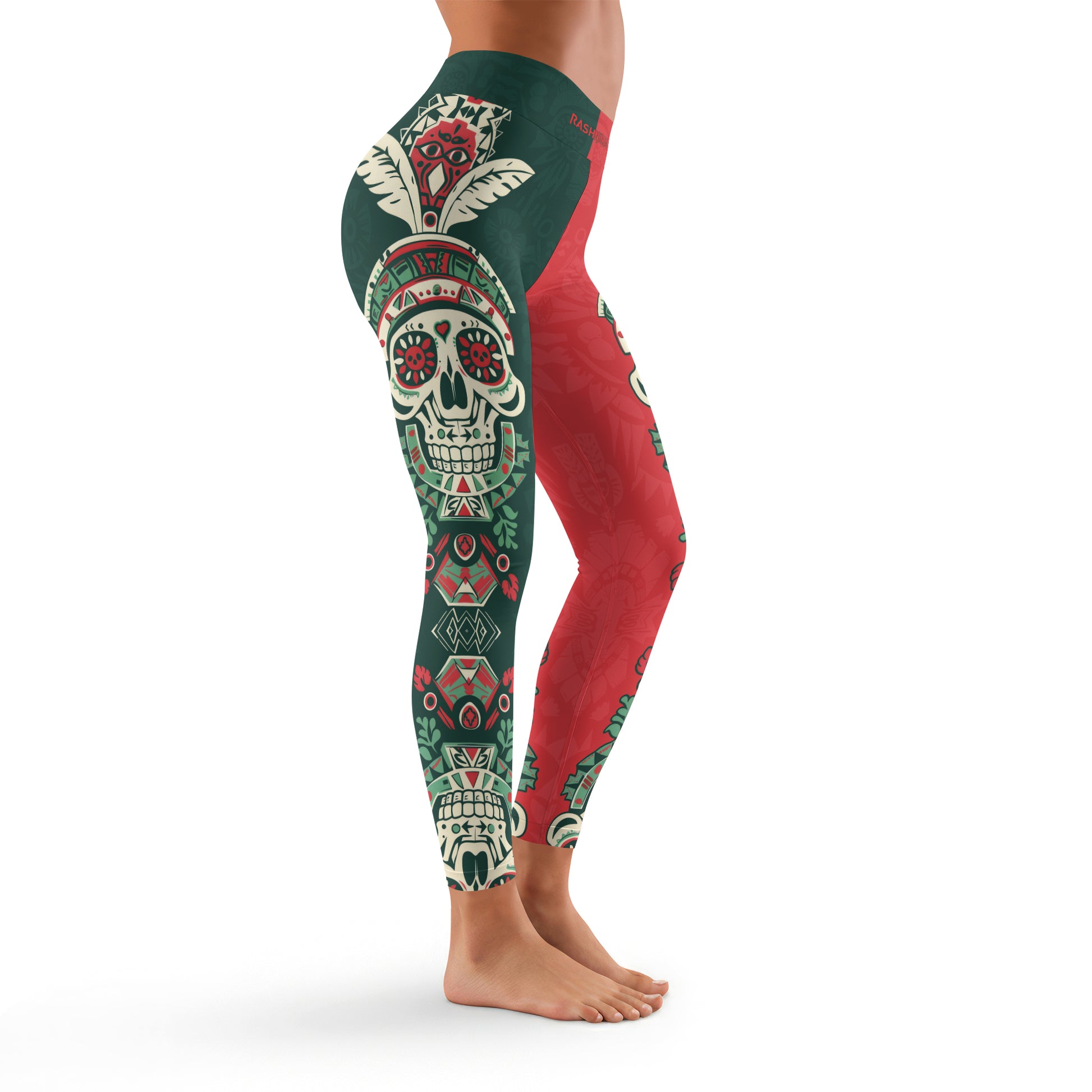 Rashninja Aztec Skull Feather Mandala Women's Leggings