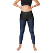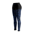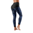 Featuring a stunning abstract marble pattern in deep navy, icy blue, and molten gold accents, these leggings combine eye-catching style with serious functionality.
