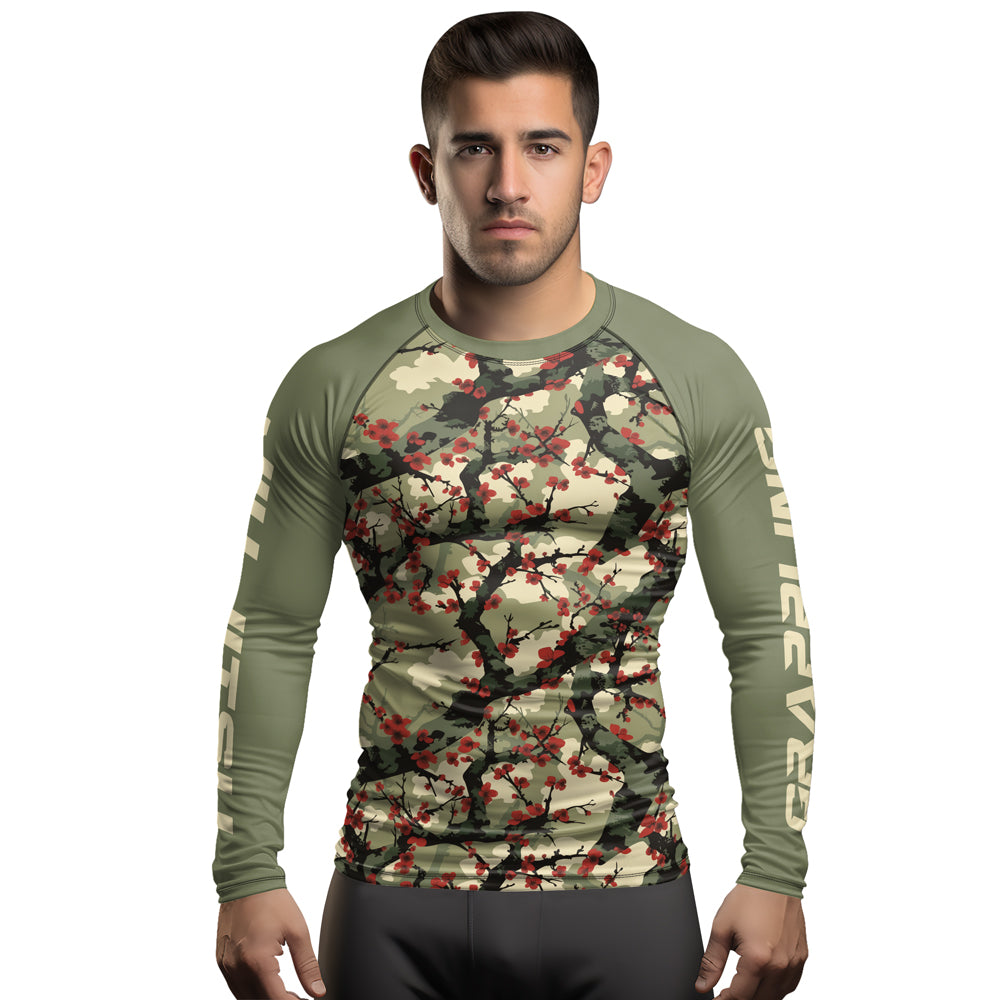 Rashninja Camouflage Cherry Blossom Drift Men's Long Sleeve Rash Guard