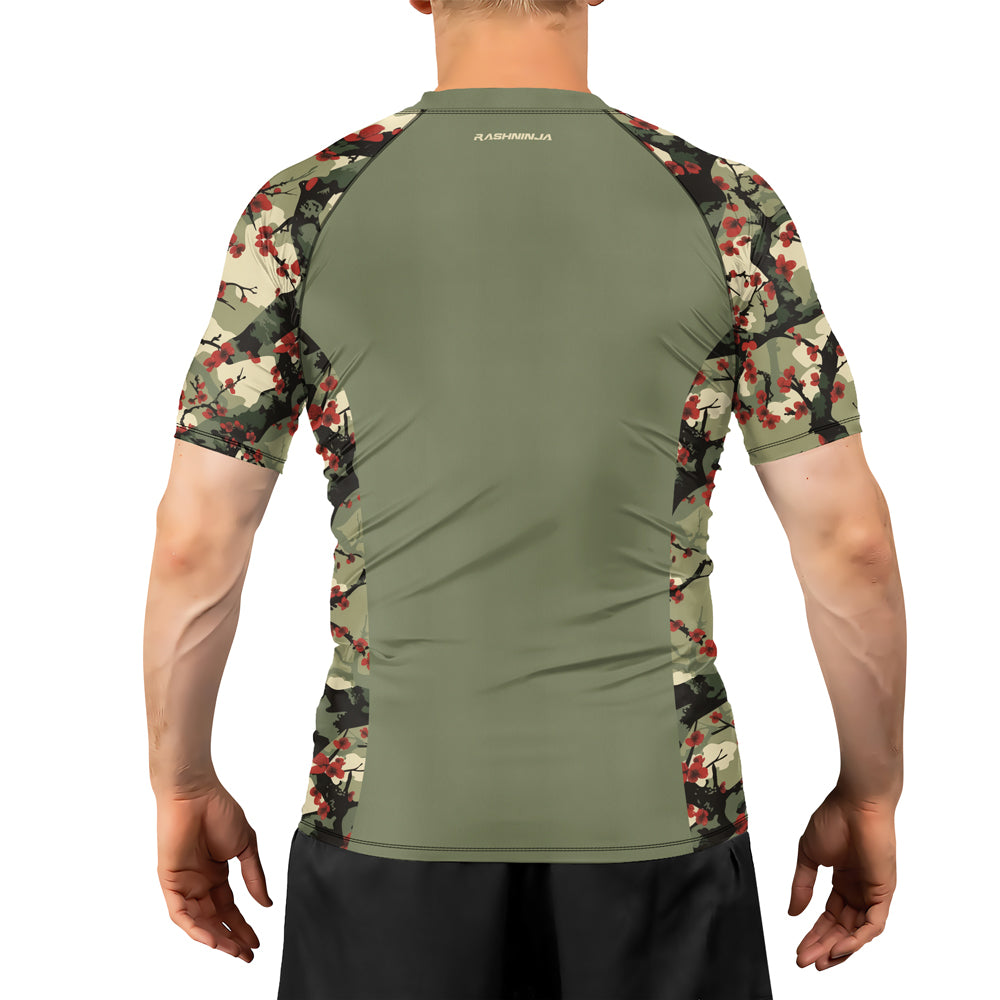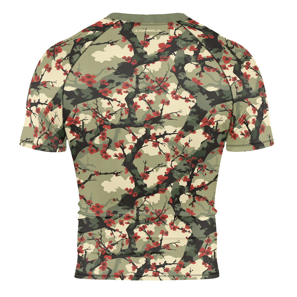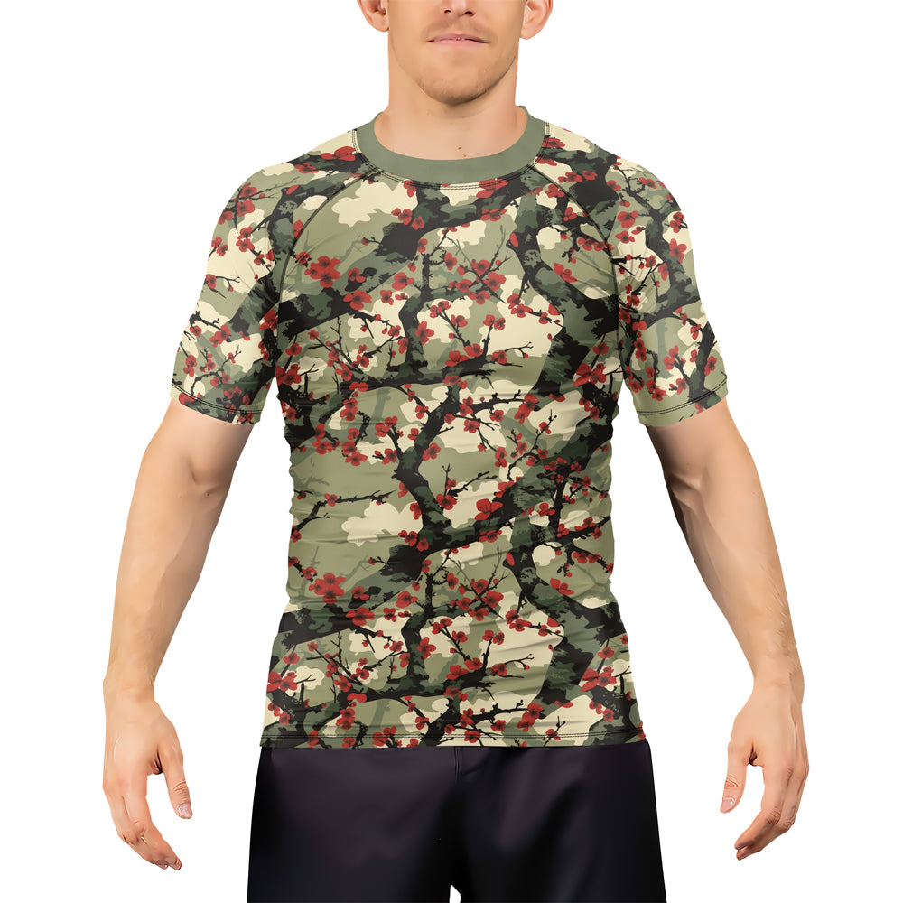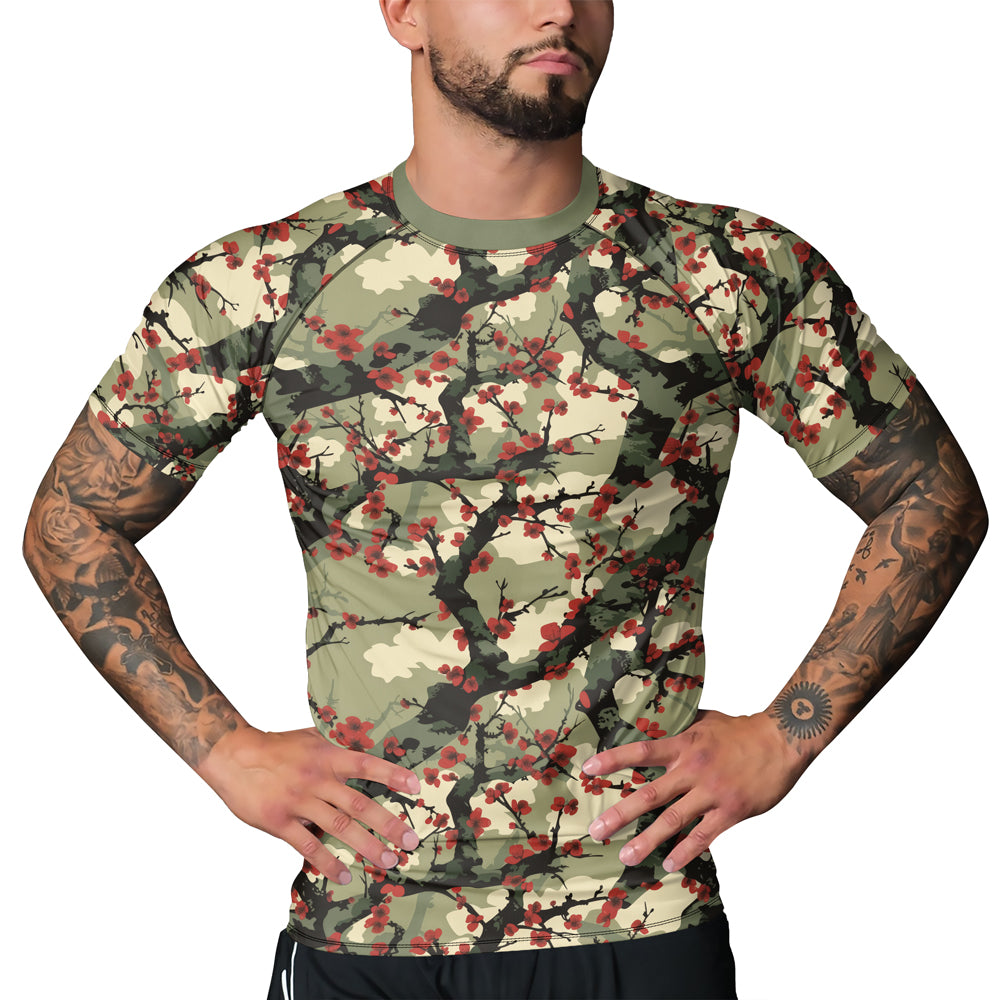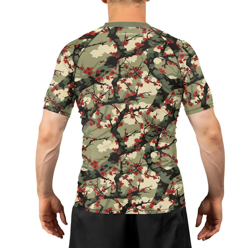 Rashninja Camouflage Cherry Blossom Drift Men's Short Sleeve Rash Guard