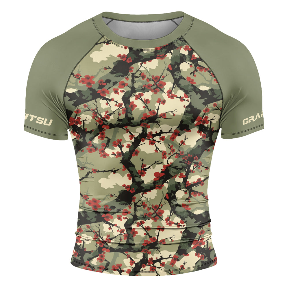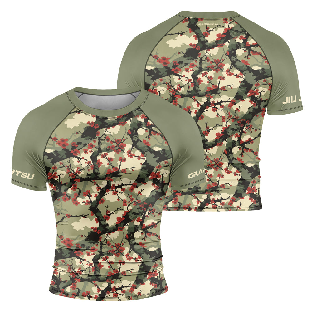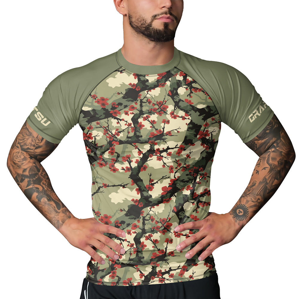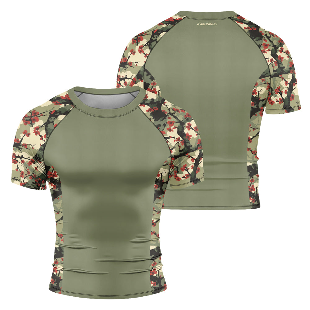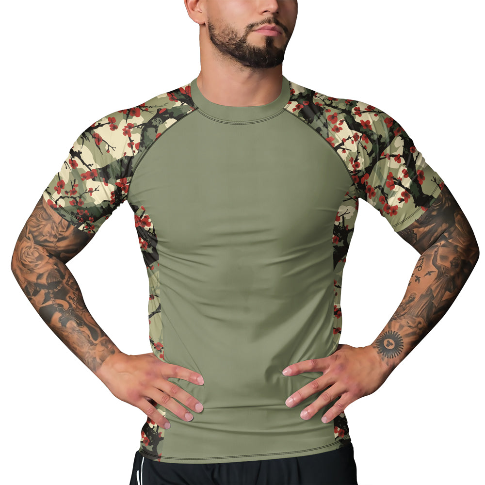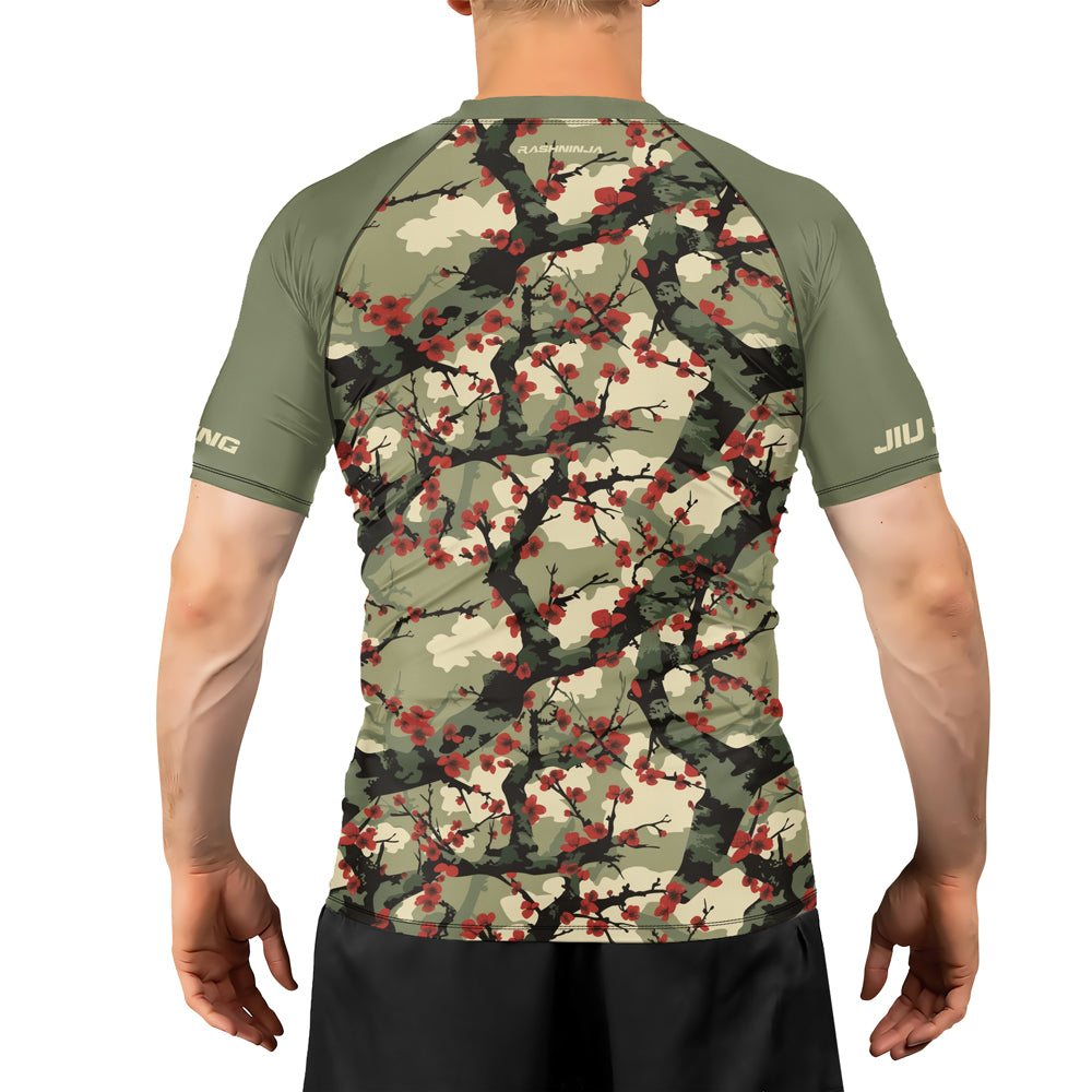 Rashninja Camouflage Cherry Blossom Drift Men's Short Sleeve Rash Guard