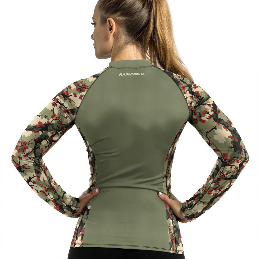 Rashninja Camouflage Cherry Blossom Drift Women's Long Sleeve Rash Guard