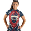 Our women's short sleeve compression shirt is made with a high-performance blend of 85% Polyester and 15% Spandex, providing a sleek and flexible fit that enables unrestricted motion during any workout or martial arts training.