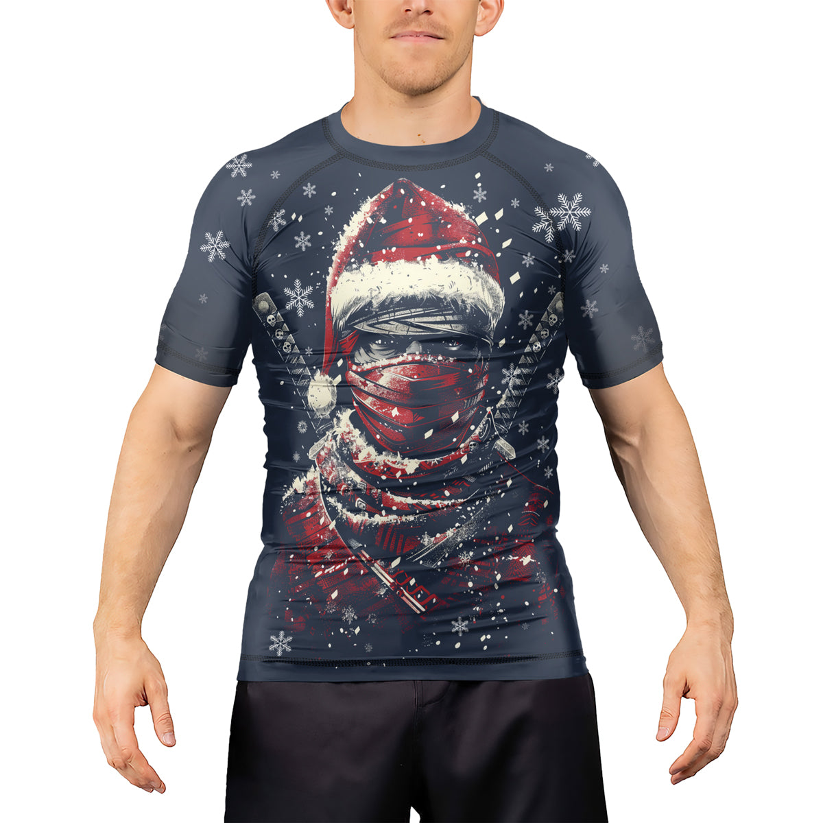 Rashninja Christmas Shadow Santa Men's Short Sleeve Rash Guard