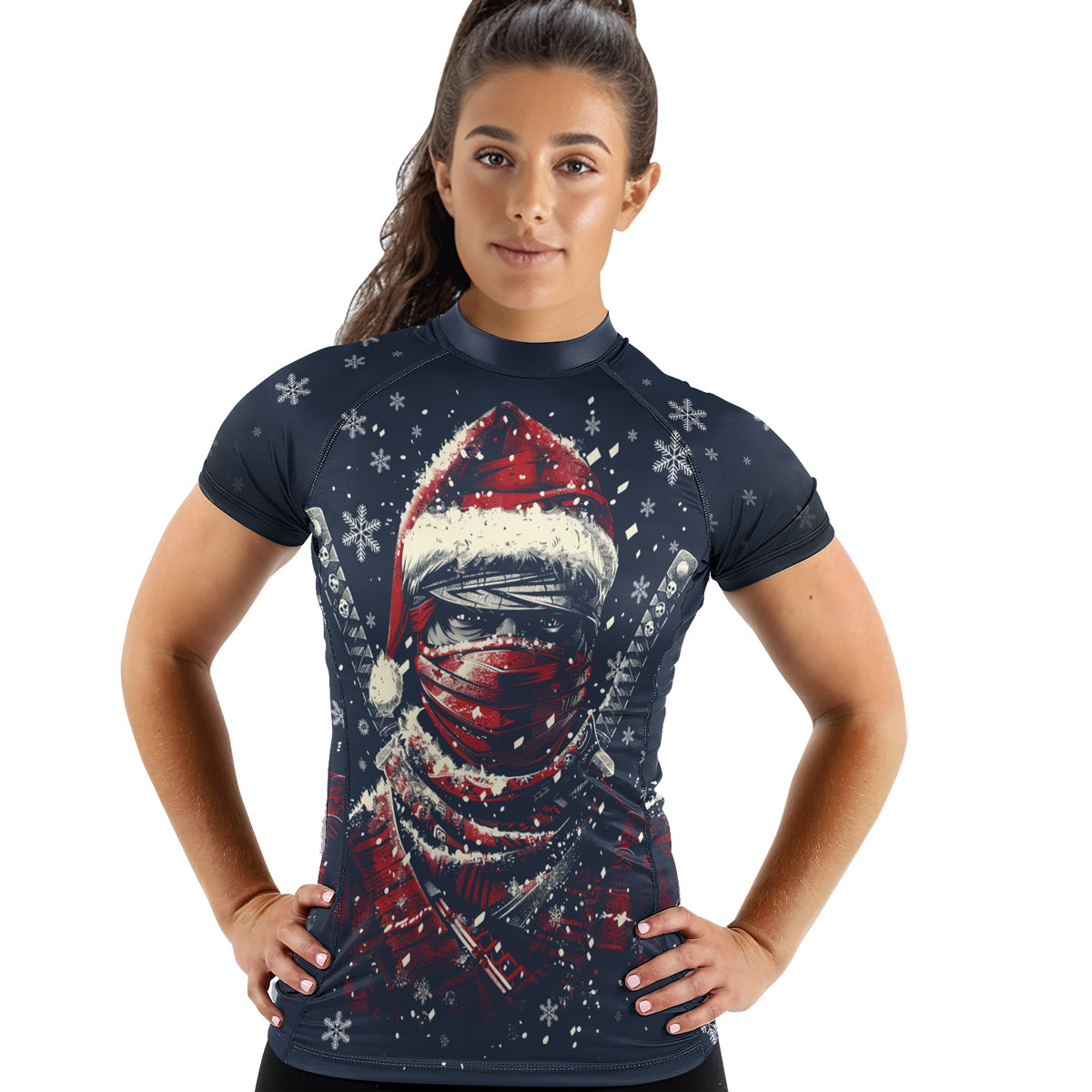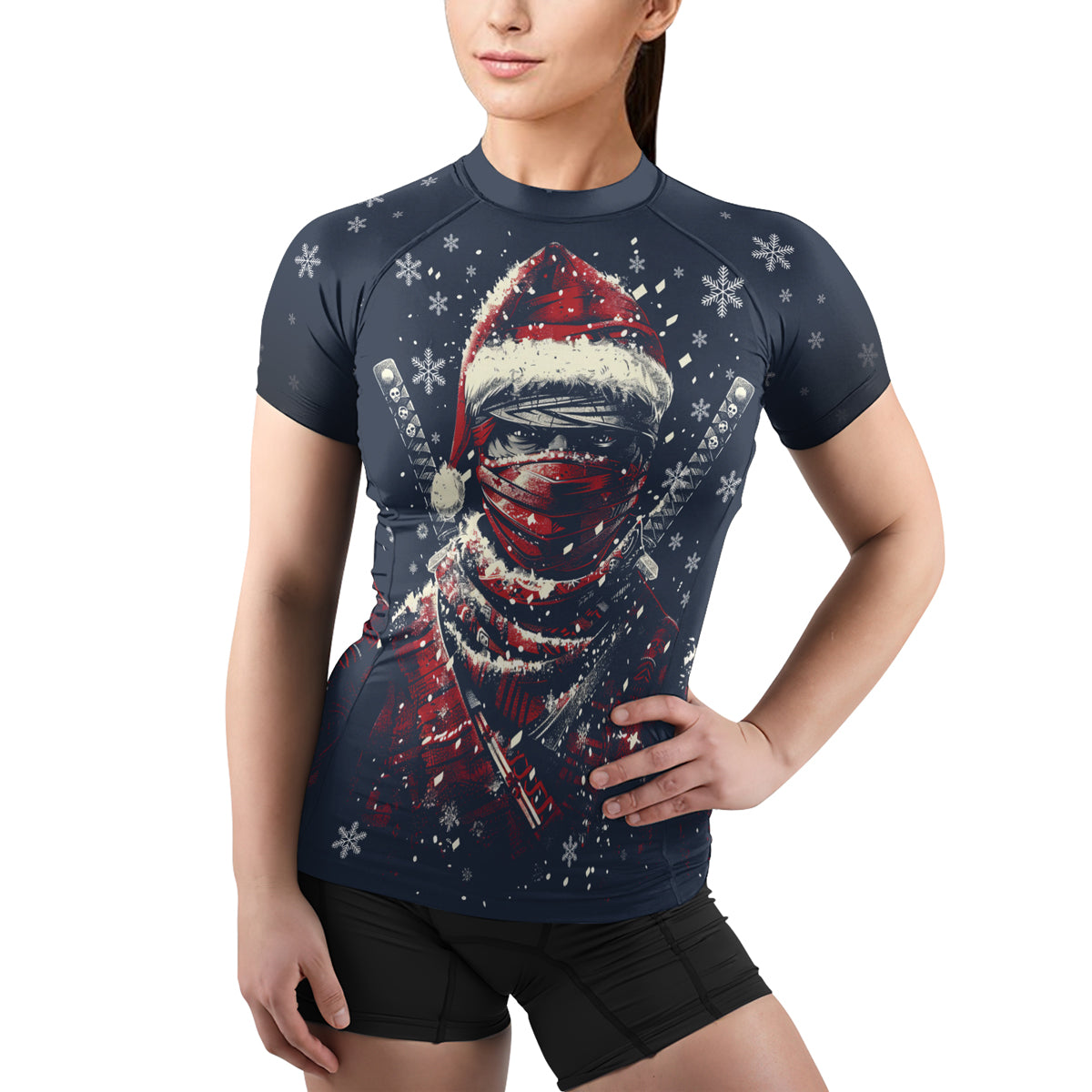 Rashninja Christmas Shadow Santa Women's Short Sleeve Rash Guard