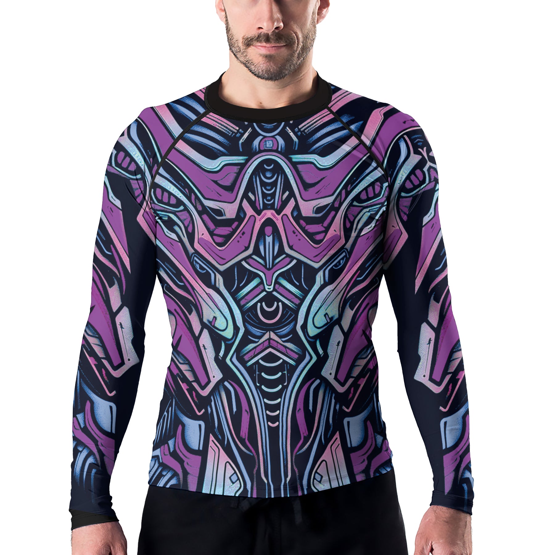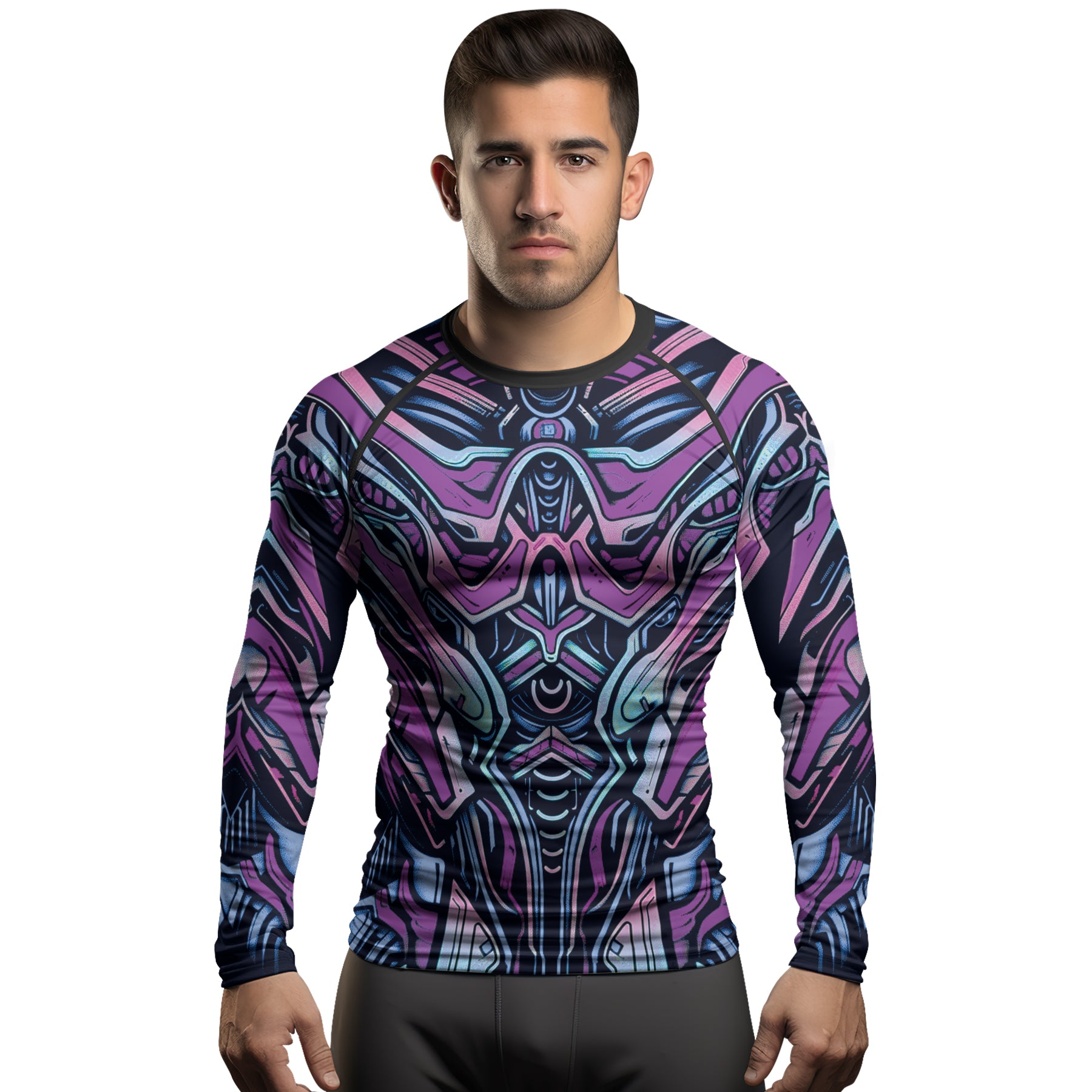 Rashninja Cyber Biomechanic Purple Blue Men's Long Sleeve Rash Guard