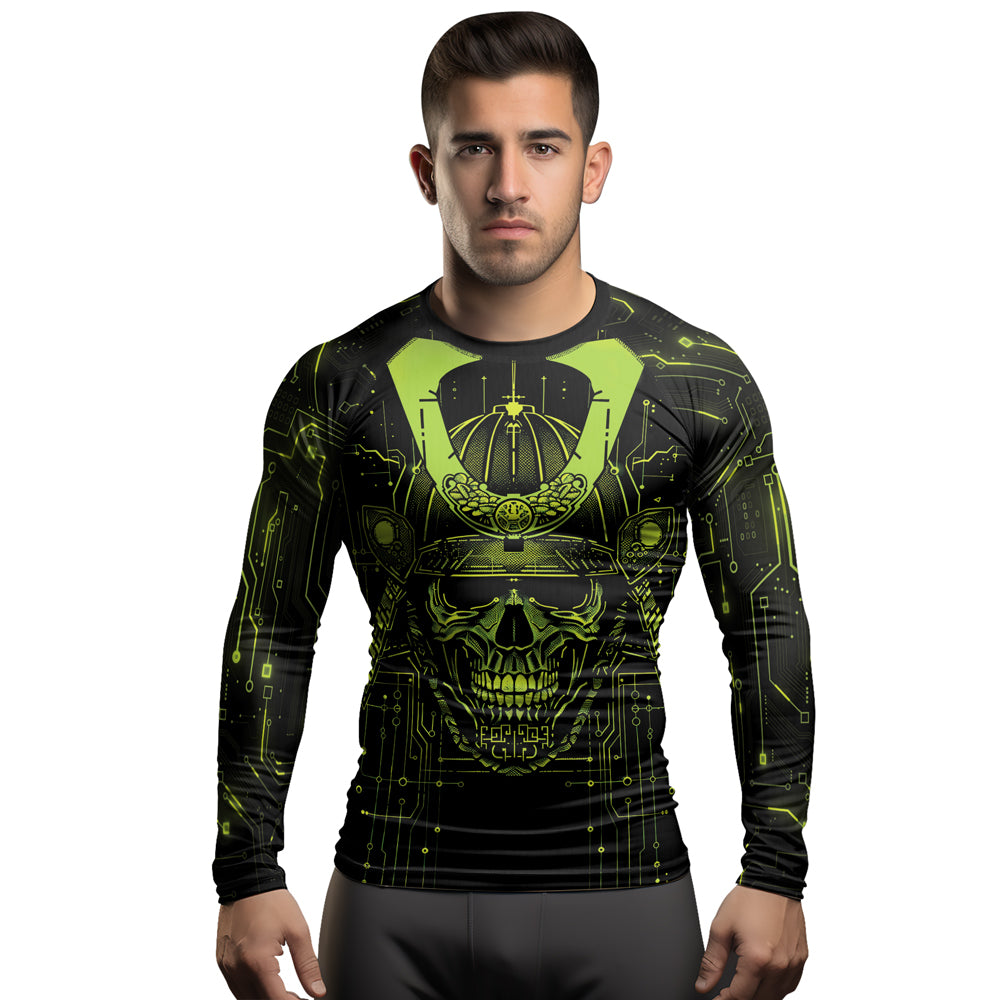 Rashninja Cyber Samurai Circuit Green Men's Long Sleeve Rash Guard