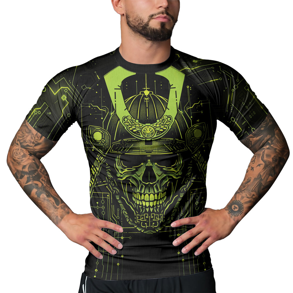 Rashninja Cyber Samurai Circuit Green Men's Short Sleeve Rash Guard