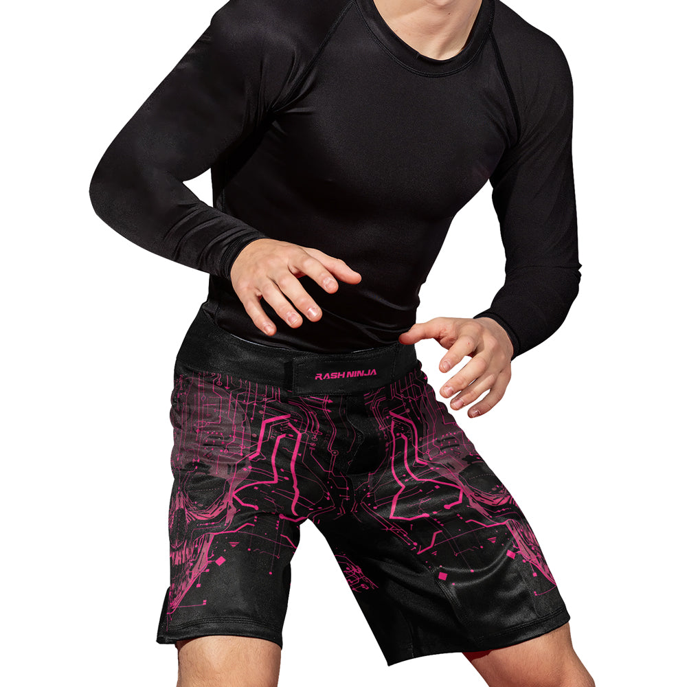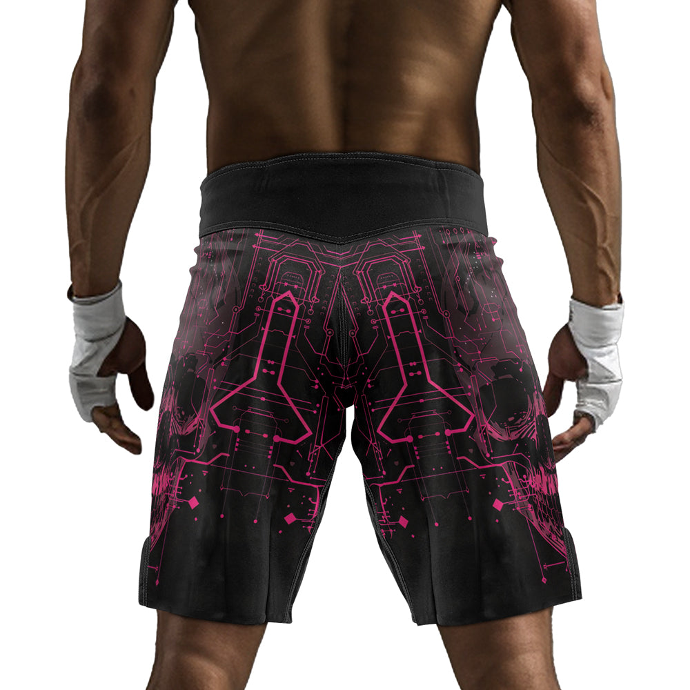 Rashninja Cyber Skull Circuit Red Men's Fight Shorts