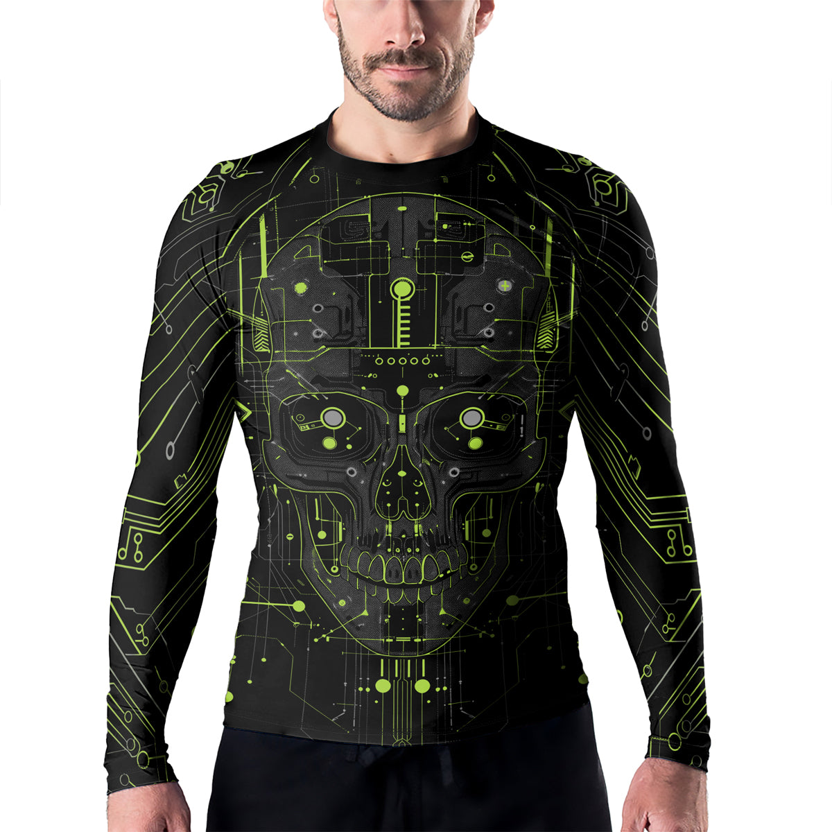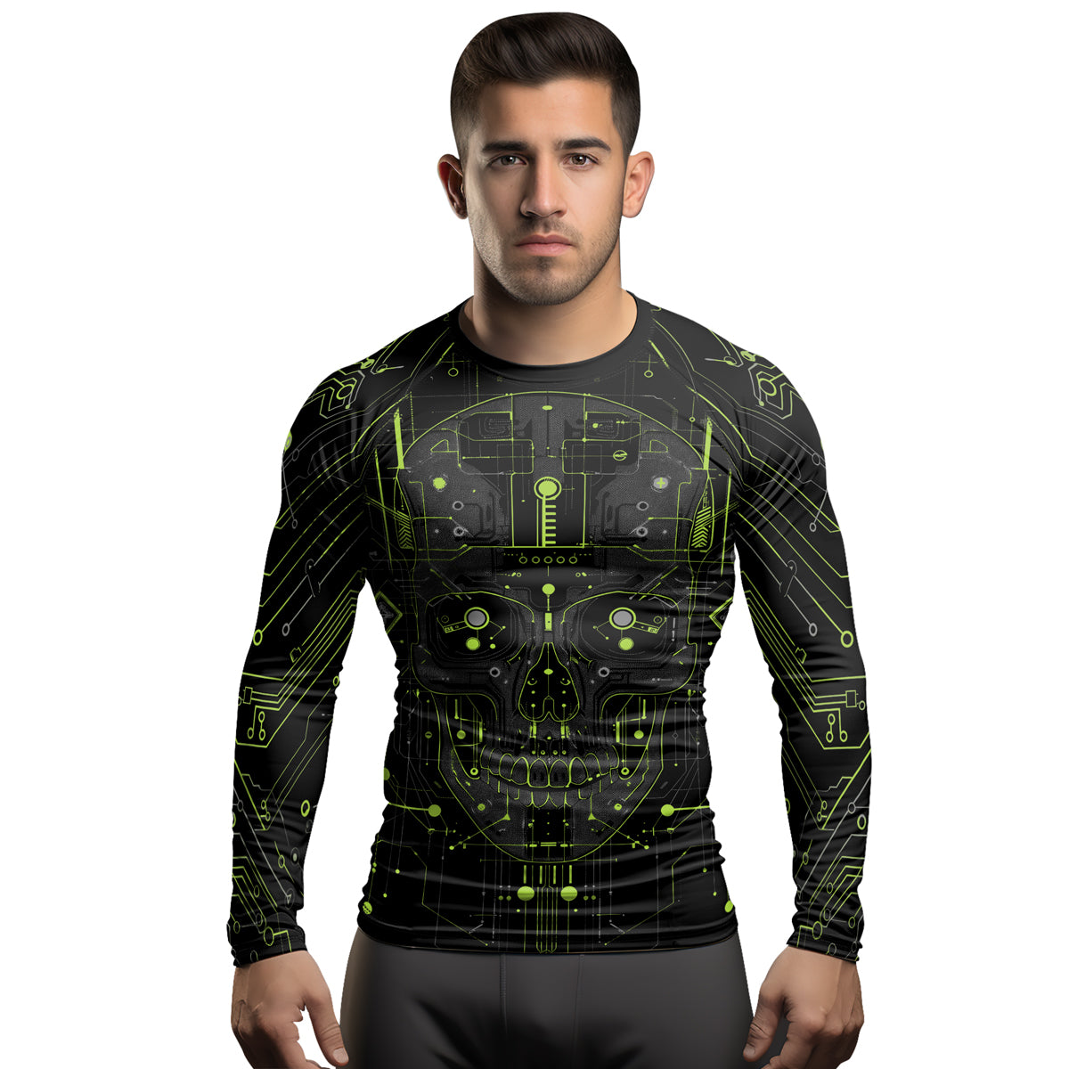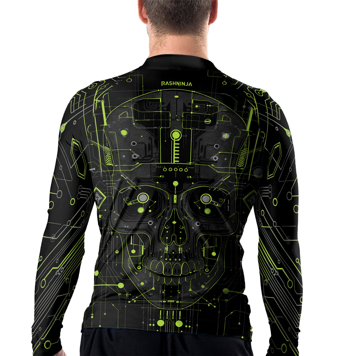 Rashninja Cyber Skull Green Men's Long Sleeve Rash Guard