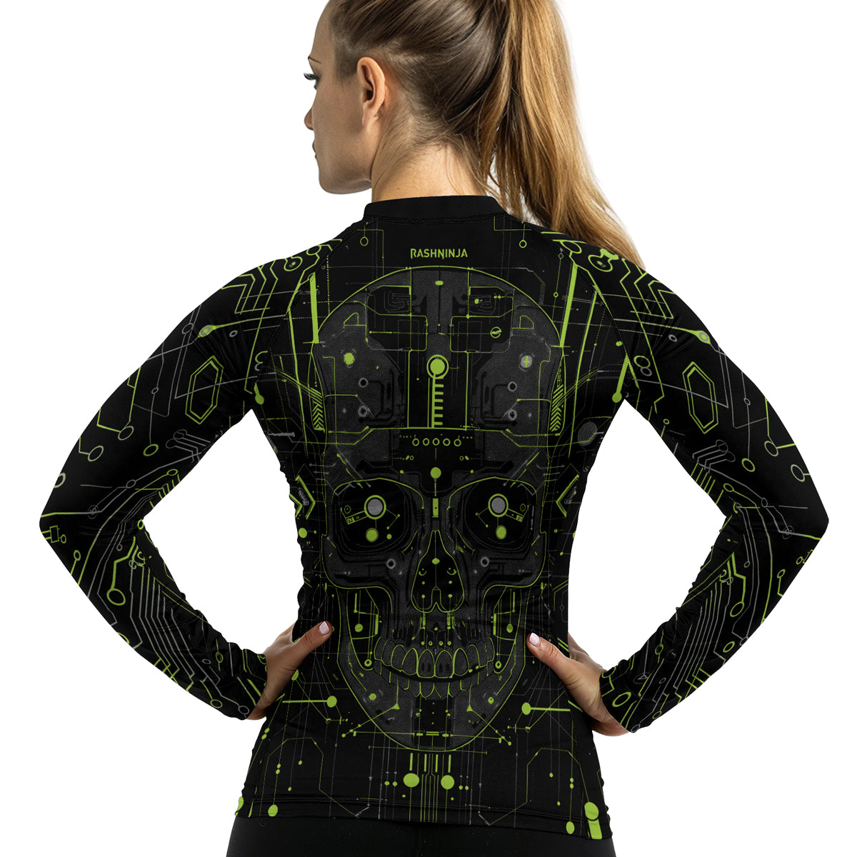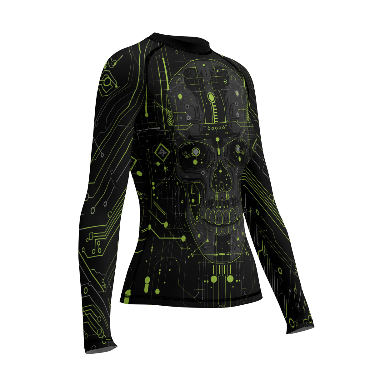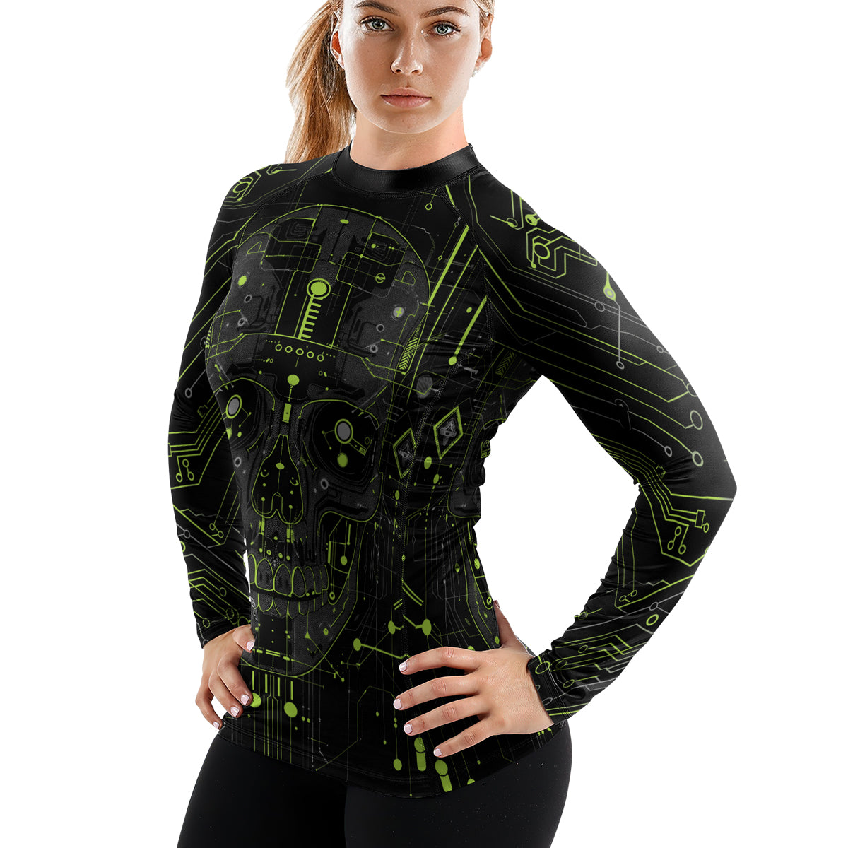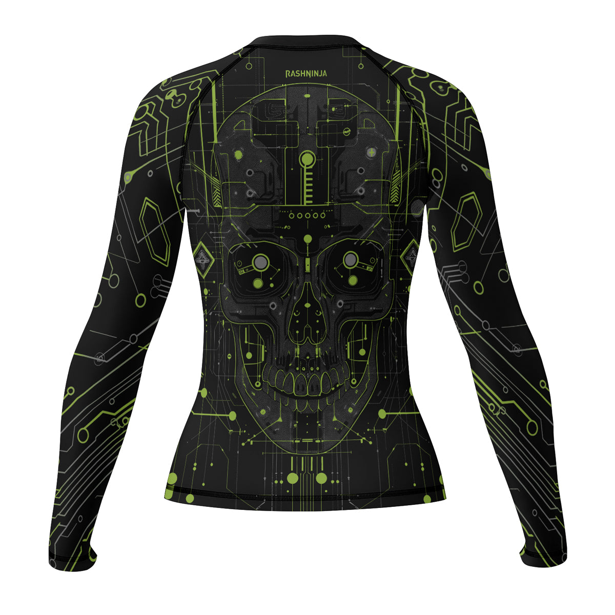 Rashninja Cyber Skull Green Women's Long Sleeve Rash Guard