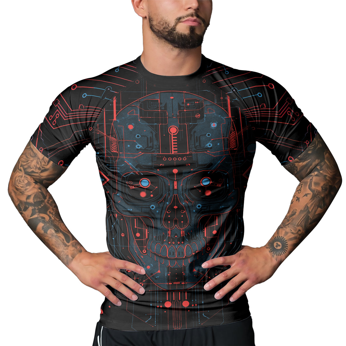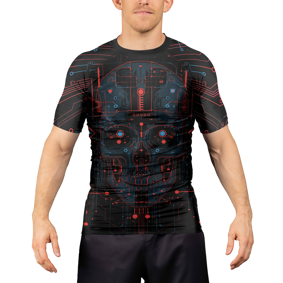 Rashninja Cyber Skull Red Men's Short Sleeve Rash Guard