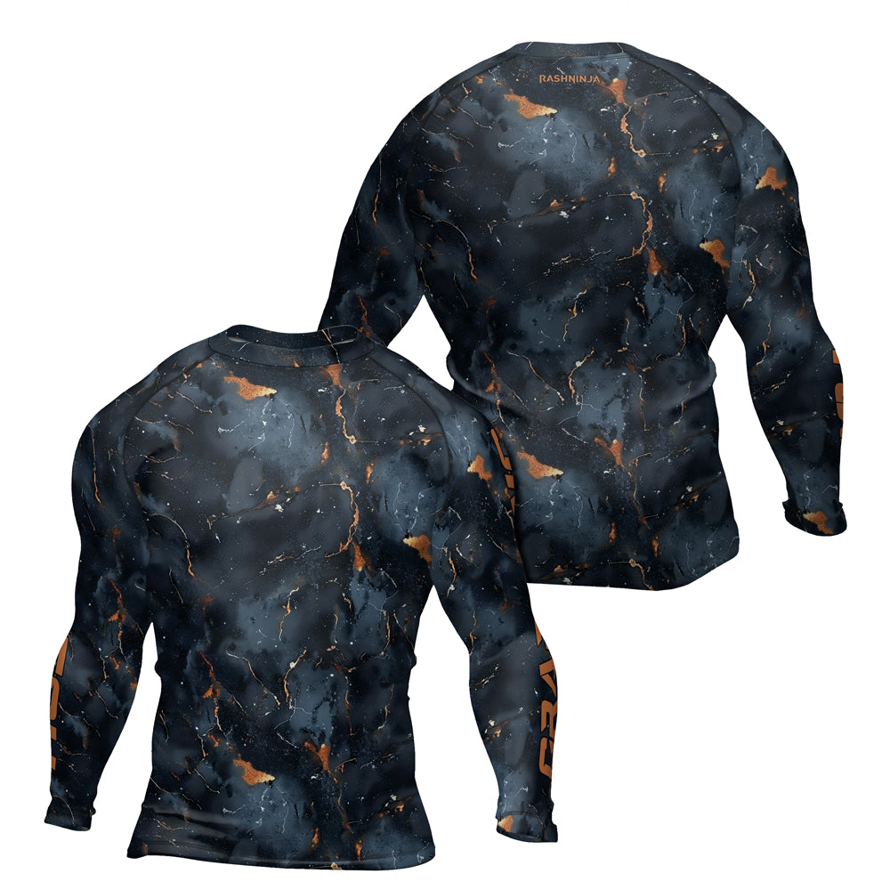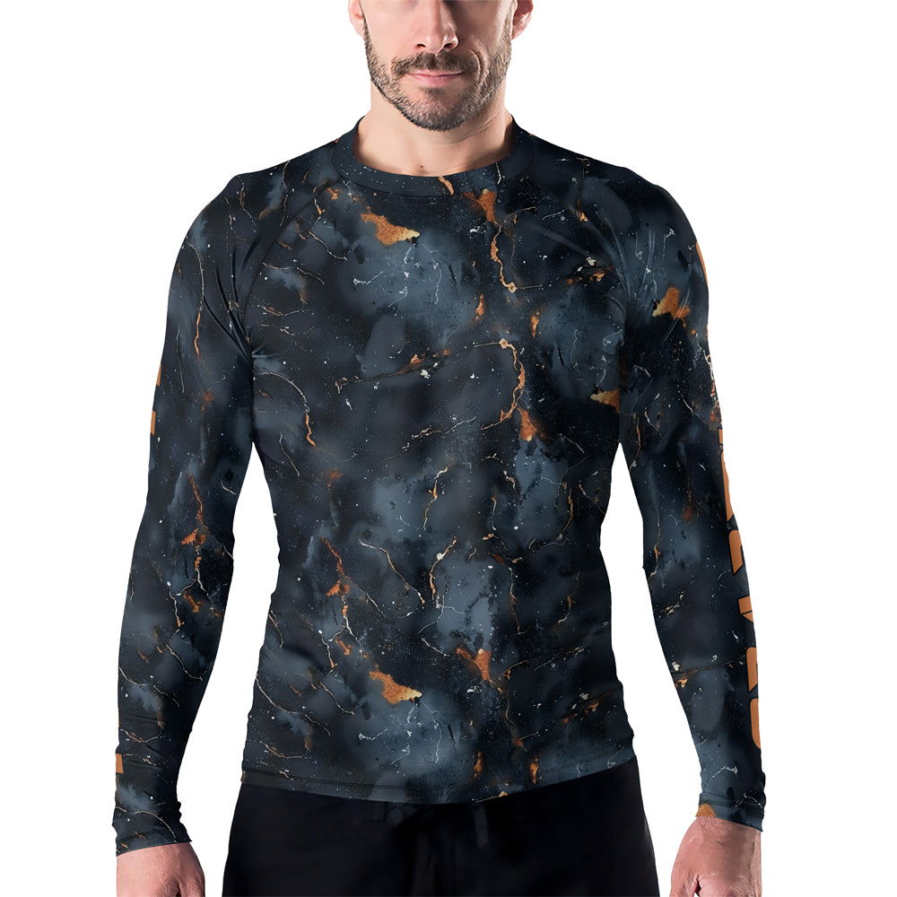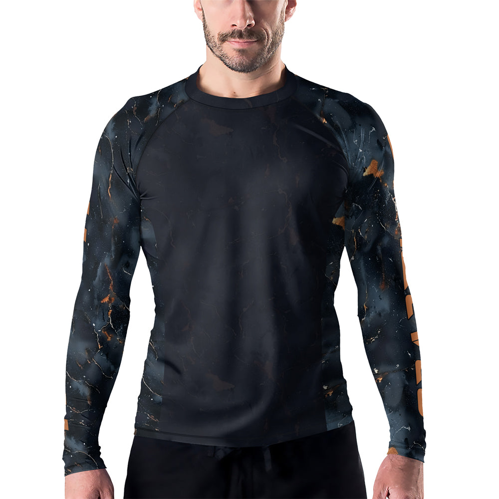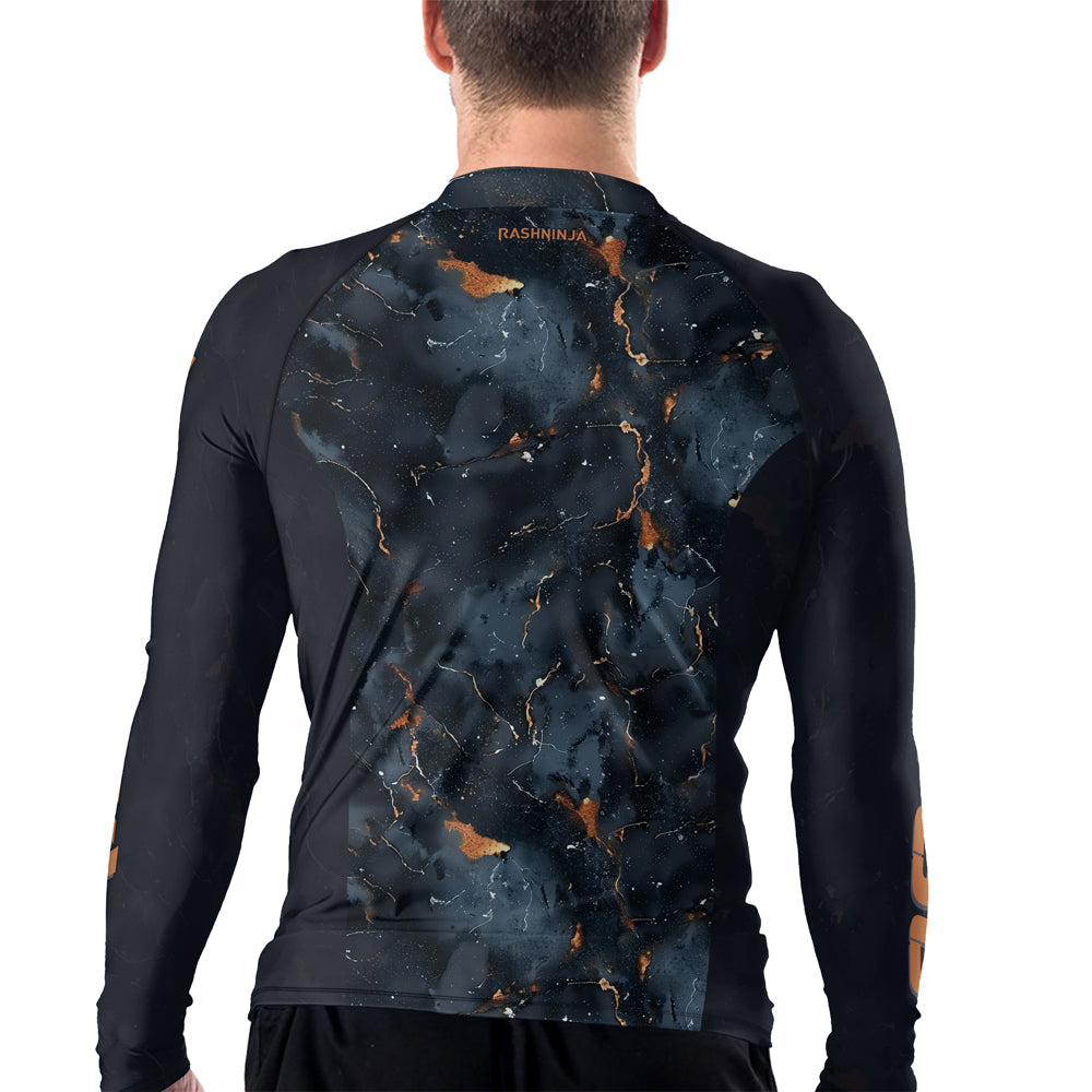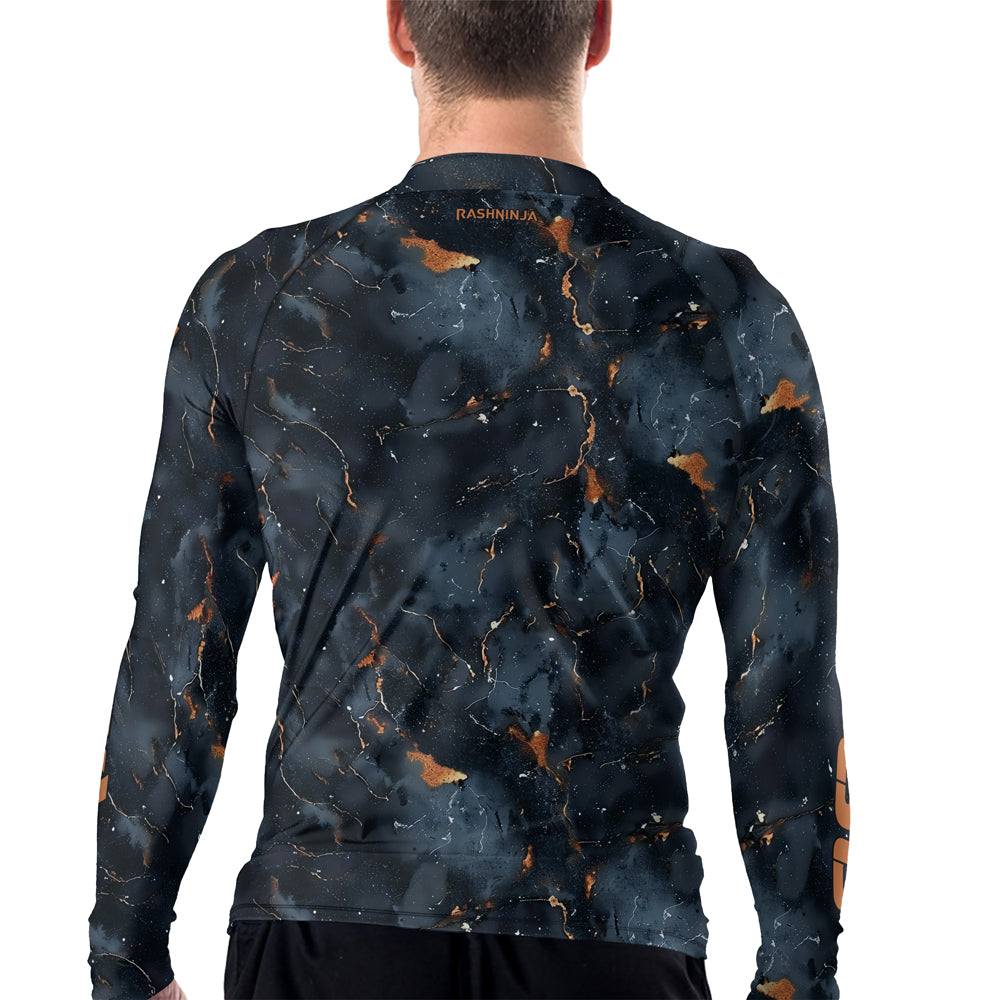 Rashninja Cyber Storm Marble Black Men's Long Sleeve Rash Guard