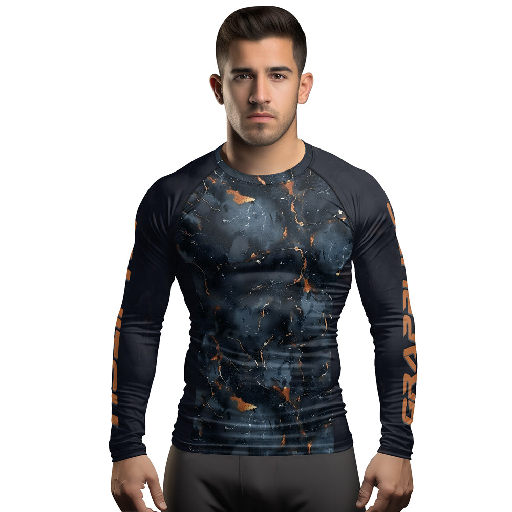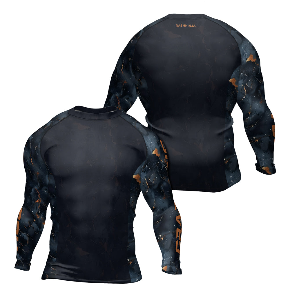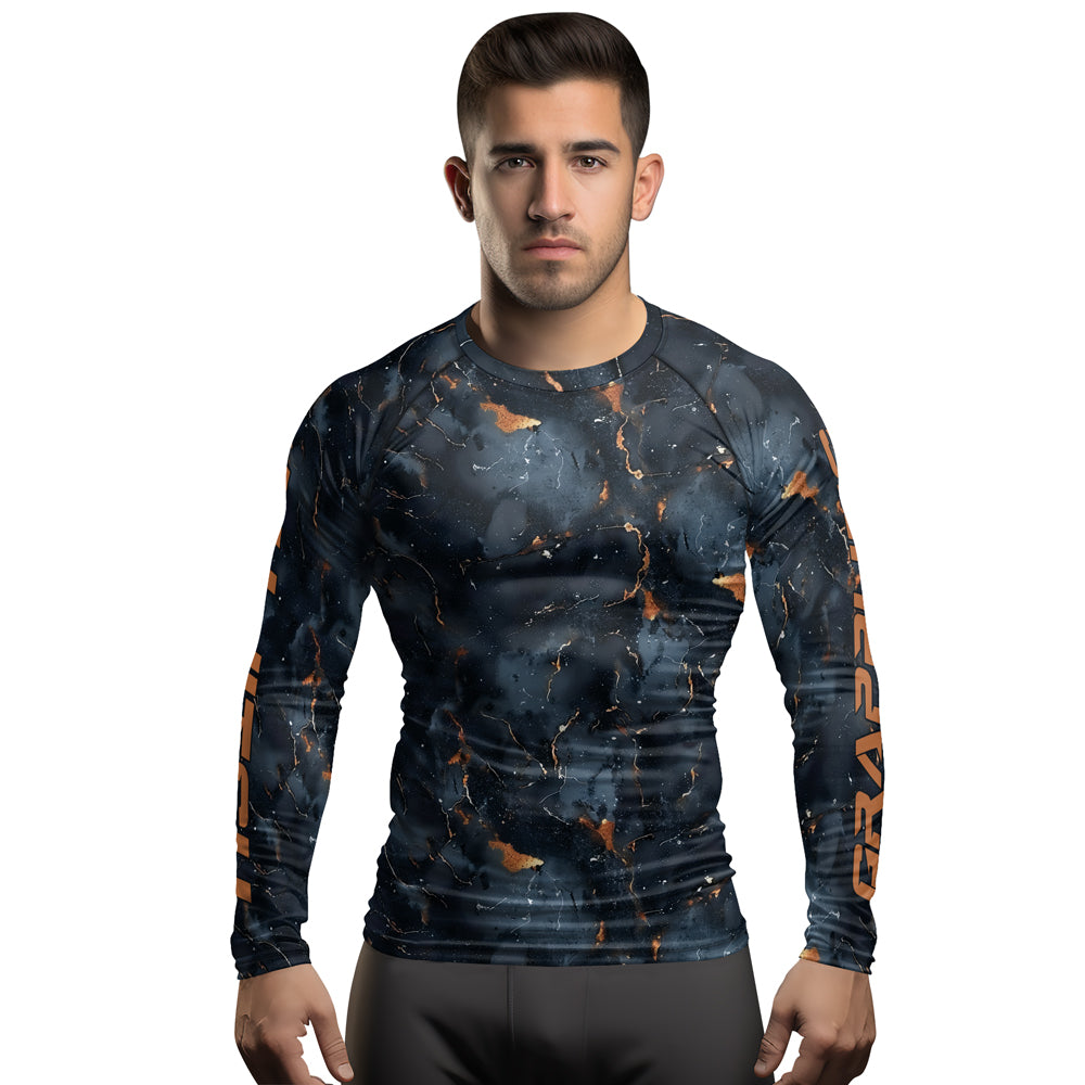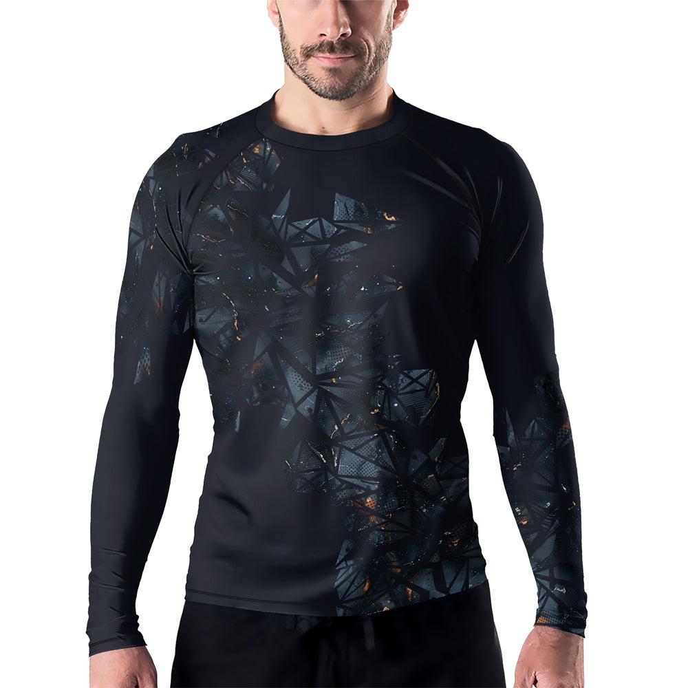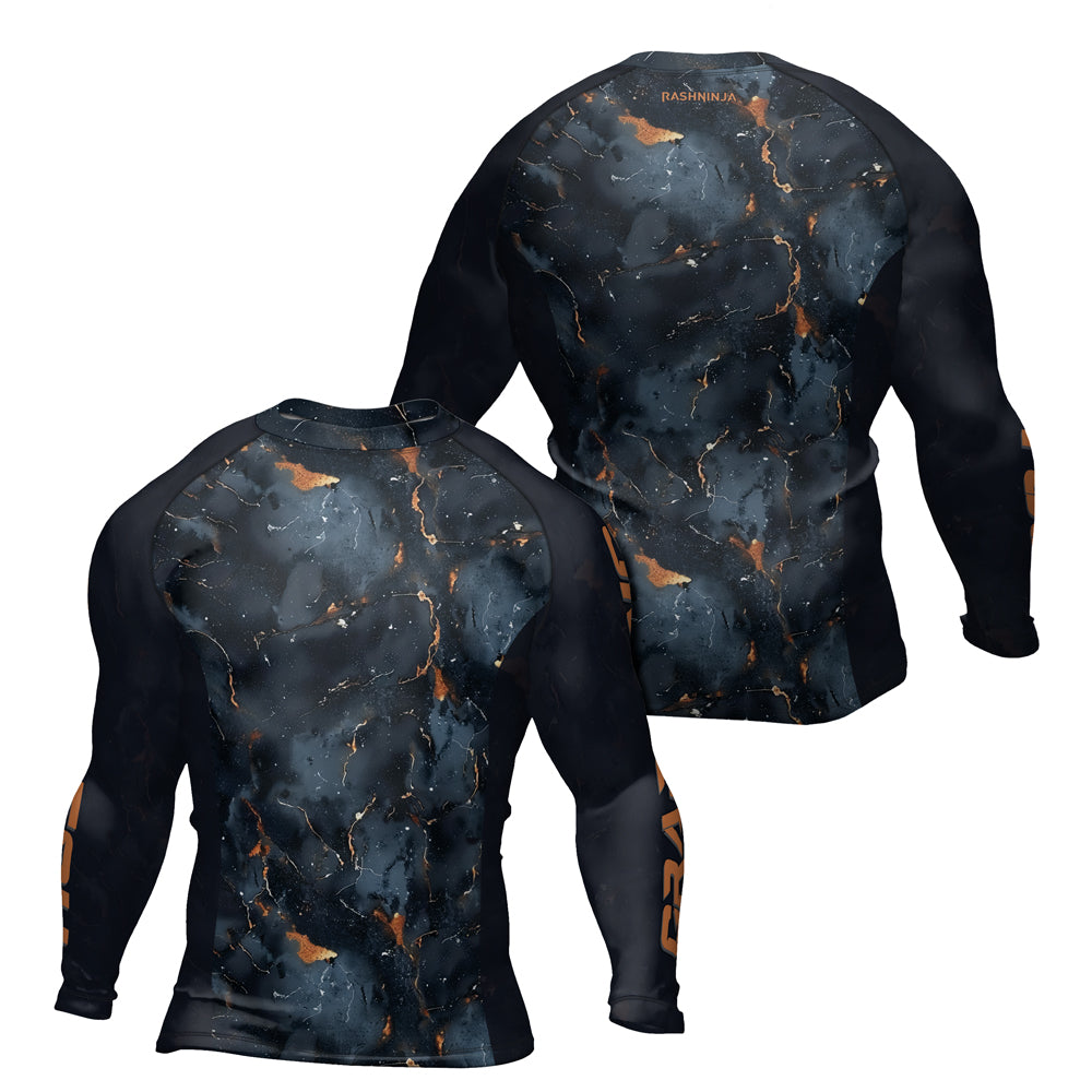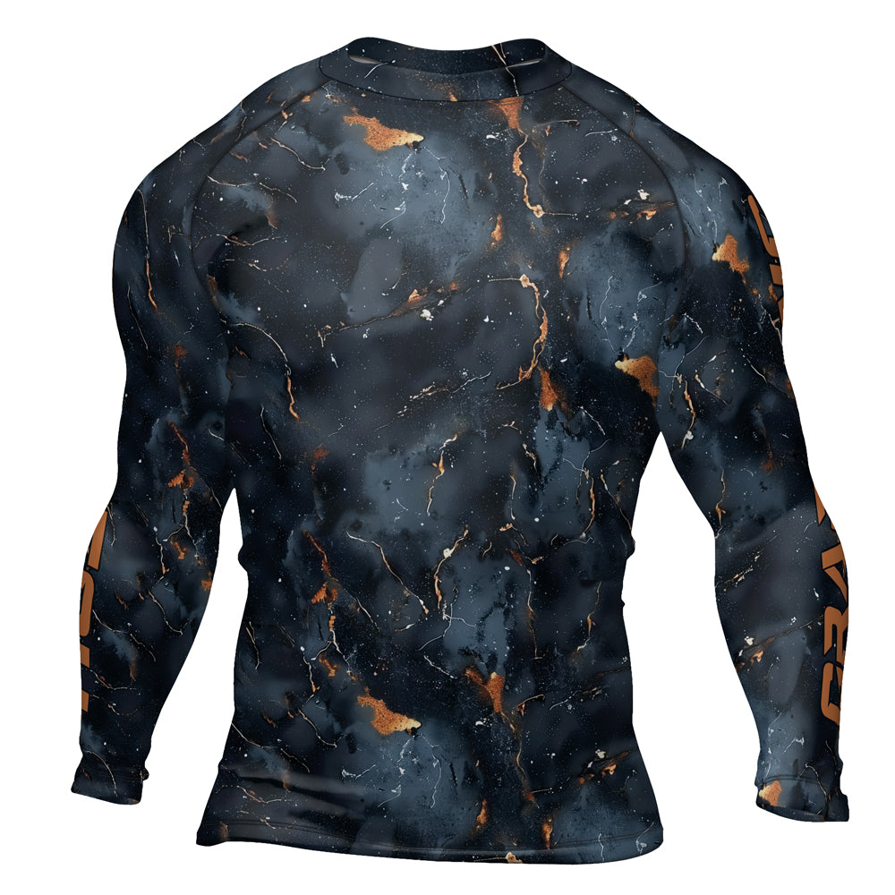 Rashninja Cyber Storm Marble Black Men's Long Sleeve Rash Guard