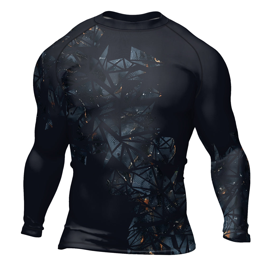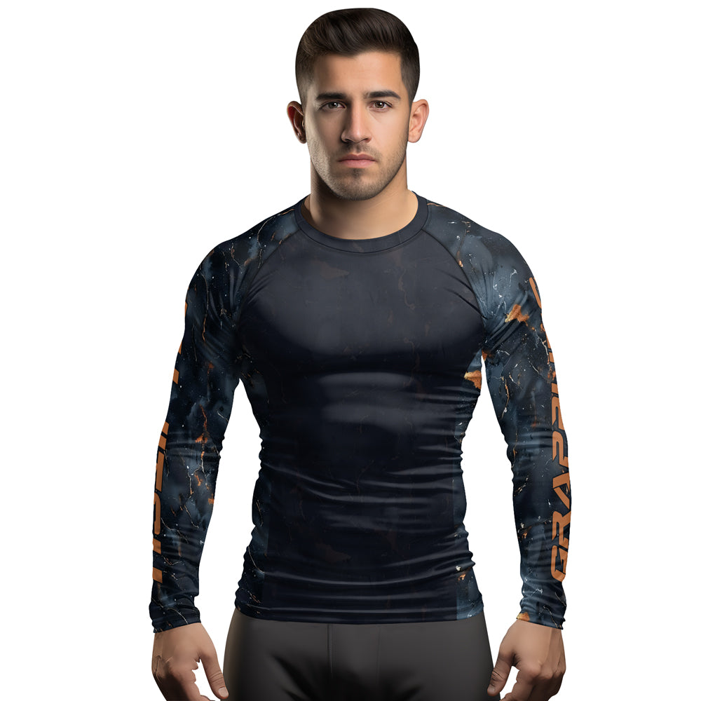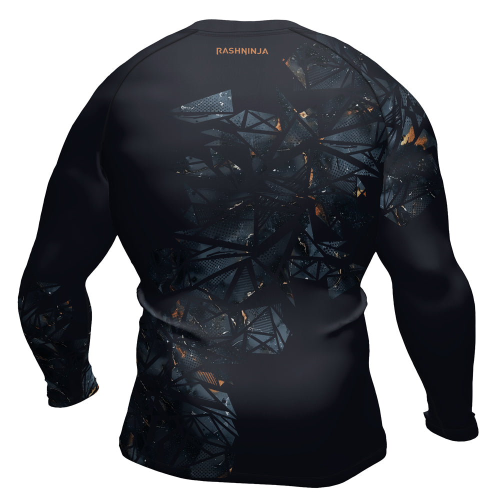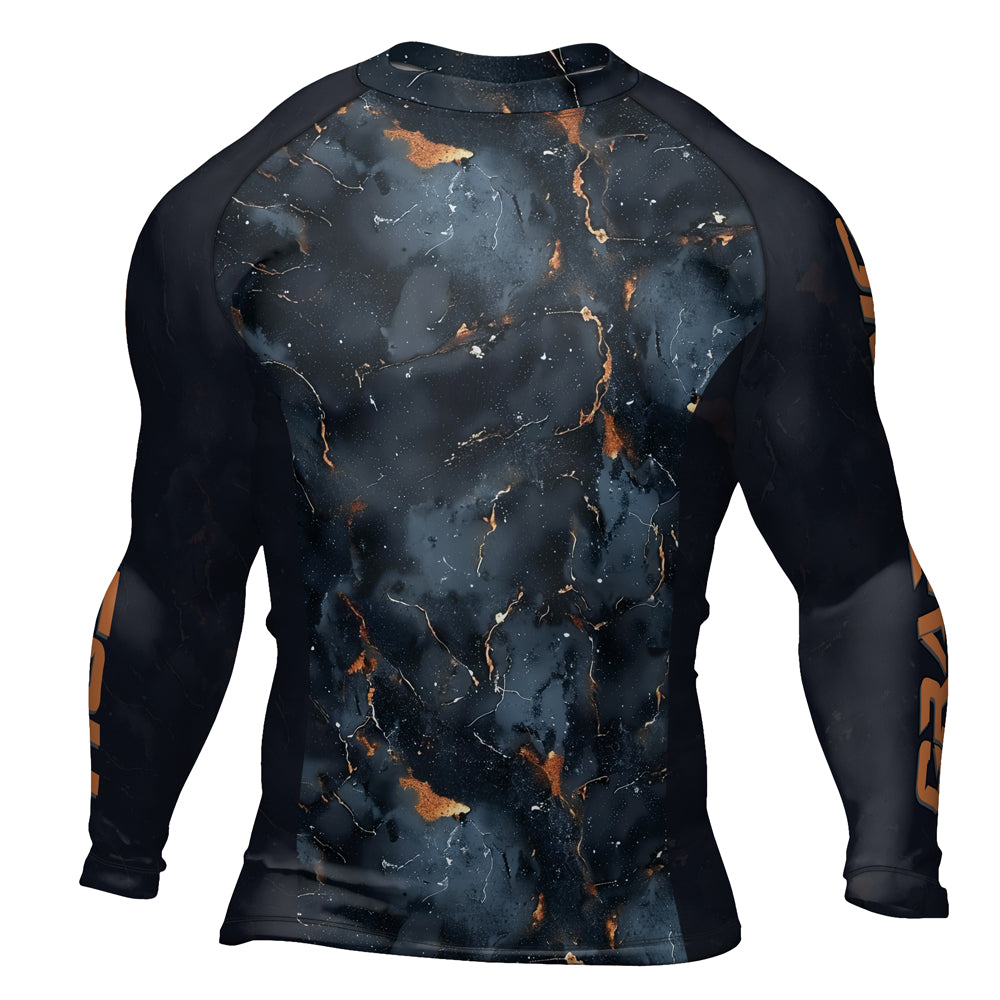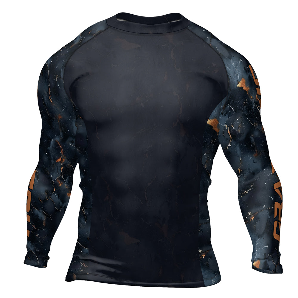Rashninja Cyber Storm Marble Black Men's Long Sleeve Rash Guard