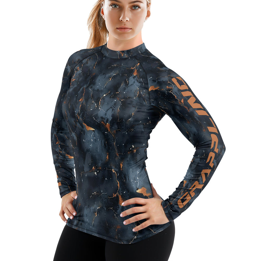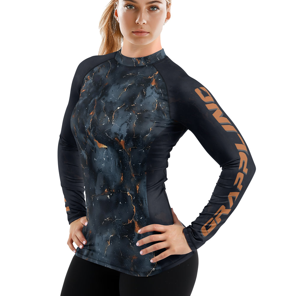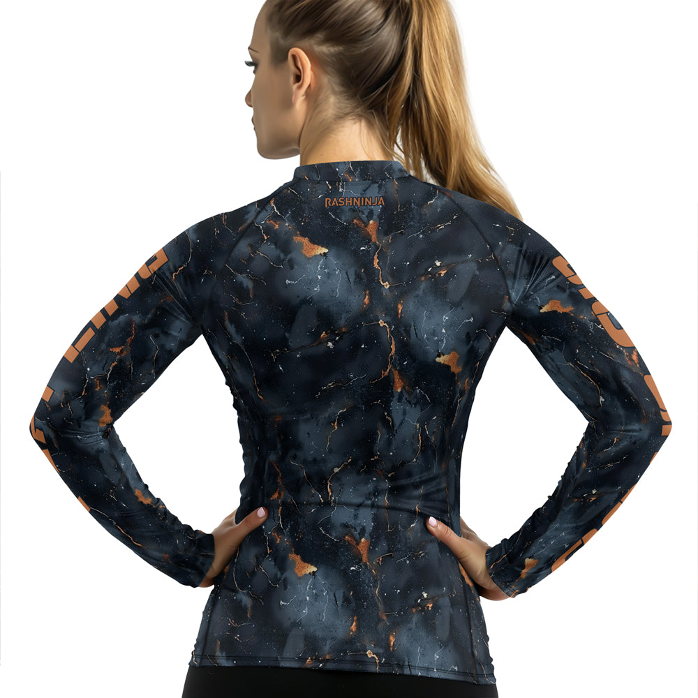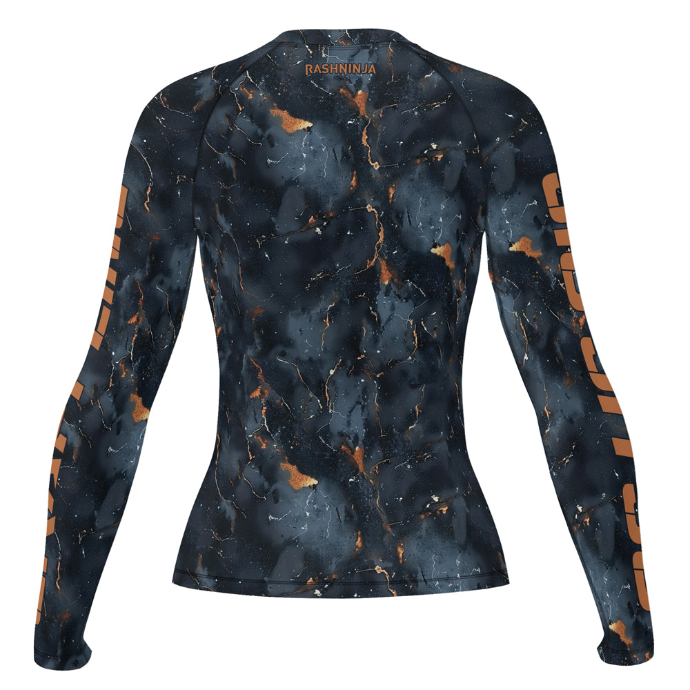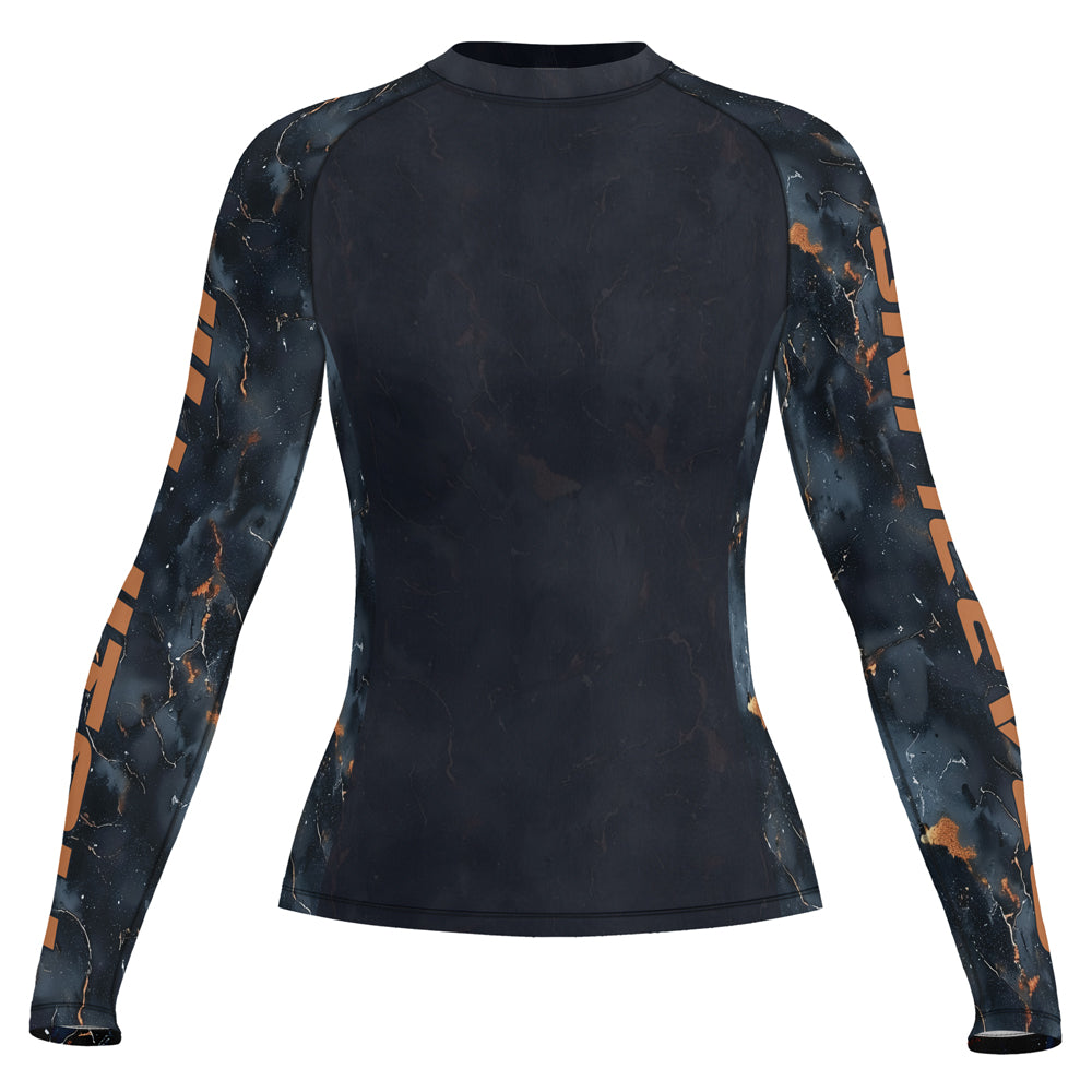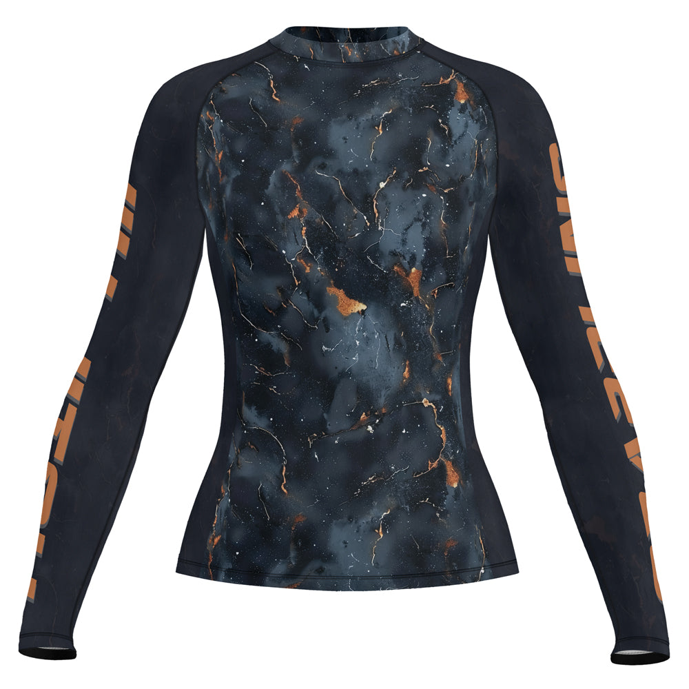 Rashninja Cyber Storm Marble Black Women's Long Sleeve Rash Guard