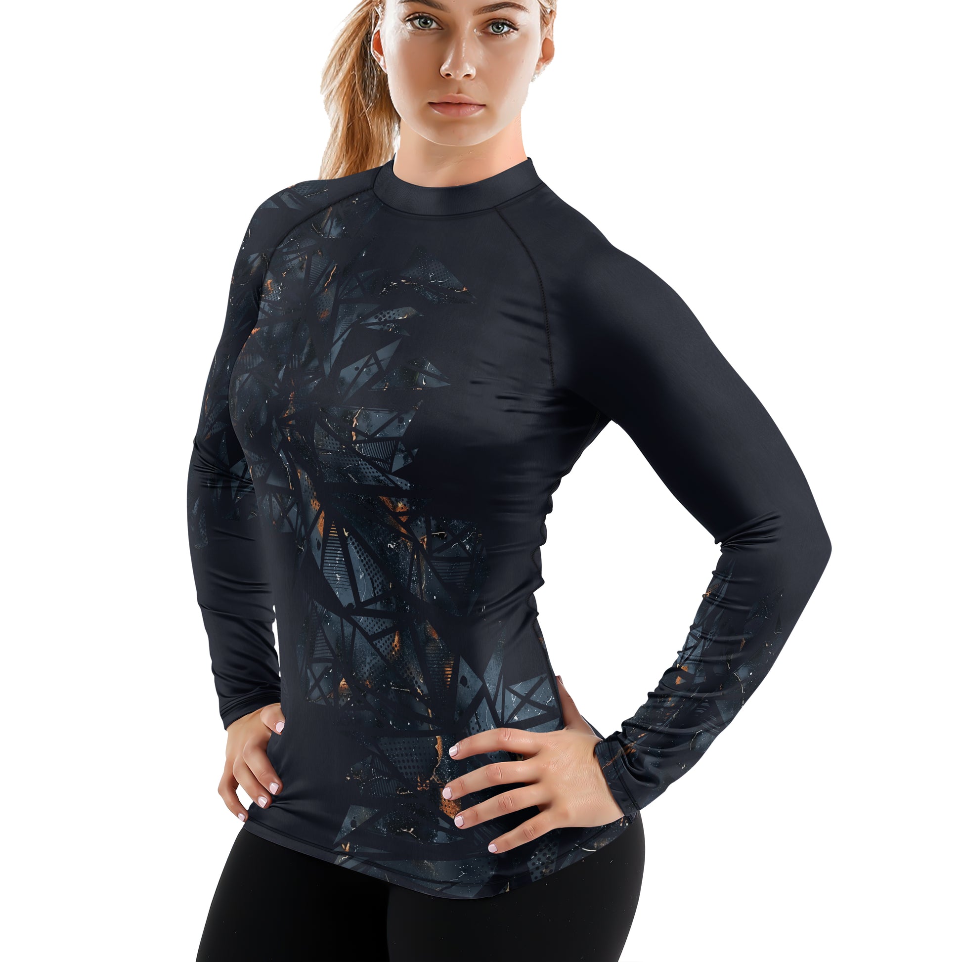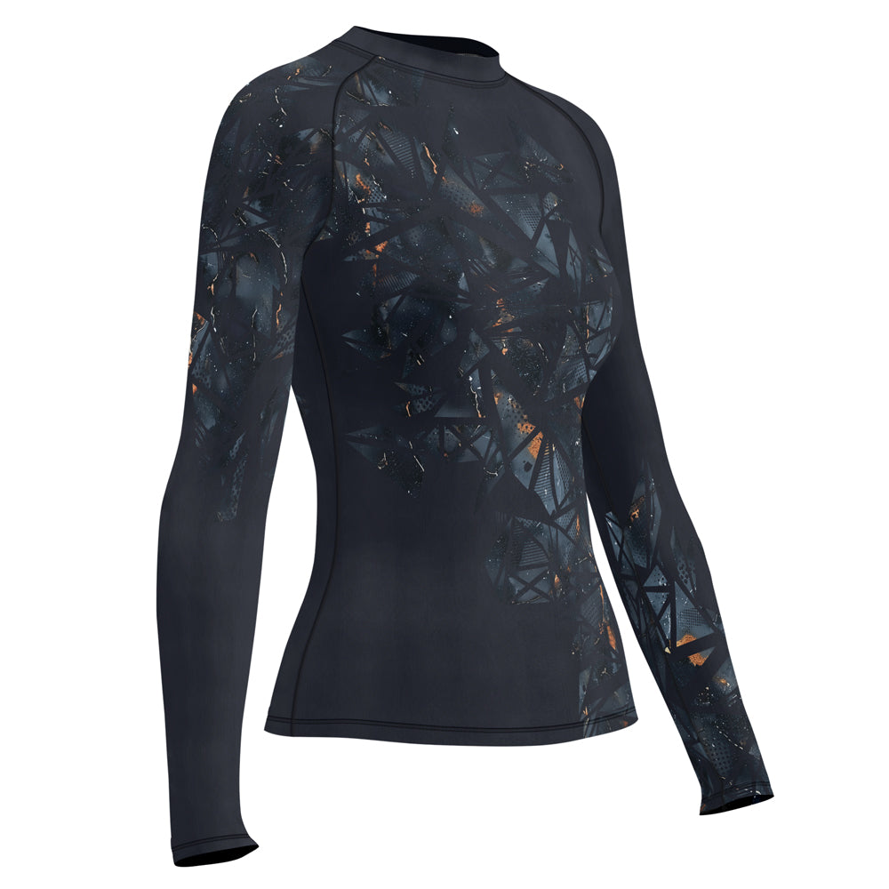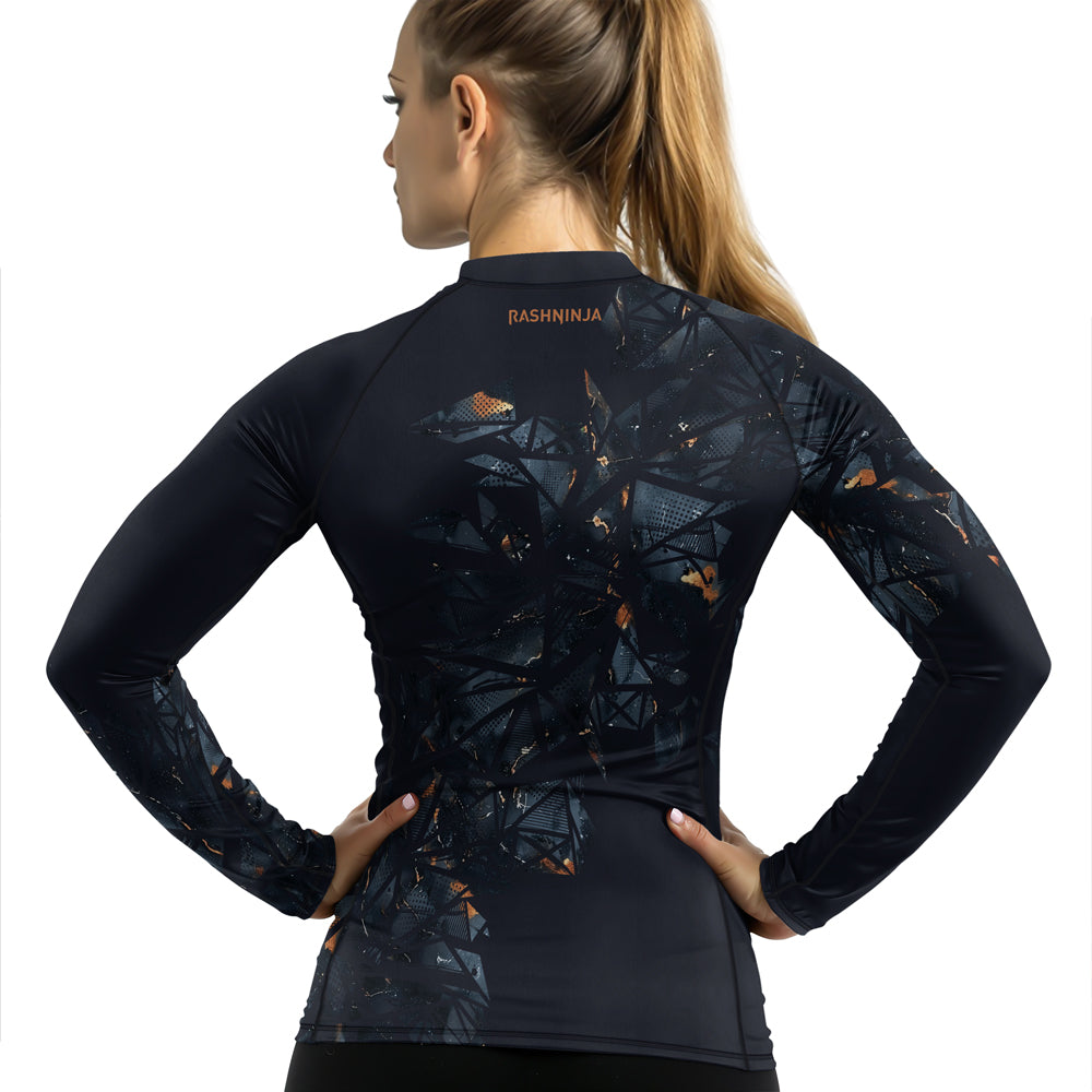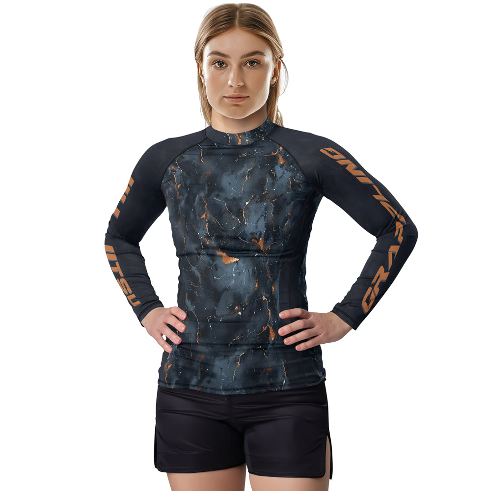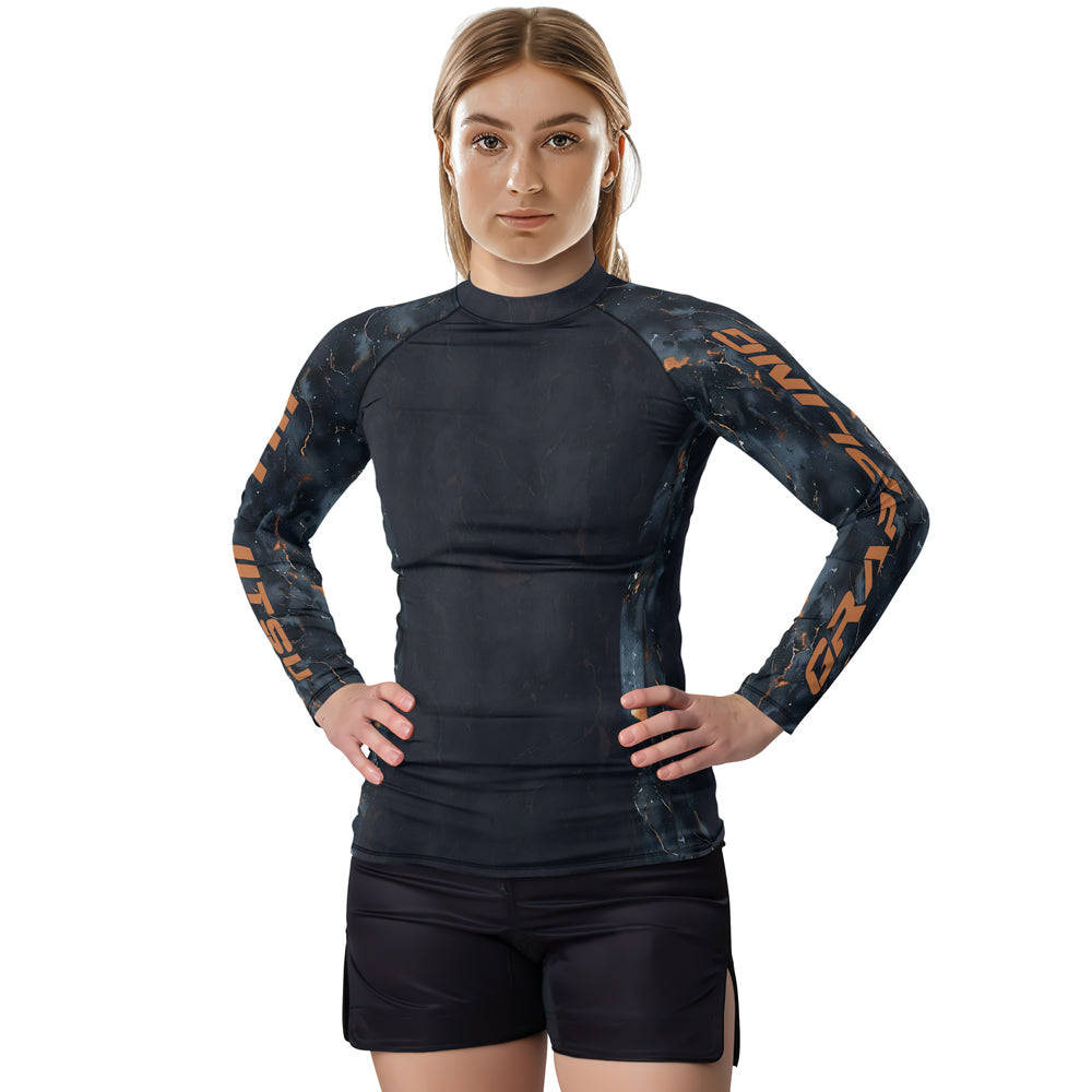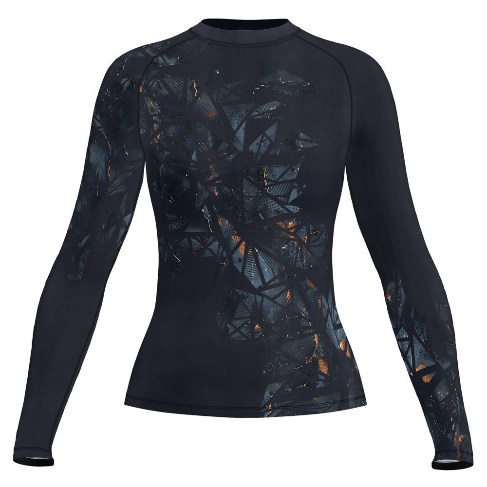 Rashninja Cyber Storm Marble Black Women's Long Sleeve Rash Guard