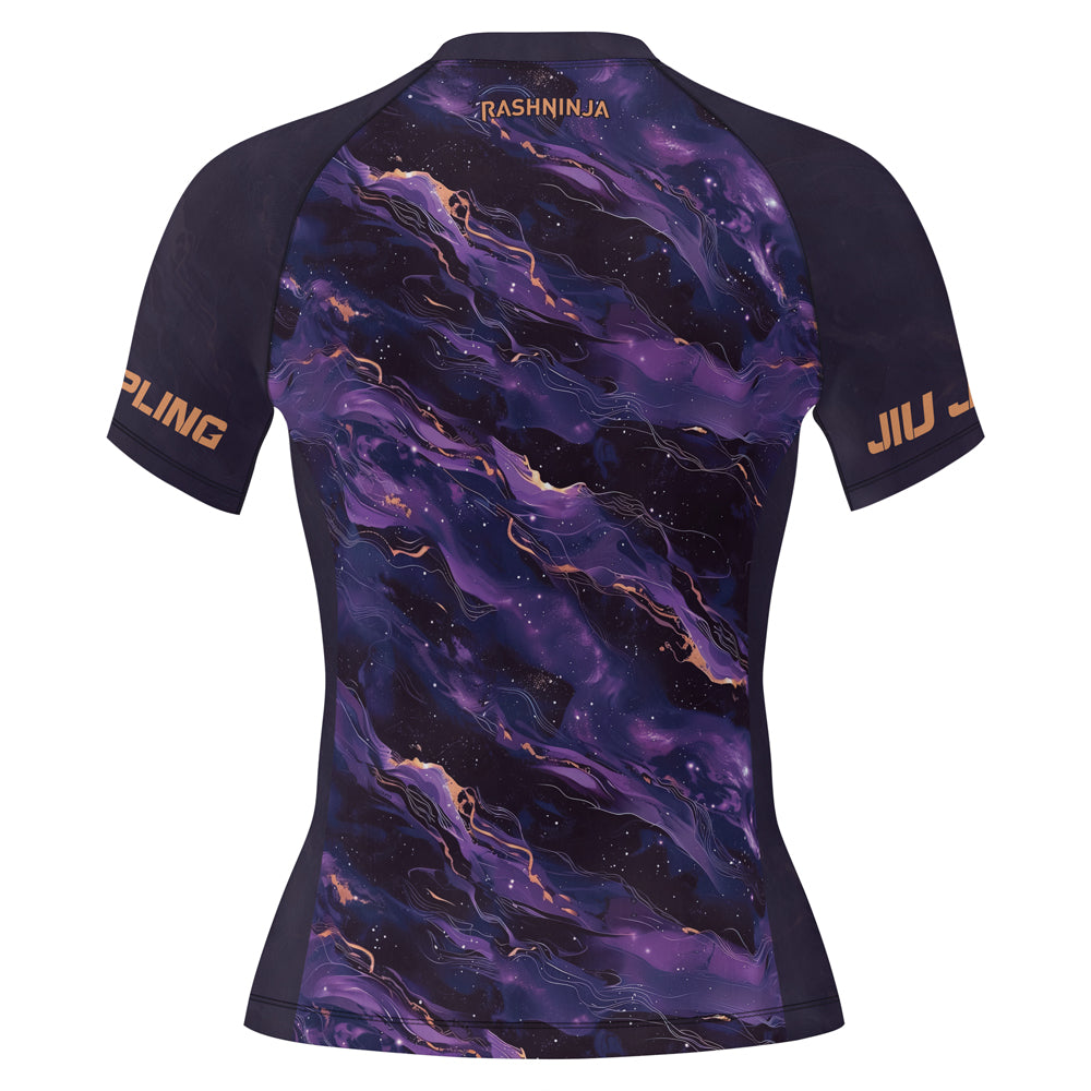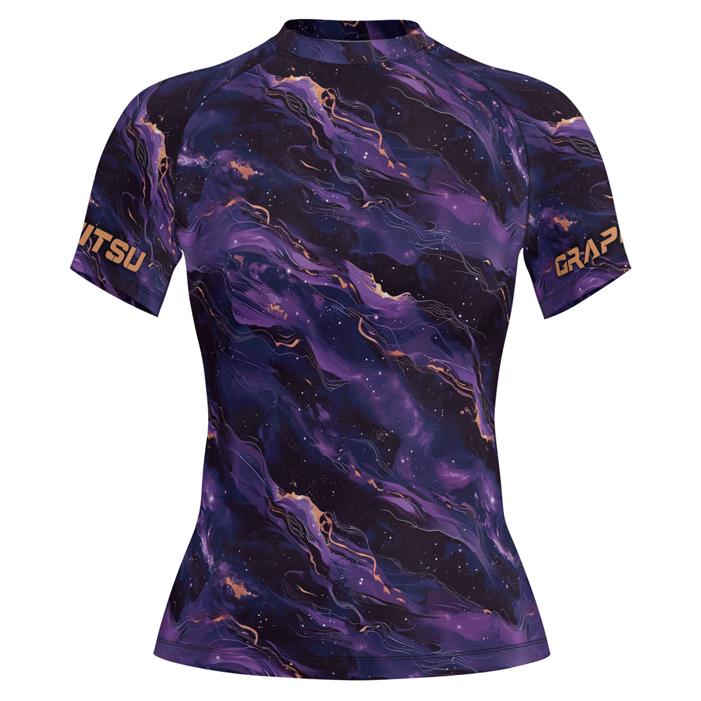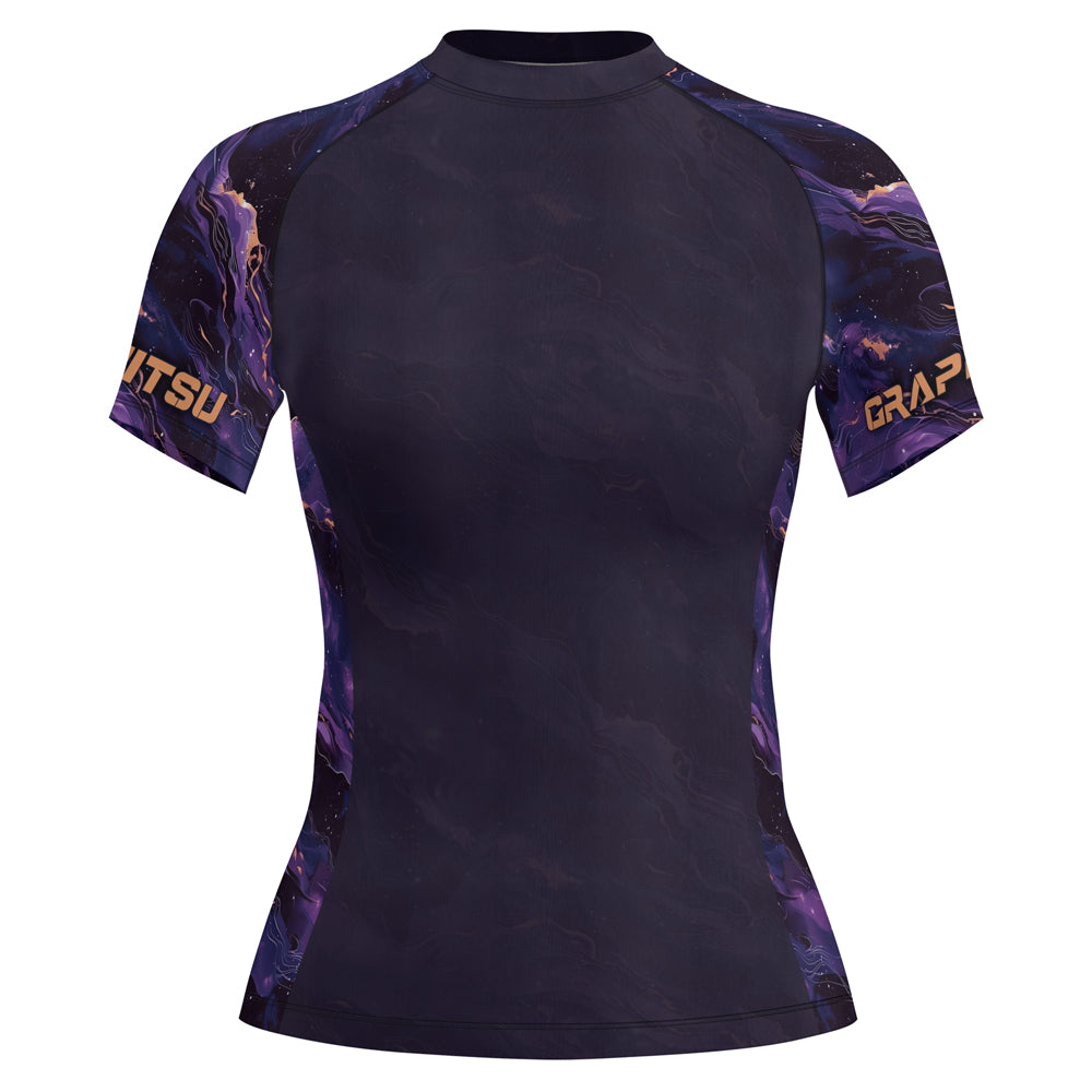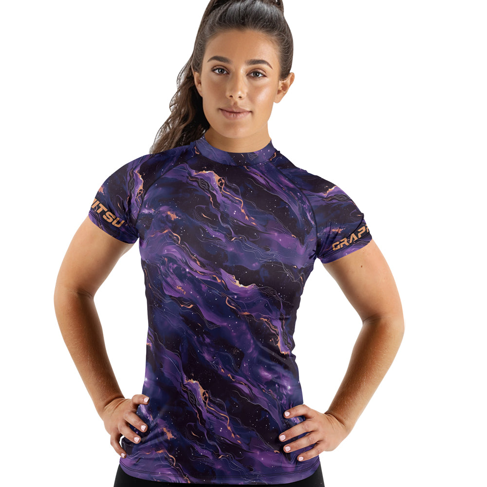 Rashninja Cyber Storm Marble Purple Women's Short Sleeve Rash Guard