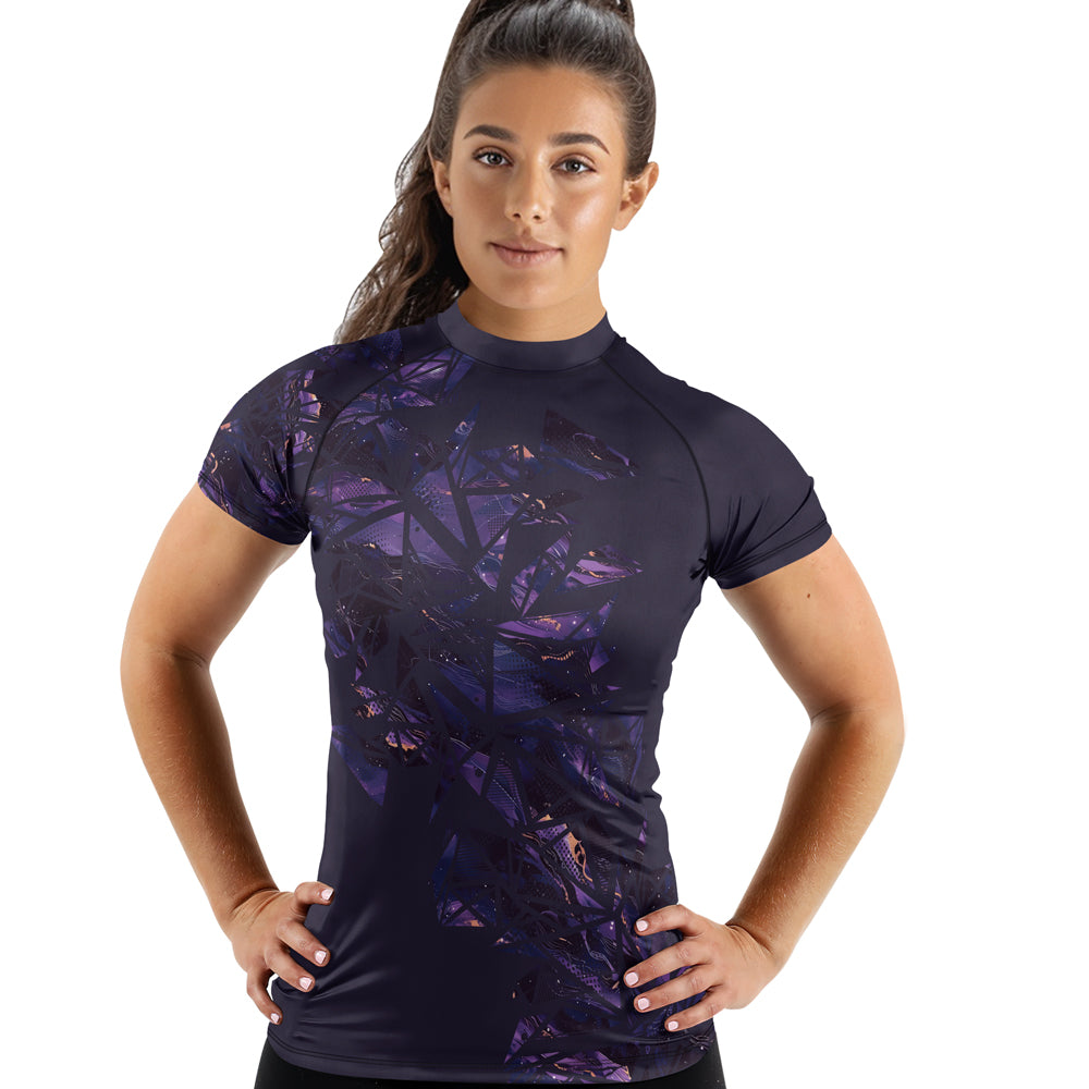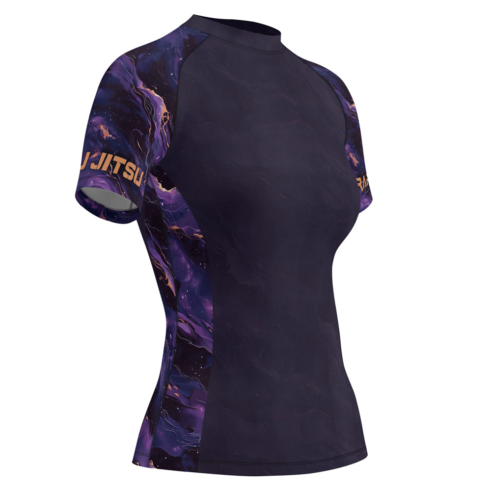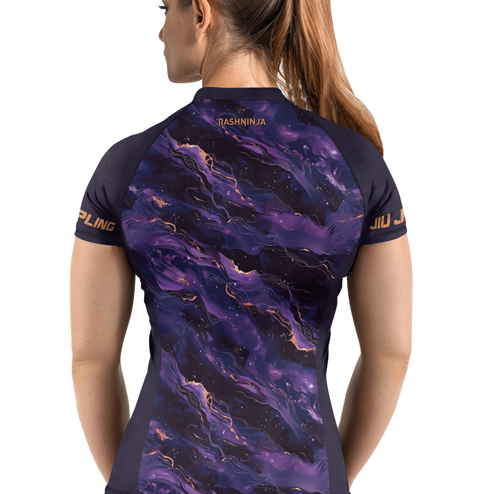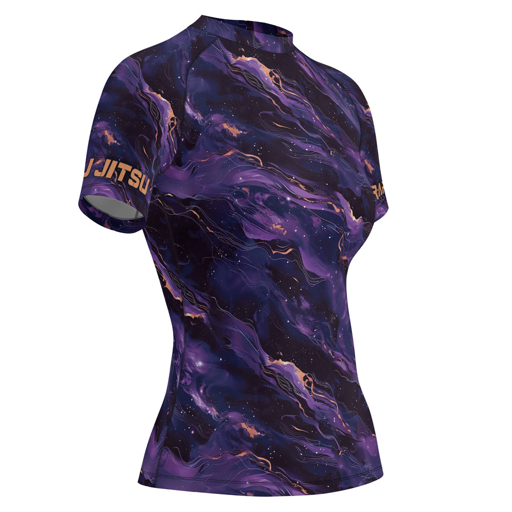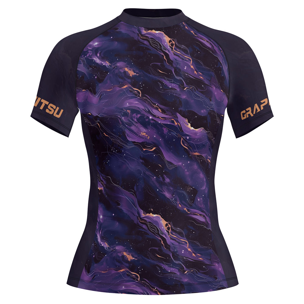 Rashninja Cyber Storm Marble Purple Women's Short Sleeve Rash Guard