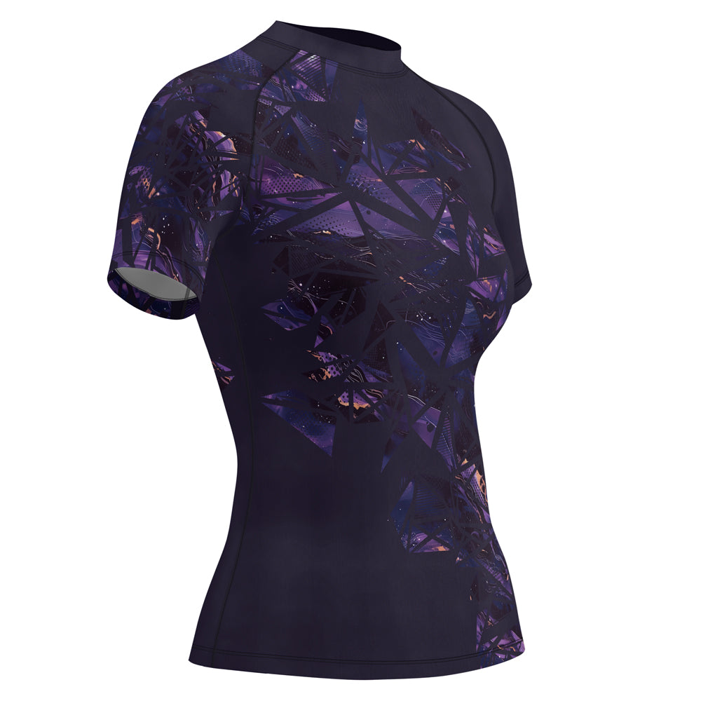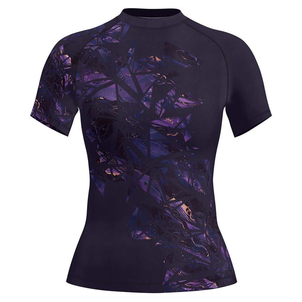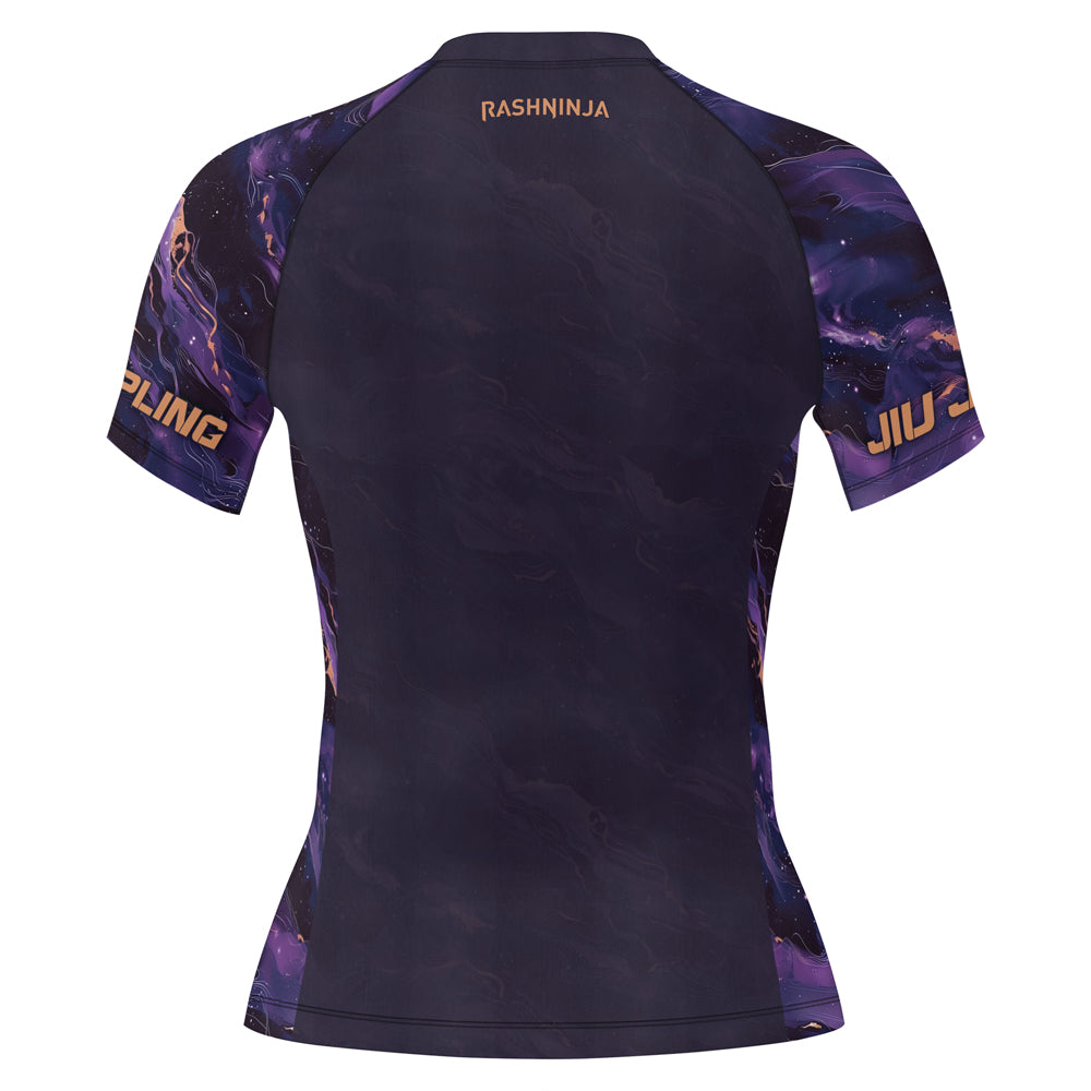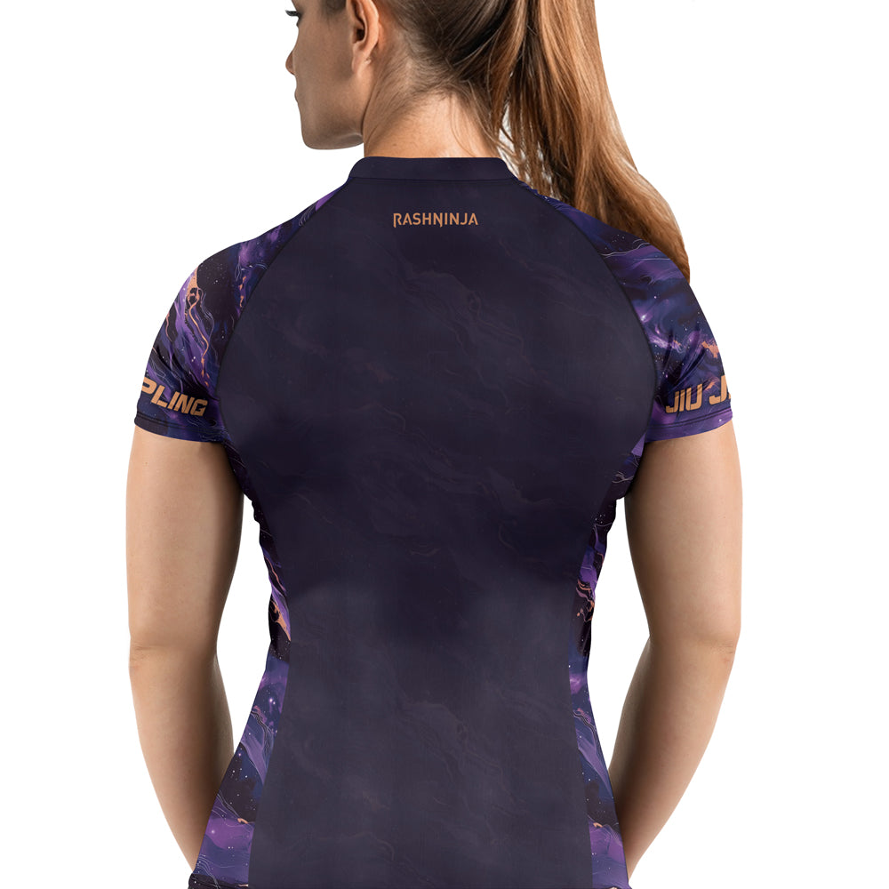 Rashninja Cyber Storm Marble Purple Women's Short Sleeve Rash Guard