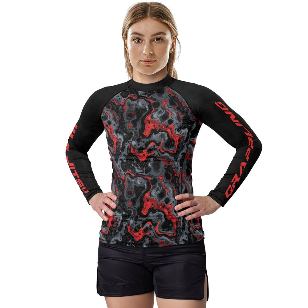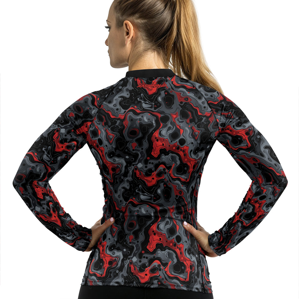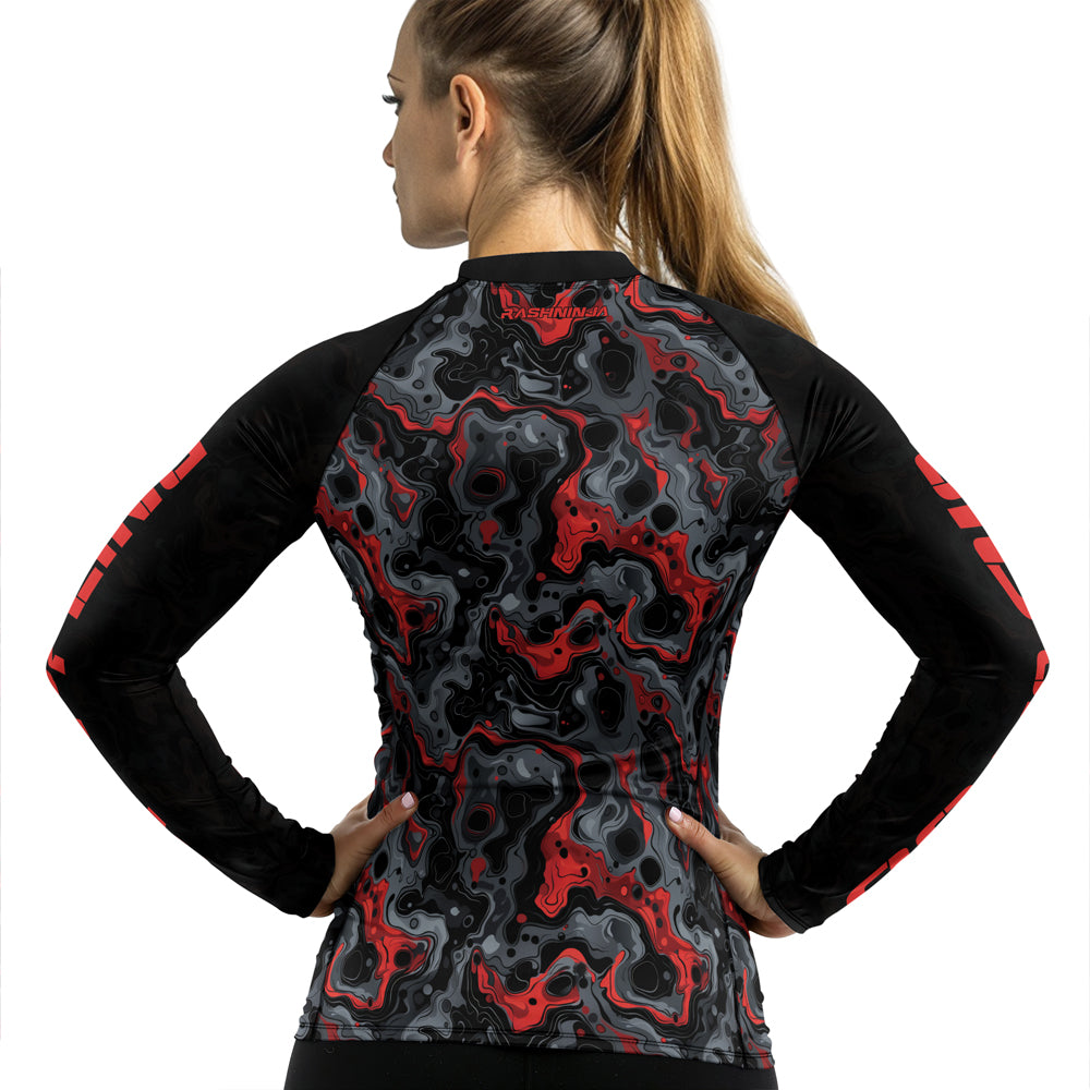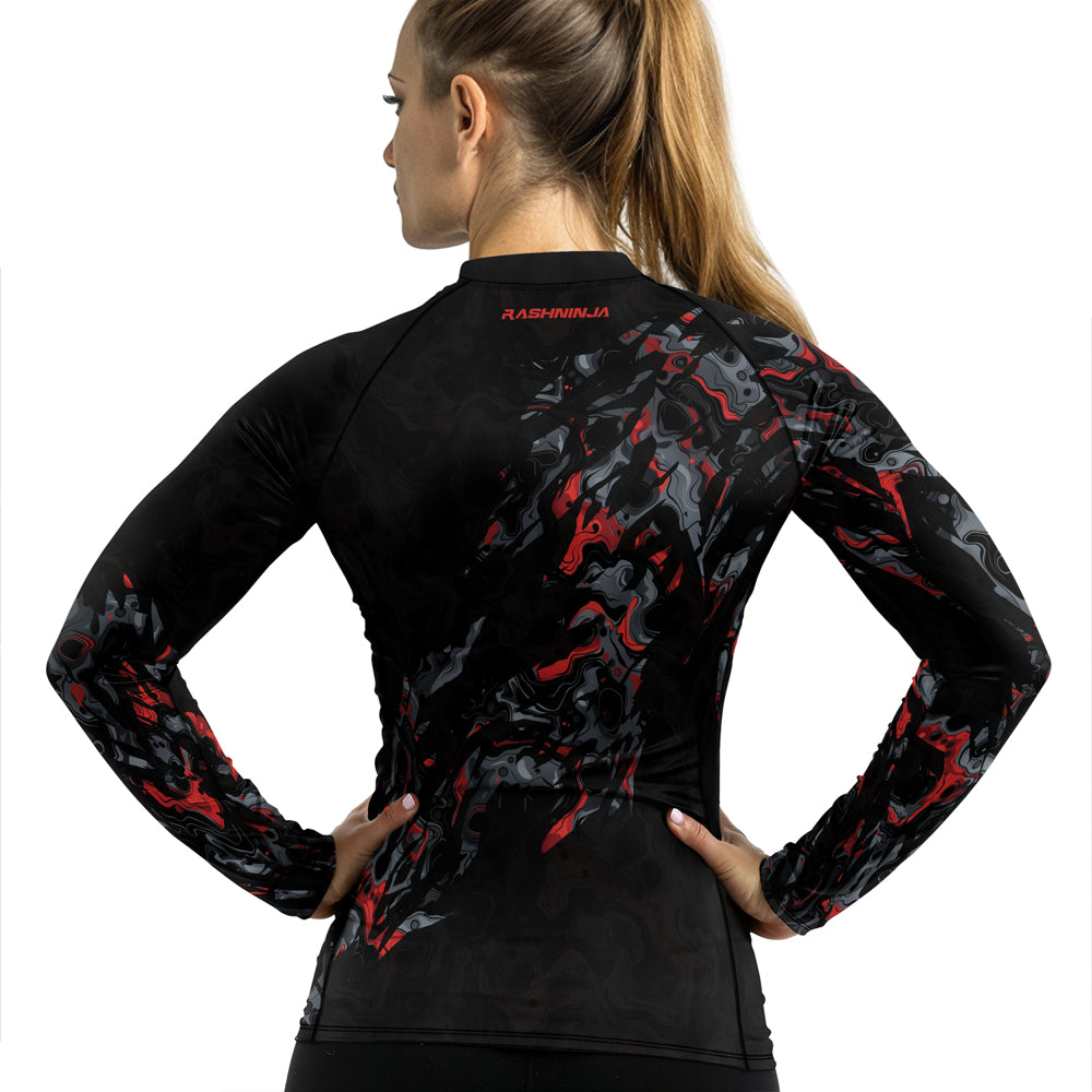 Rashninja Cyber Storm Red Women's Long Sleeve Rash Guard