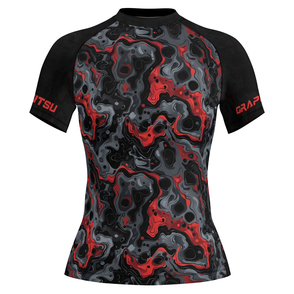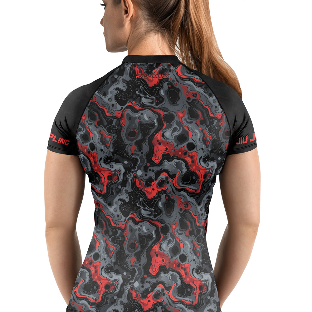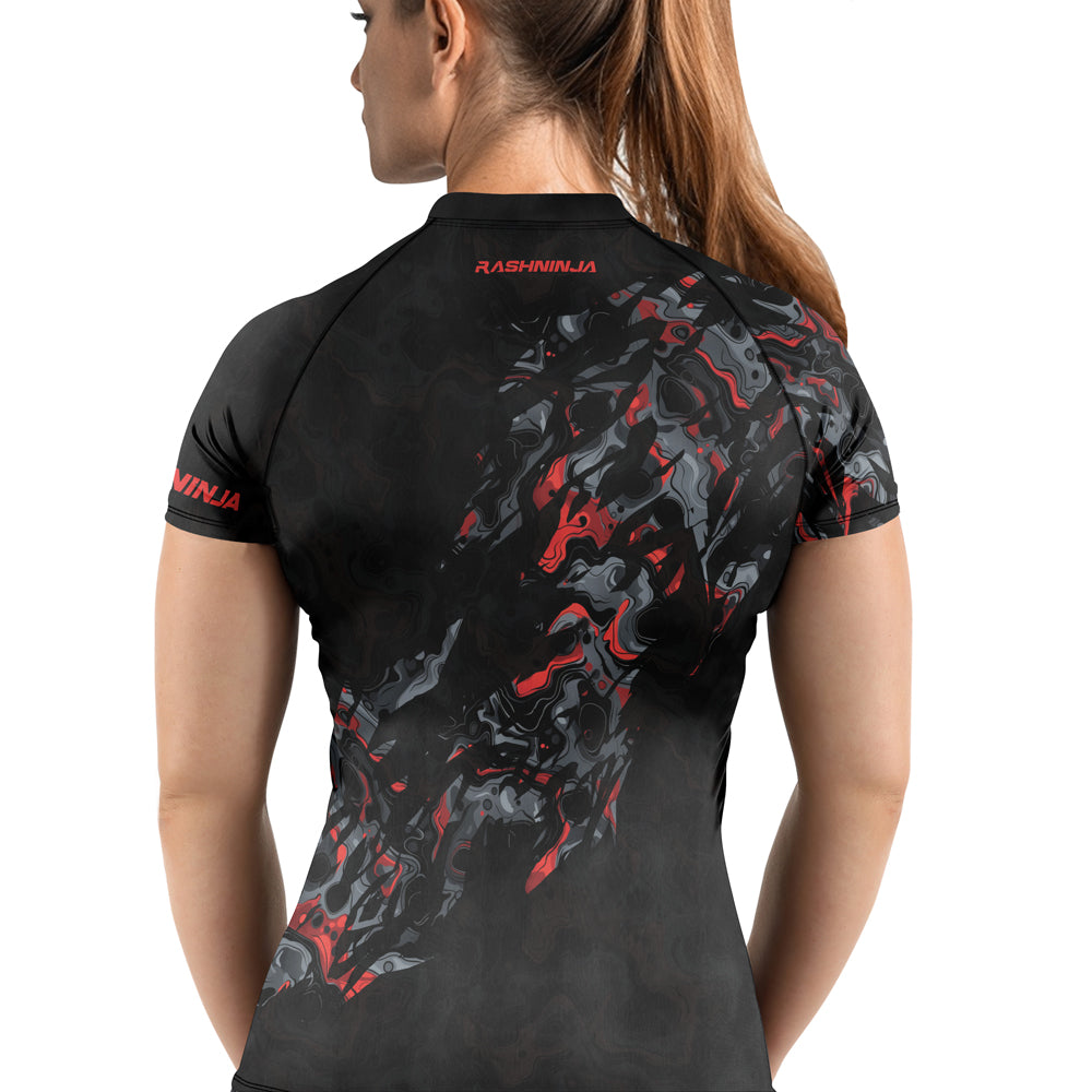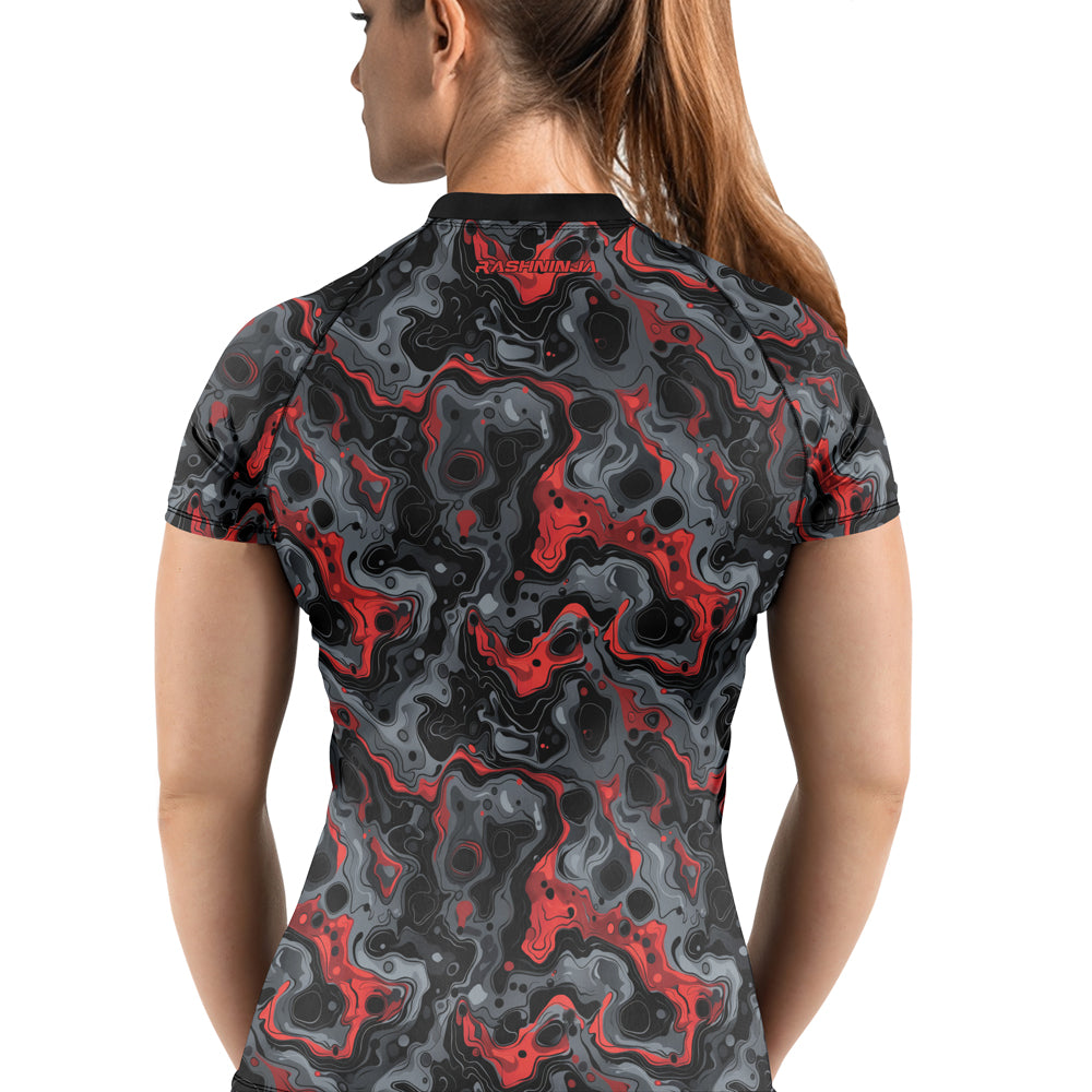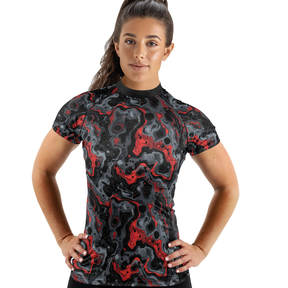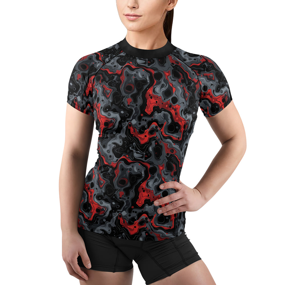 Rashninja Cyber Storm Red Women's Short Sleeve Rash Guard