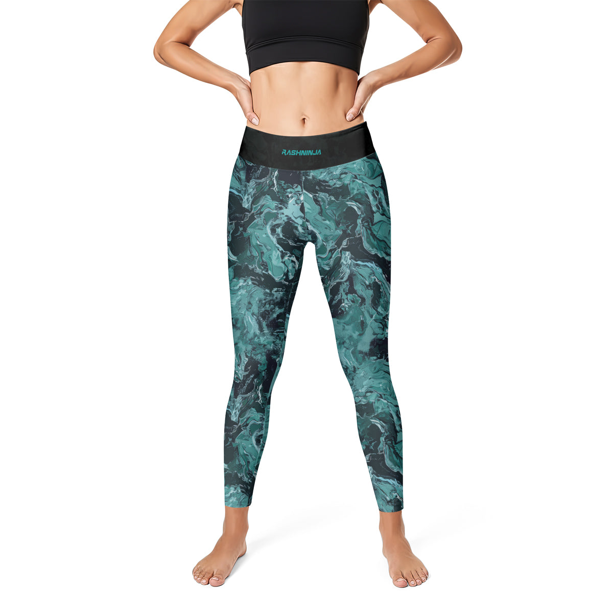 Rashninja Cyber Storm Turquoise Marble Women's Leggings