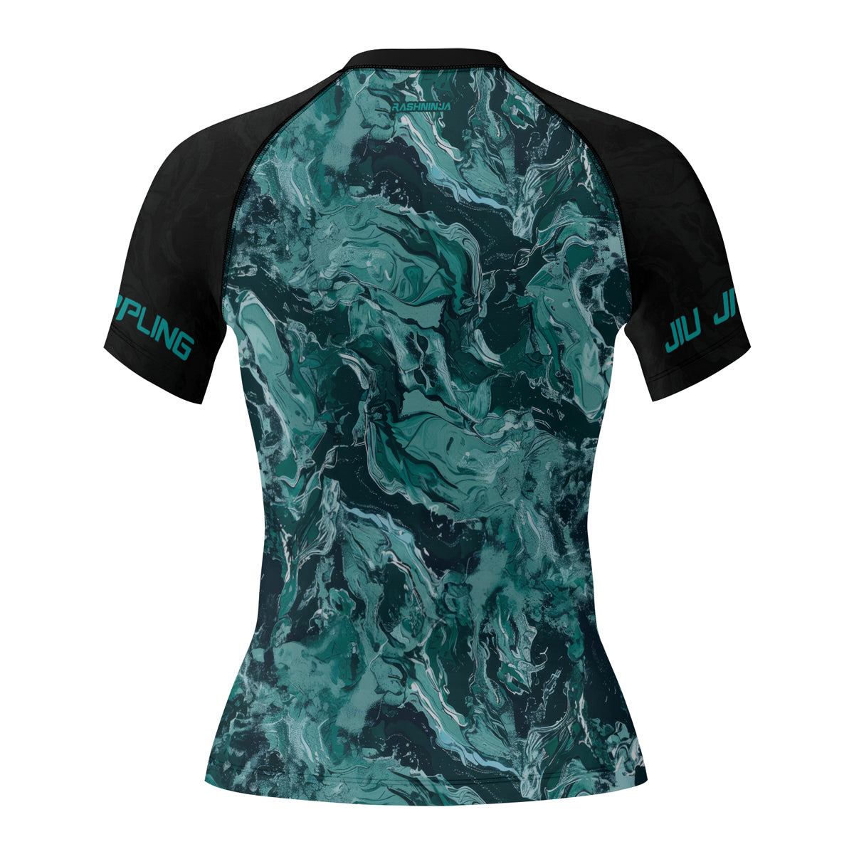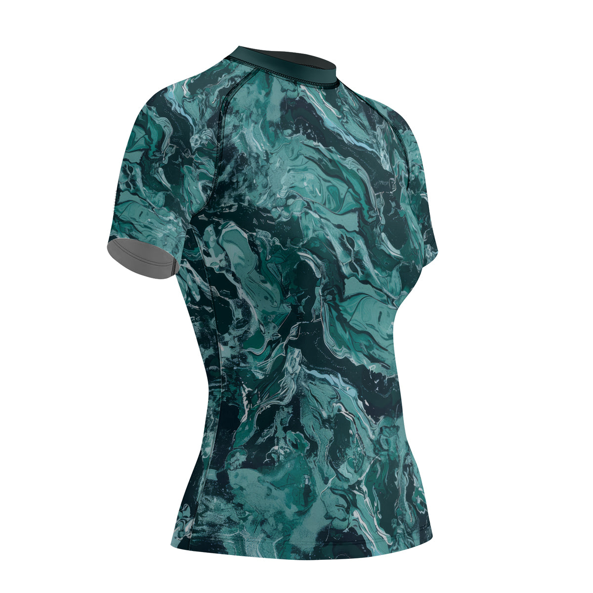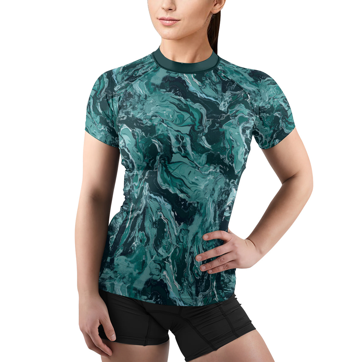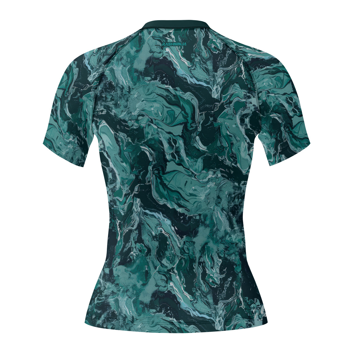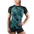 Rashninja Cyber Storm Turquoise Marble Women's Short Sleeve Rash Guard