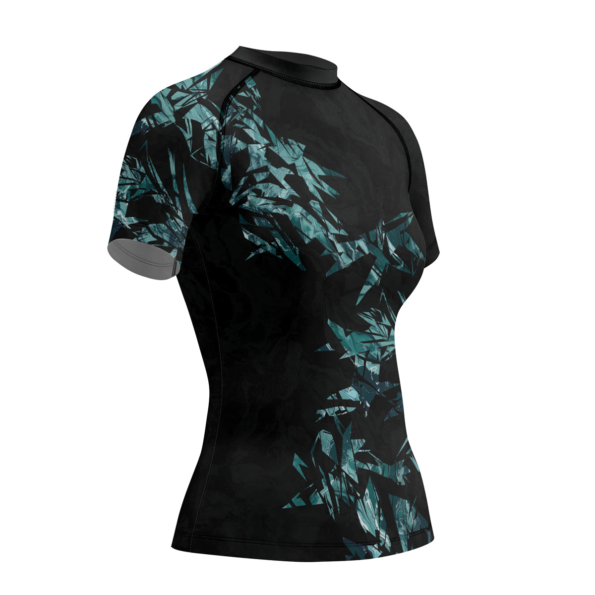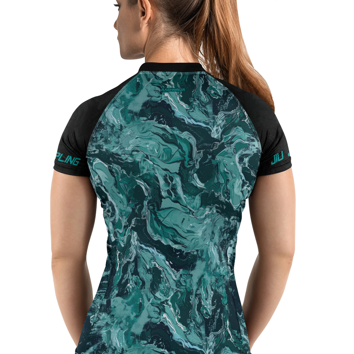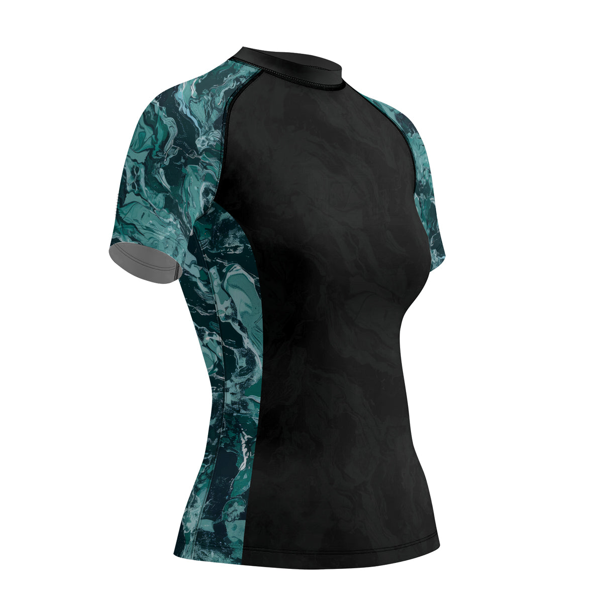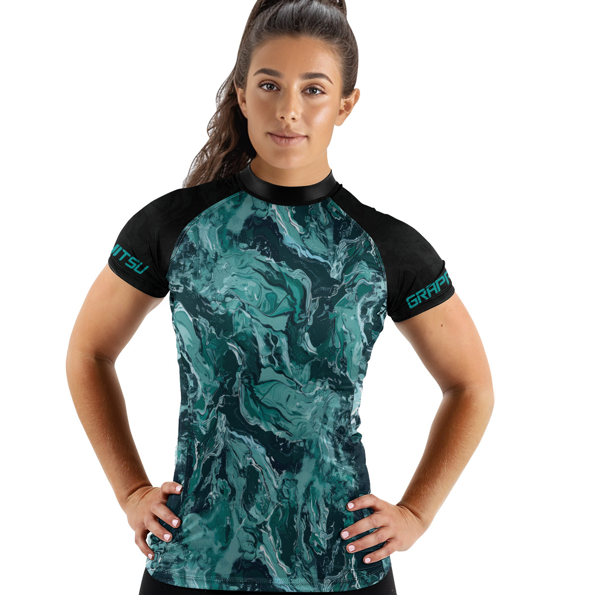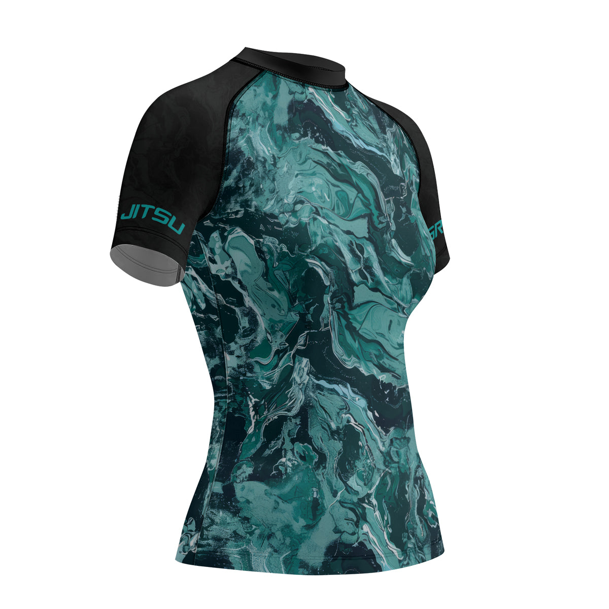 Rashninja Cyber Storm Turquoise Marble Women's Short Sleeve Rash Guard