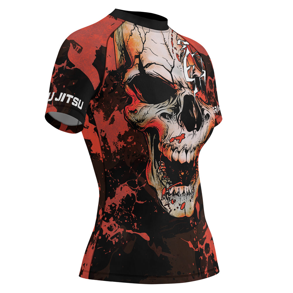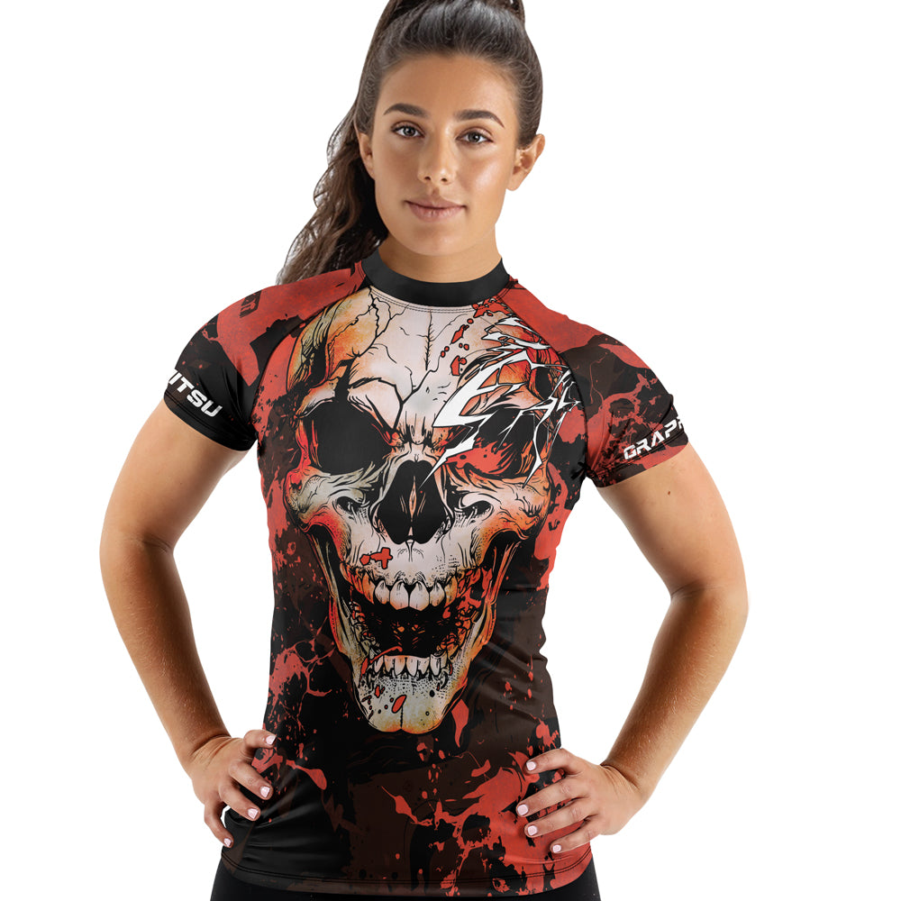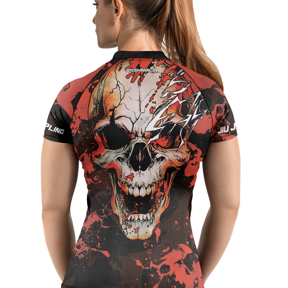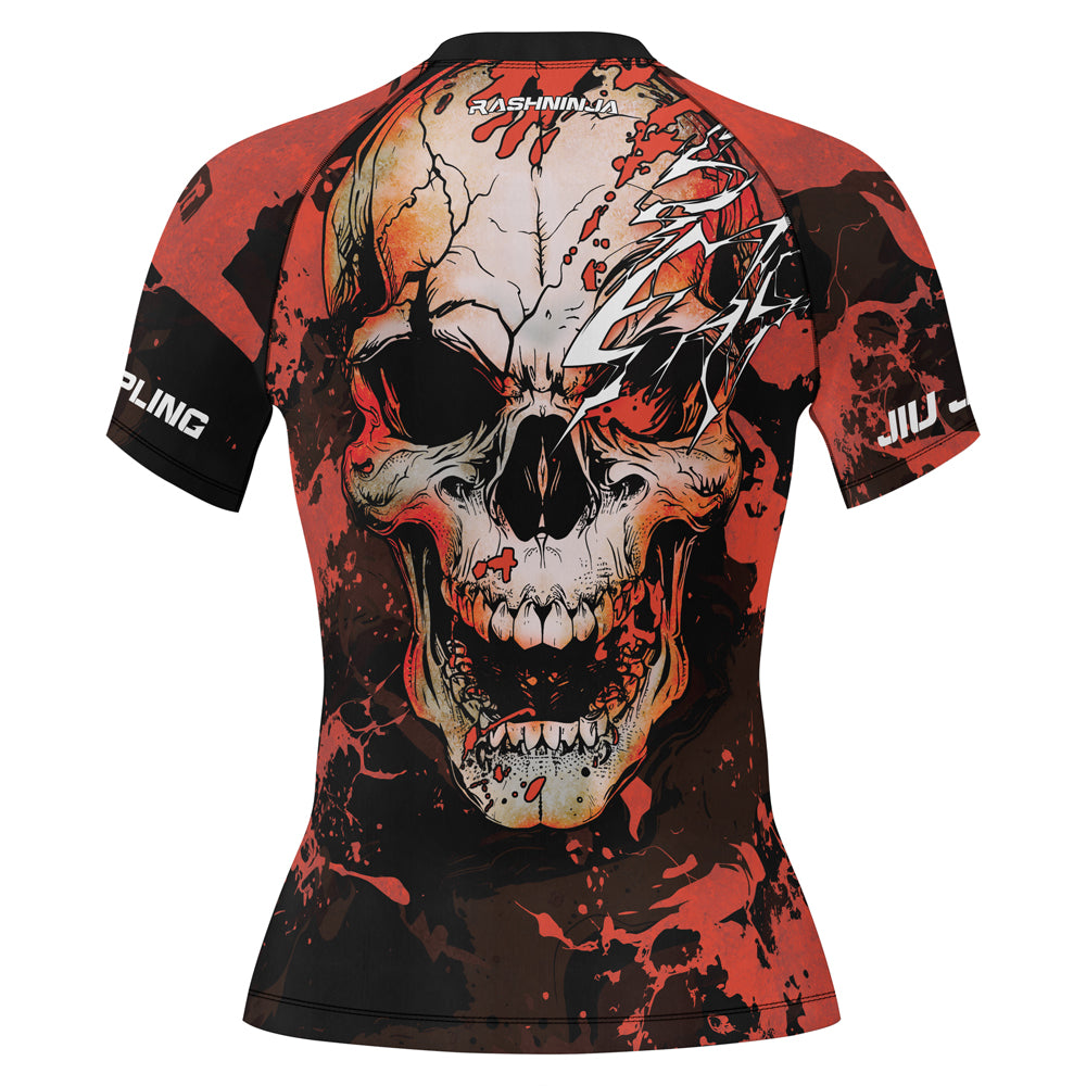 Rashninja Halloween Crimson Skull Women's Short Sleeve Rash Guard