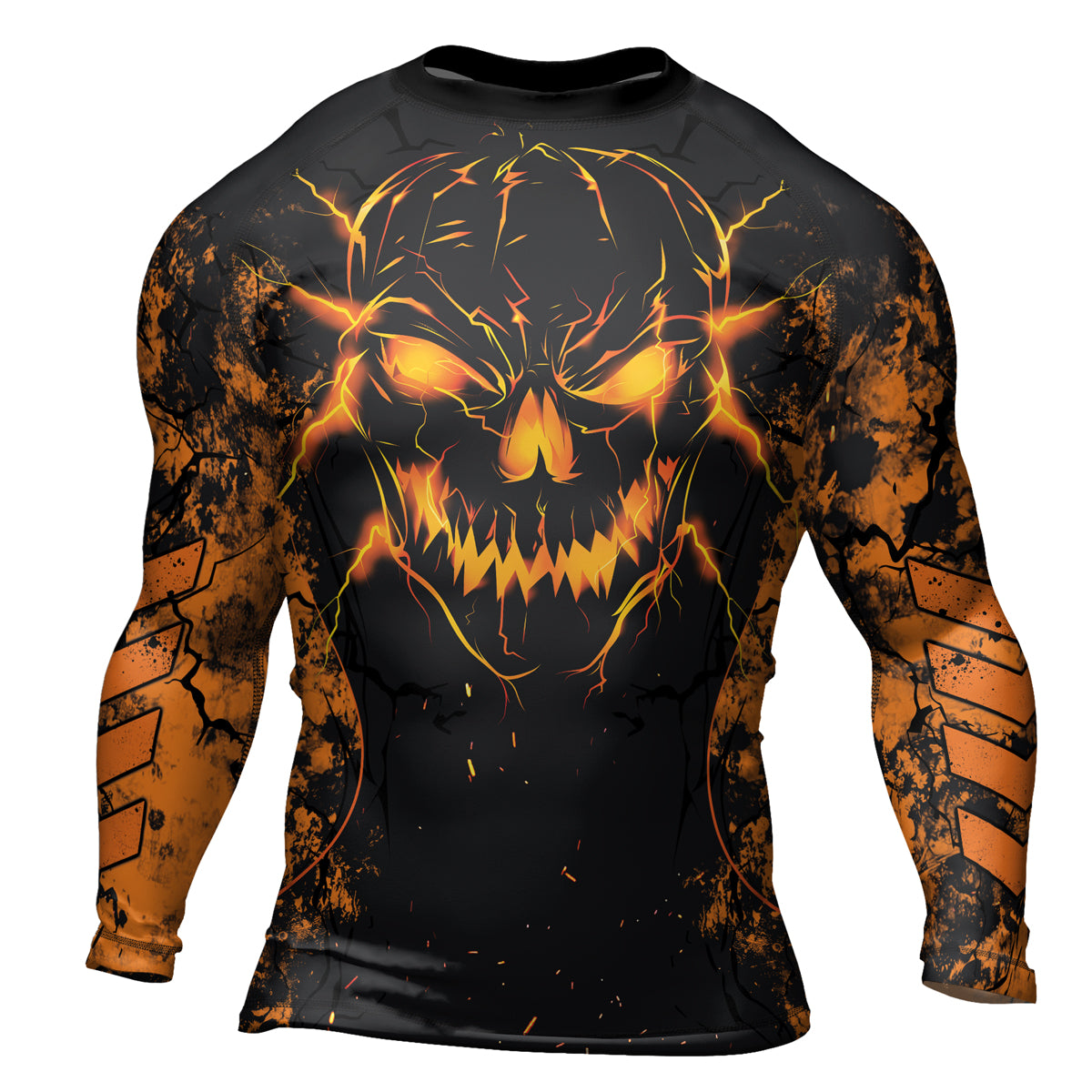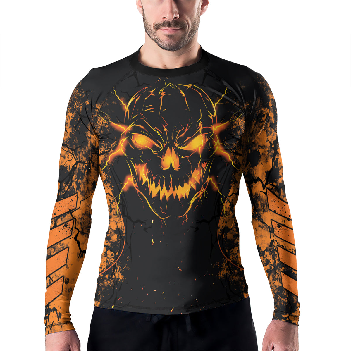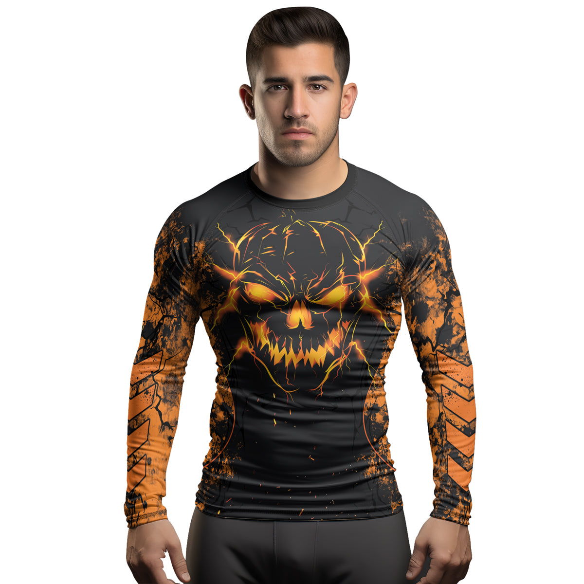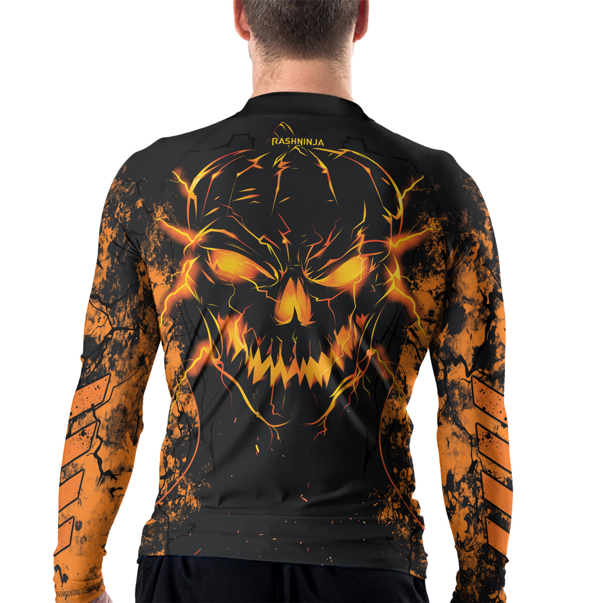 Rashninja Halloween Pumpkin Skull Men's Long Sleeve Rash Guard