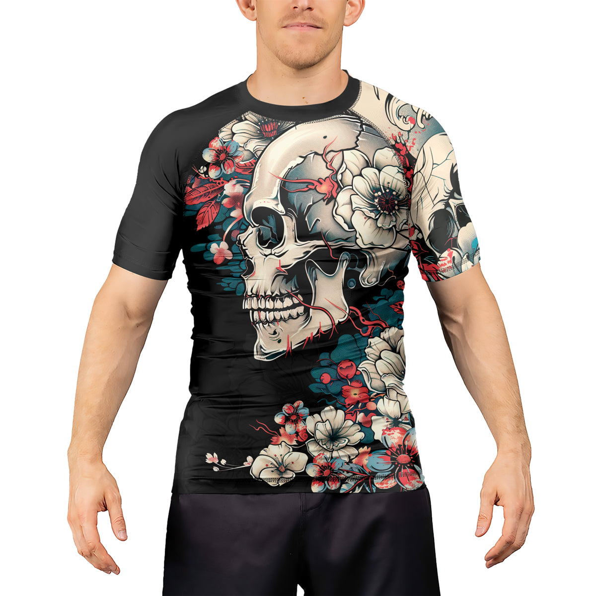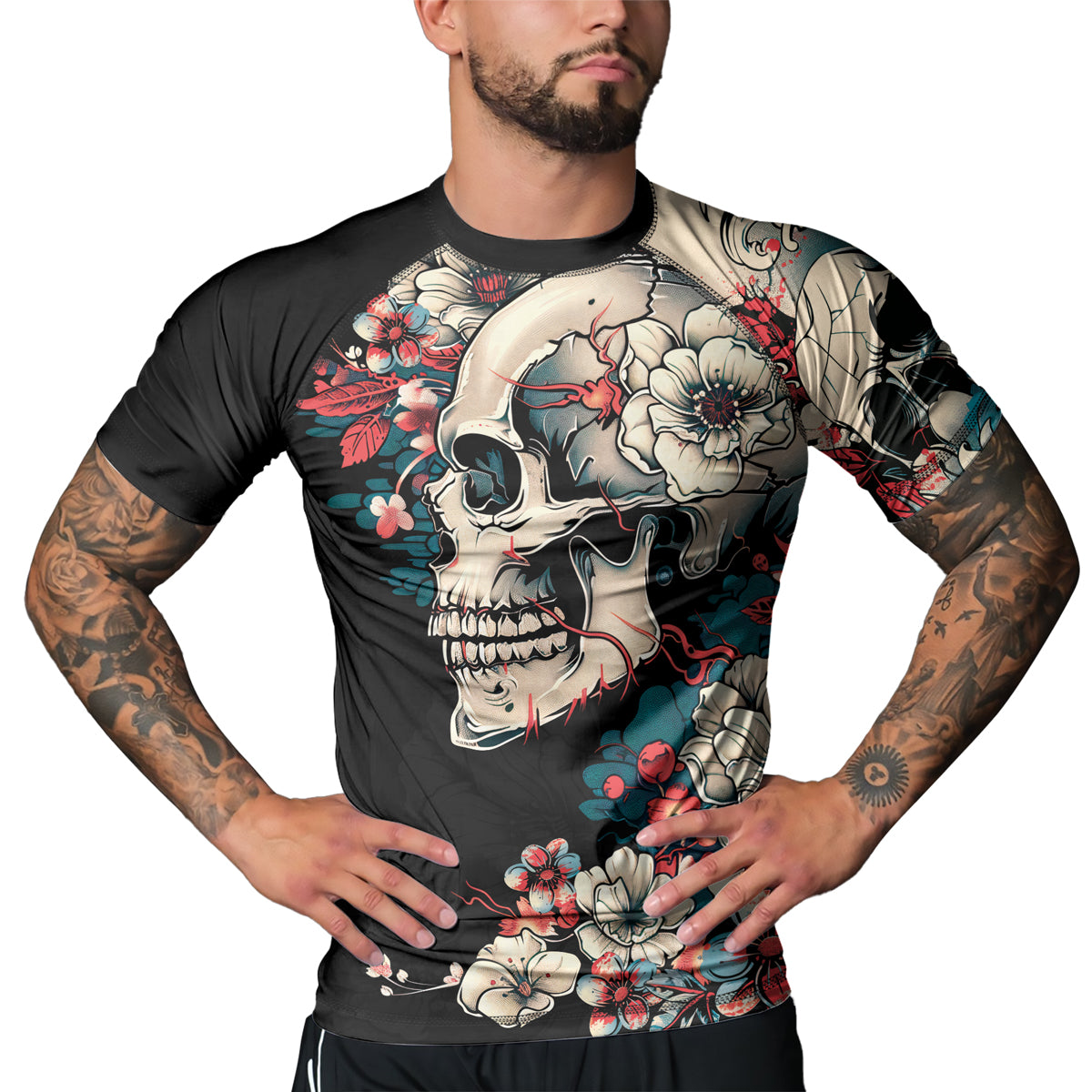 Rashninja Halloween Skull Blossom Men's Short Sleeve Rash Guard