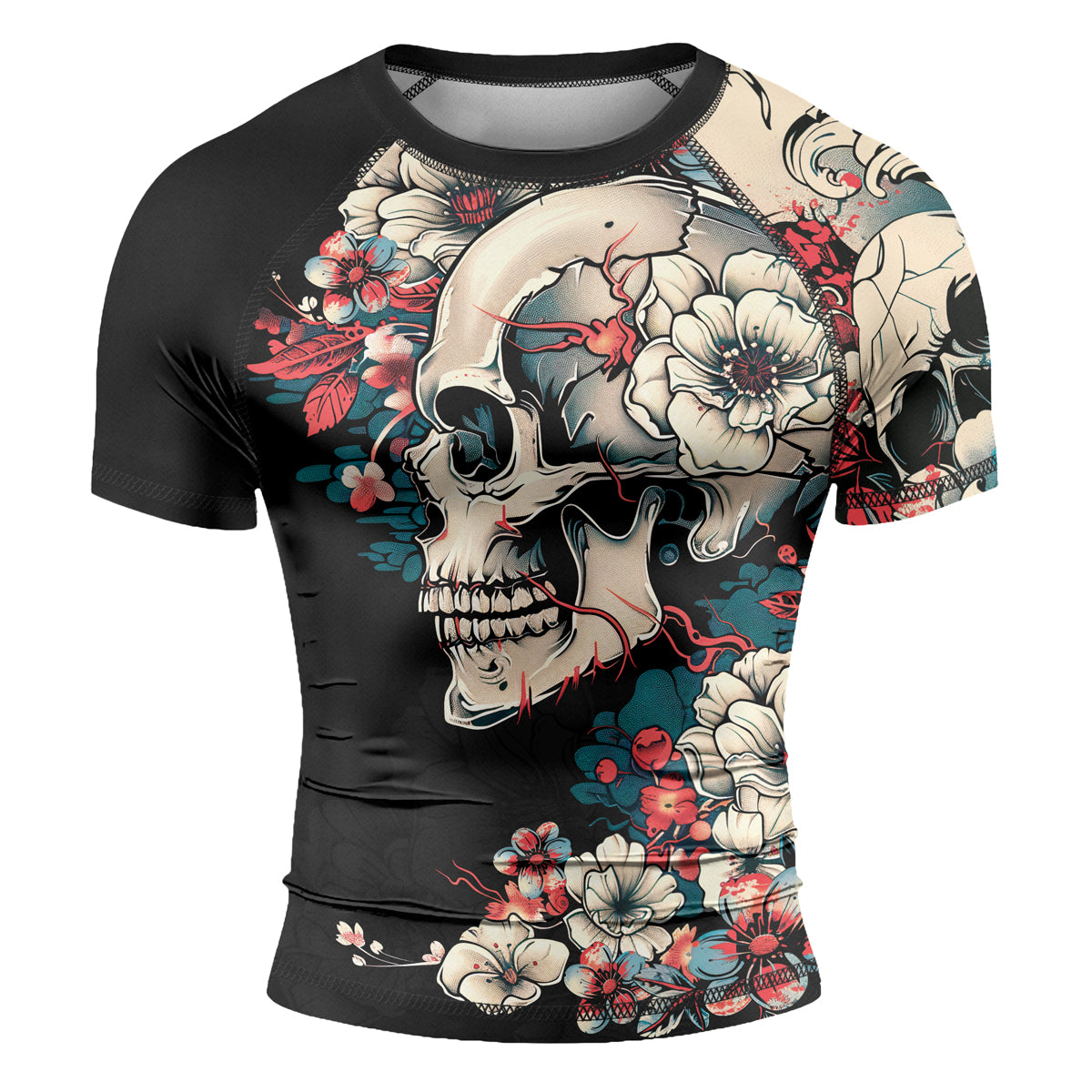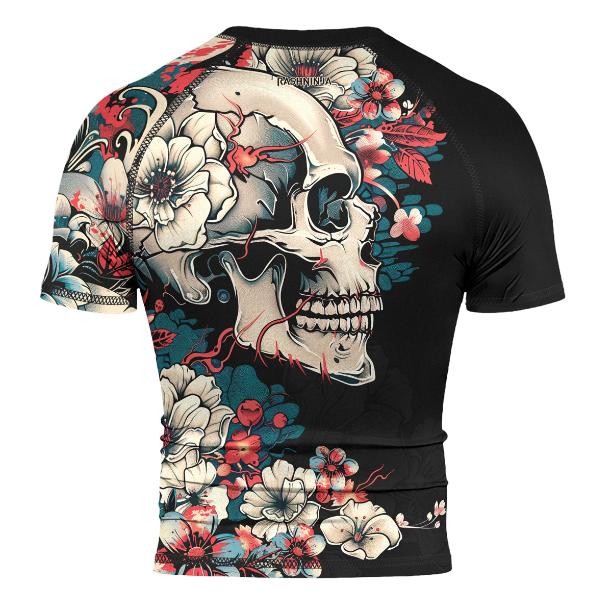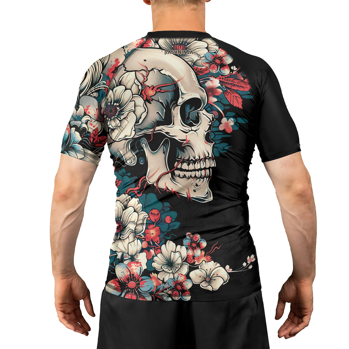 Rashninja Halloween Skull Blossom Men's Short Sleeve Rash Guard