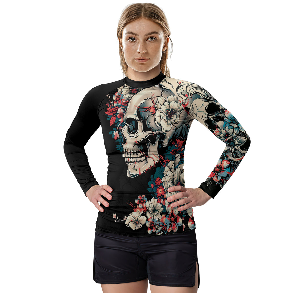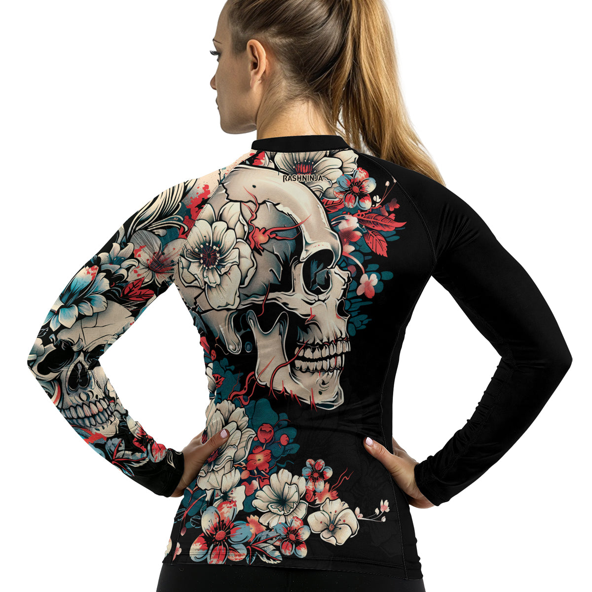 Rashninja Halloween Skull Blossom Women's Long Sleeve Rash Guard