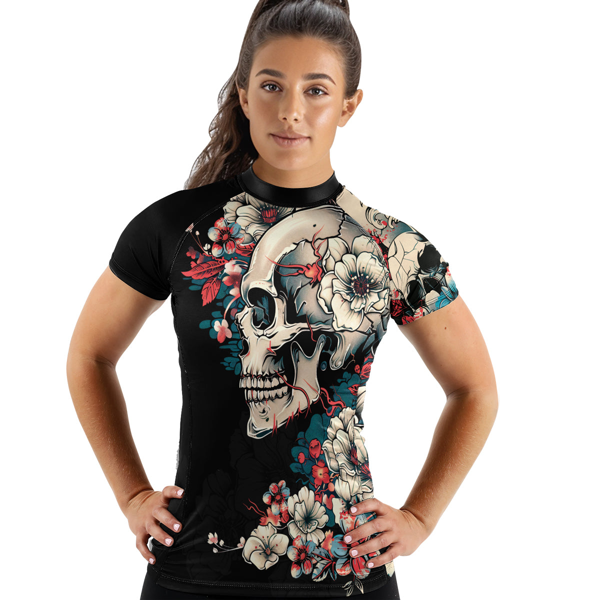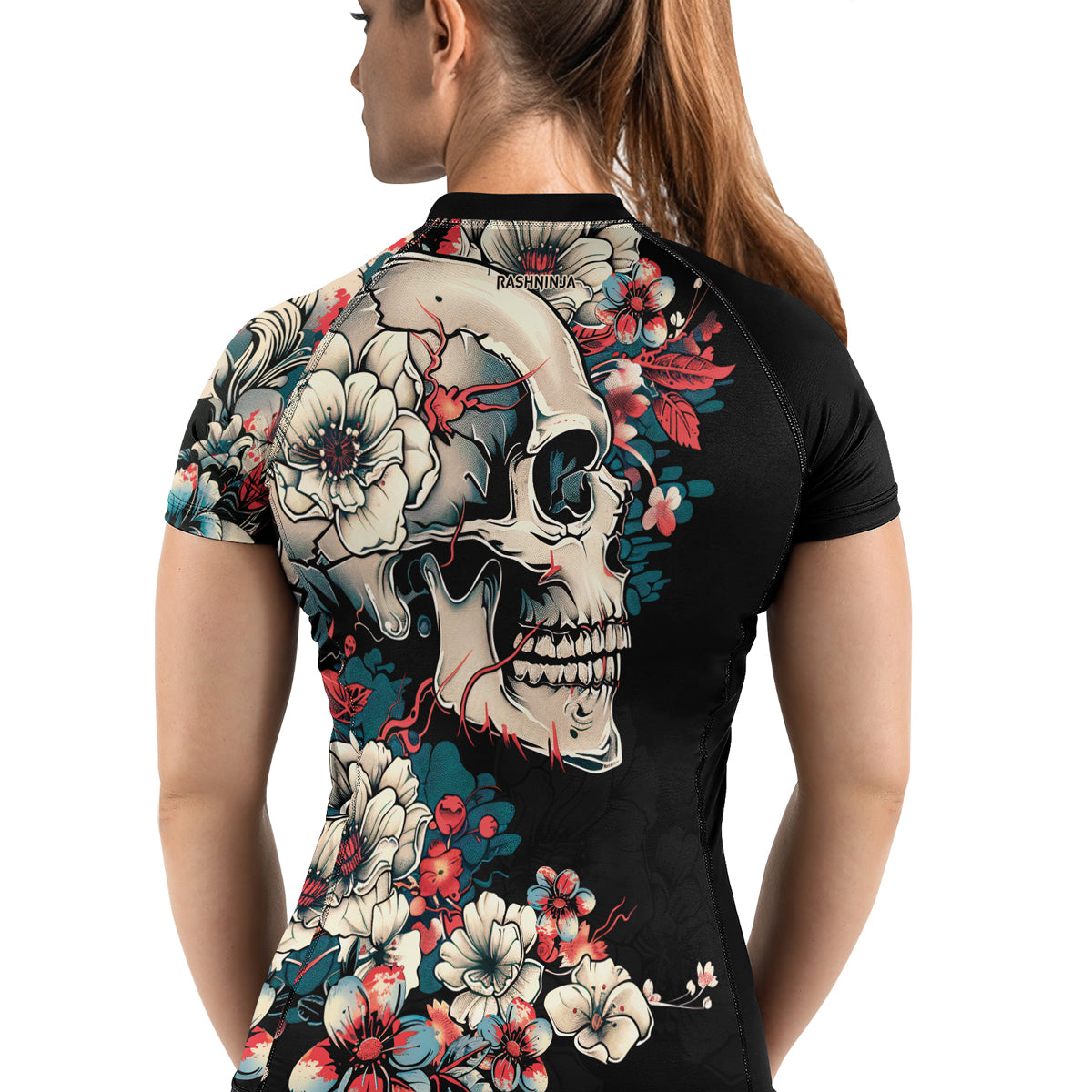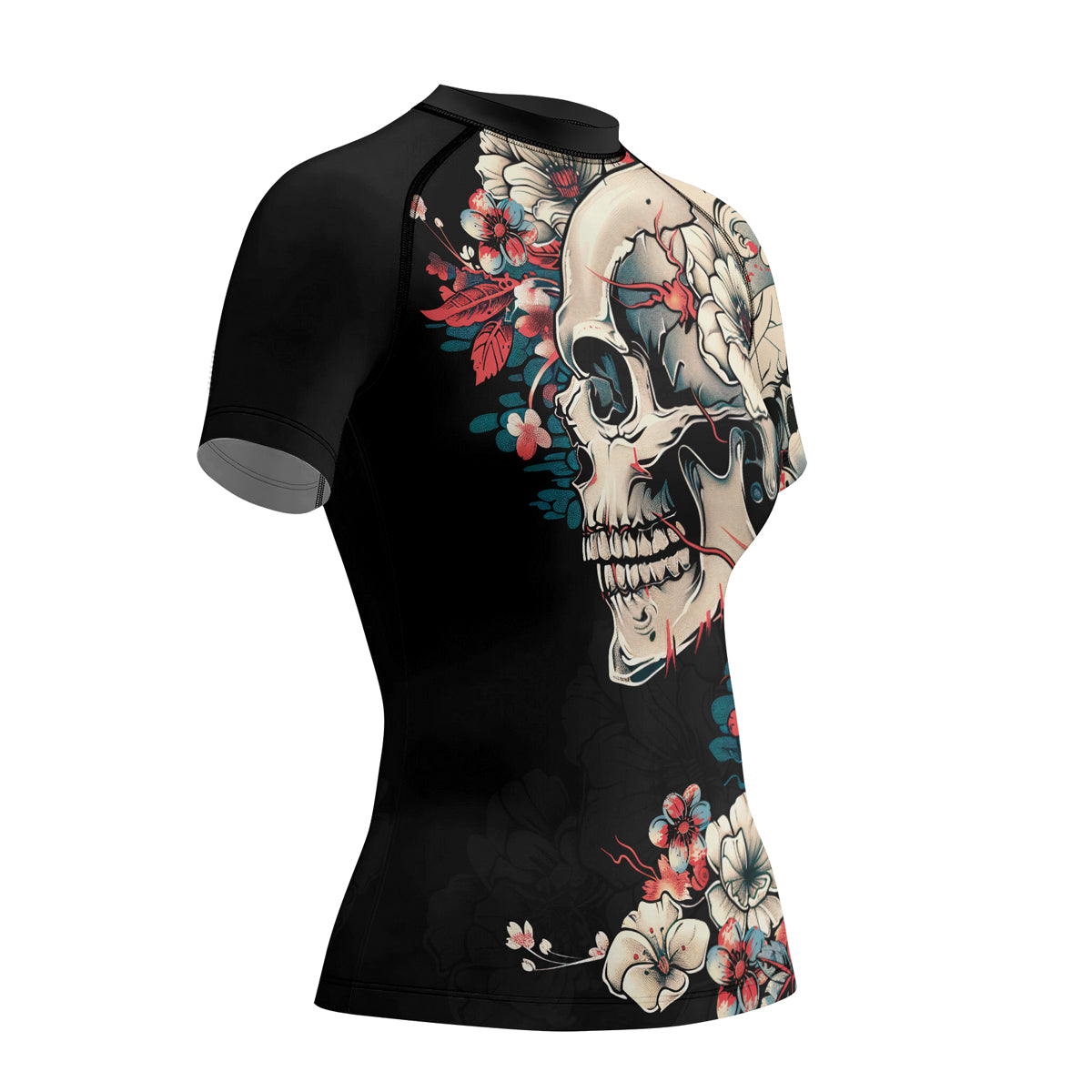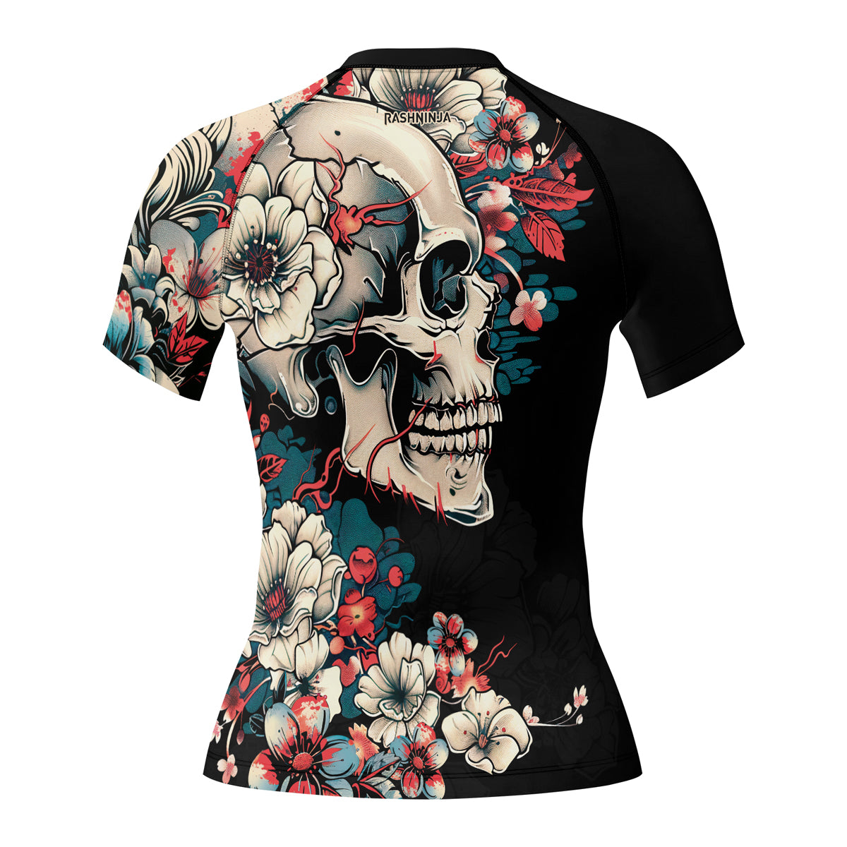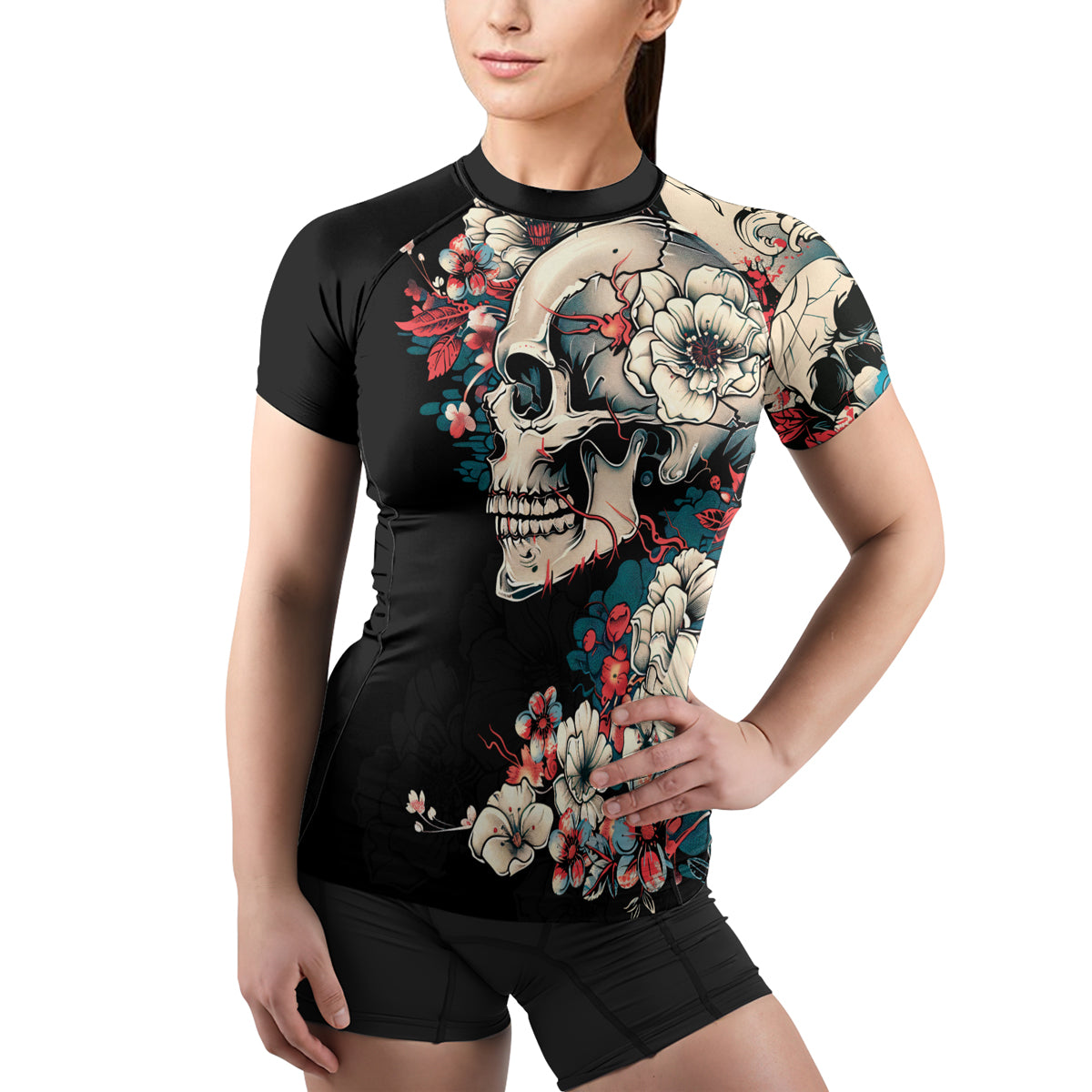 Rashninja Halloween Skull Blossom Women's Short Sleeve Rash Guard