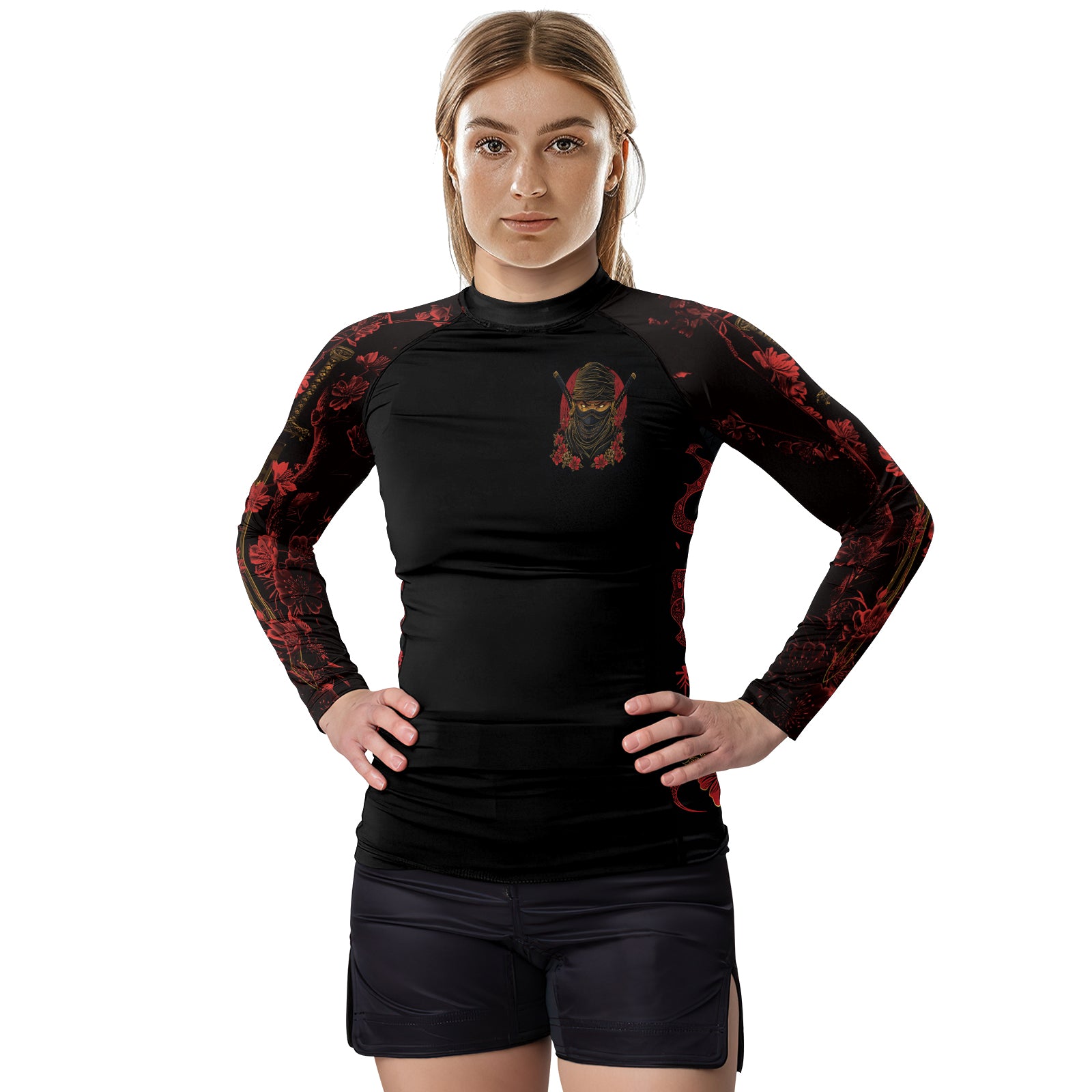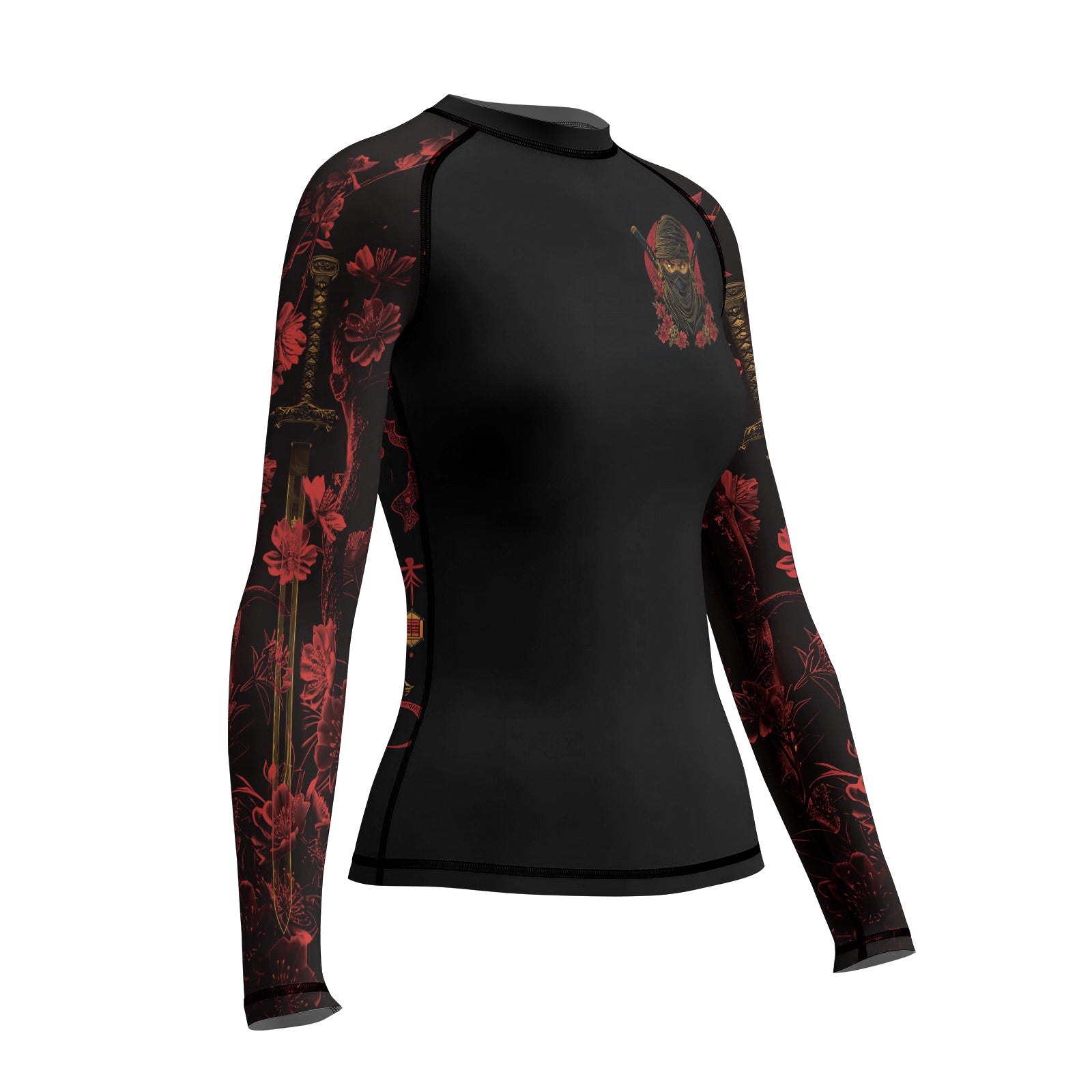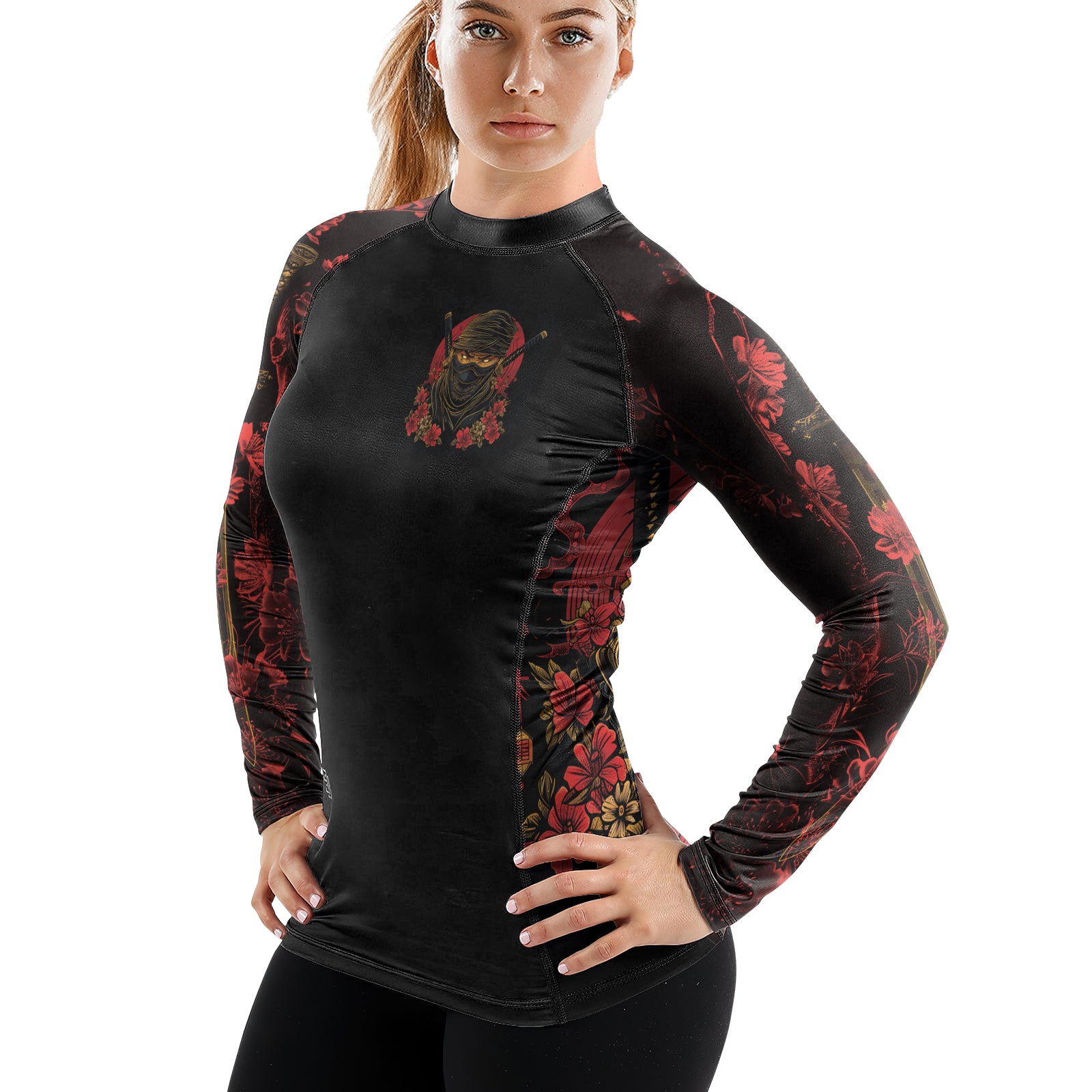 Rashninja Ninja Crimson Blossom Women's Long Sleeve Rash Guard