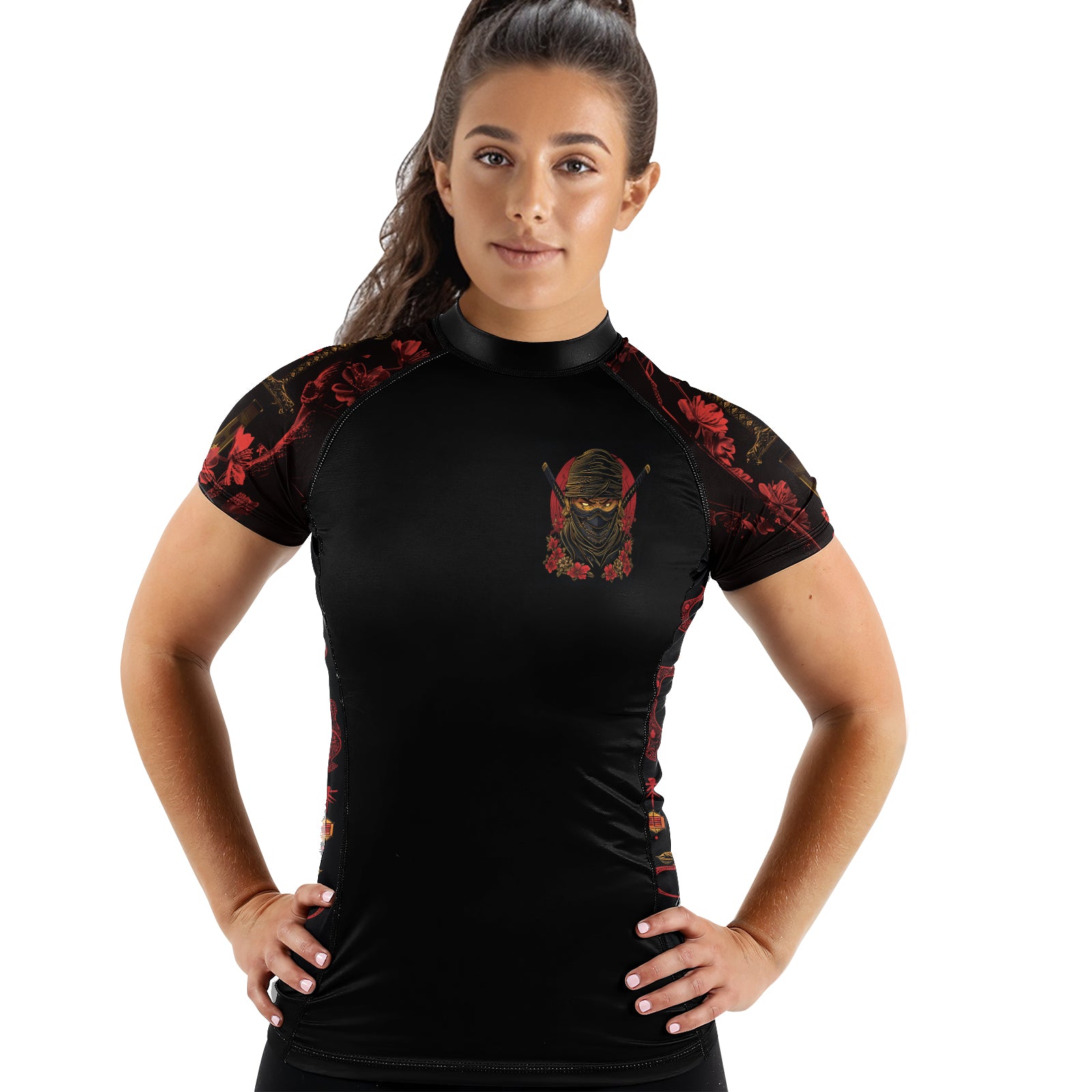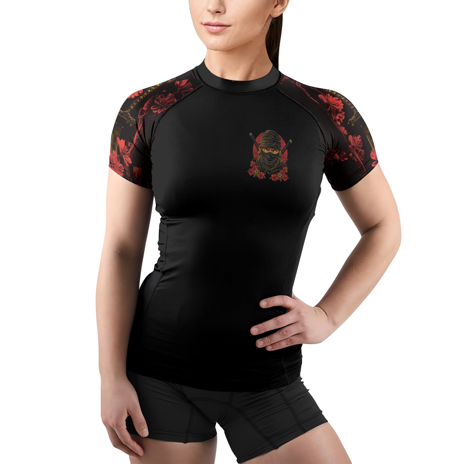 Rashninja Ninja Crimson Blossom Women's Short Sleeve Rash Guard
